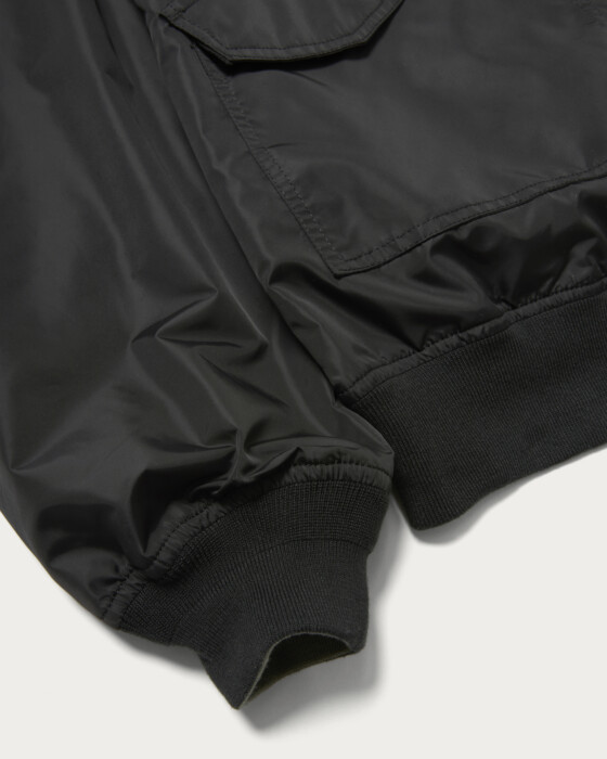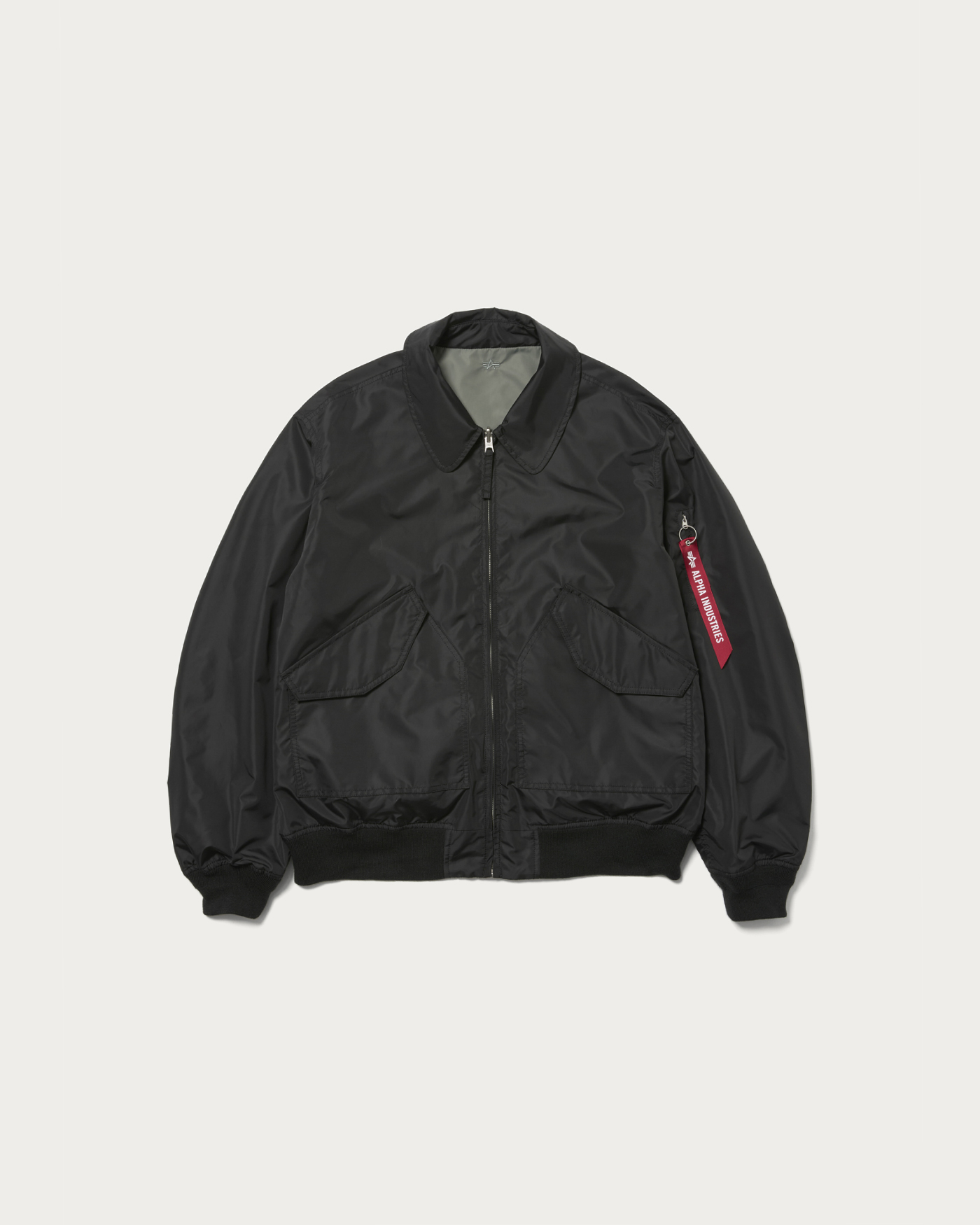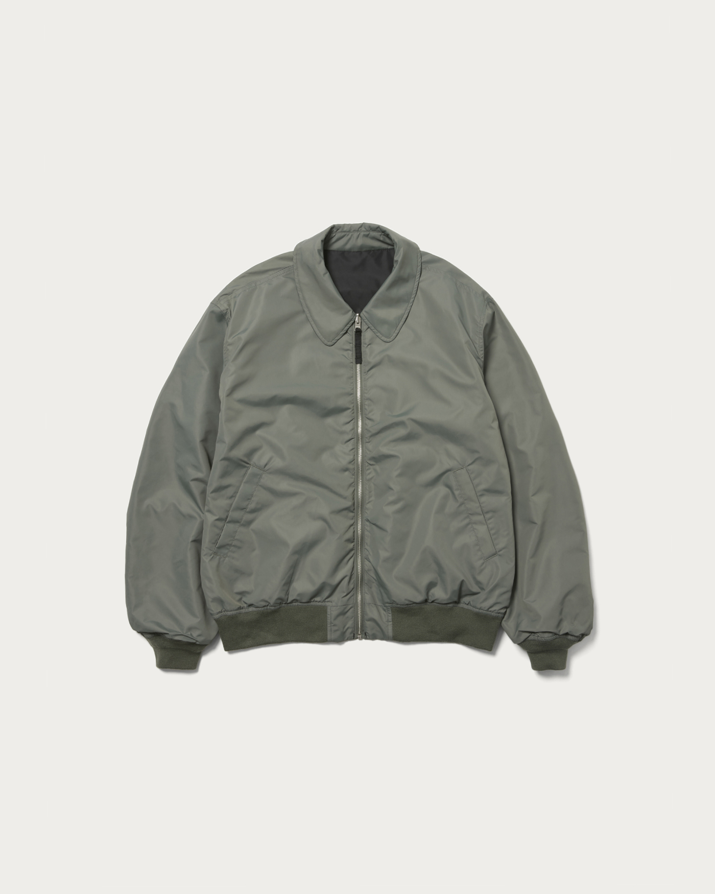 ミリタリー由来のフライトジャケットをベースに、リバーシブル仕様で別注しました。シガレットポケットやファスナーサイズ、裾・袖リブの仕様を見直し、武骨さをほどよく削ぎ落とすことで、都会的でクリーンな表情へとアップデートした一着。