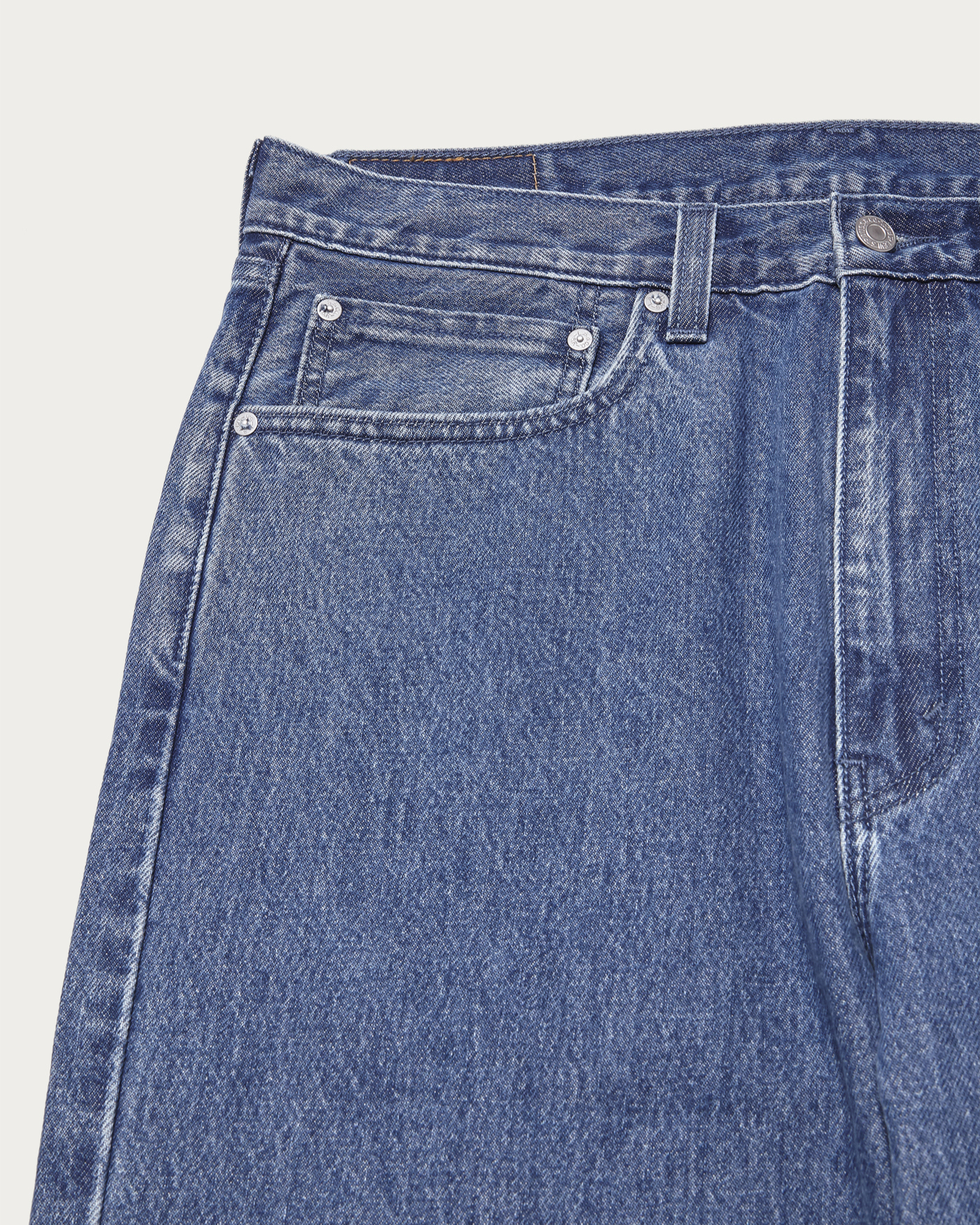 加工感とディテールを別注した、〈Levi's®(リーバイス)〉 565 LOOSE STRAIGHTモデル。カジュアルなジーンズを、クリーンに穿きこなせる一着です。穿きやすいミディアムブルーに、ゆとりのあるストレートシルエットが大人の余裕を演出します。春夏に使いやすいミディアムブルーをベースに、ステッチはブルーで主張を抑え、金具はシルバーで軽やかに仕上げました。