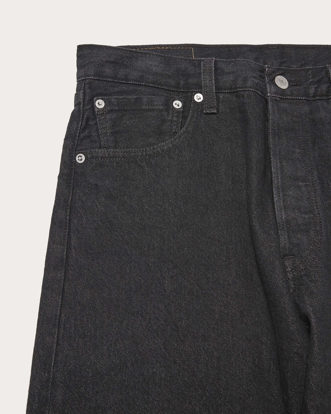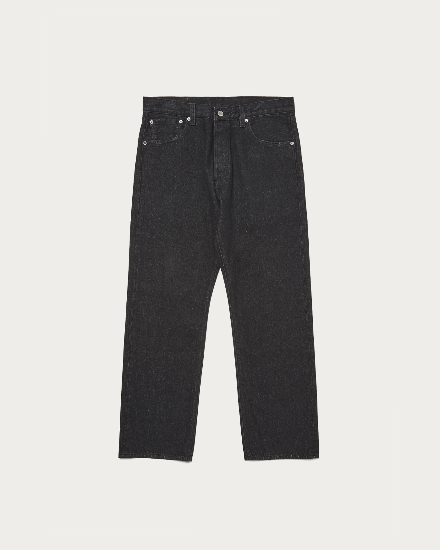 素材・色・加工感・ディテールを別注した、〈Levi's®(リーバイス)〉501 Relaxedモデル。カジュアルなジーンズを、程よくクリーンに穿きこなせる一着です。インラインには取り扱いのなかったブラックのワンウォッシュを採用し、クールで洗練された表情に仕上げています。ステッチもブラックで主張を抑え、金具はシルバーとすることで全体をクリーンにまとめました。