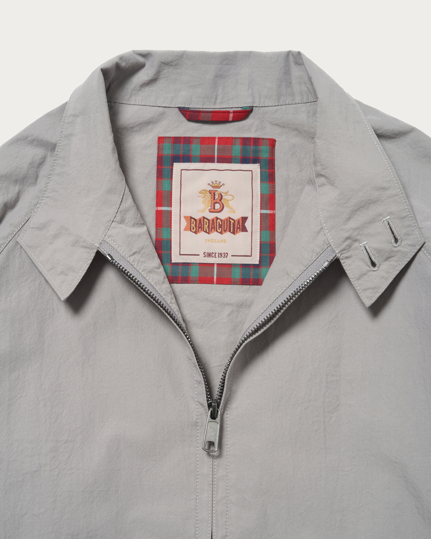 〈BARACUTA(バラクータ)〉の定番「G9(スウィングトップ)」に次ぐ人気モデル、「G4(ドライビングジャケット)」をベースに別注。ソリッドな表情の中に程よい風合いを感じさせる、ナイロンとコットンの混紡素材を採用し、クリーンで都会的な印象に仕上げています。袖のロゴ刺繍や、ブランドロゴの台座部分にブランドを象徴するフレイザータータンを配すなど、随所にスペシャルなカスタムを施した一着です。