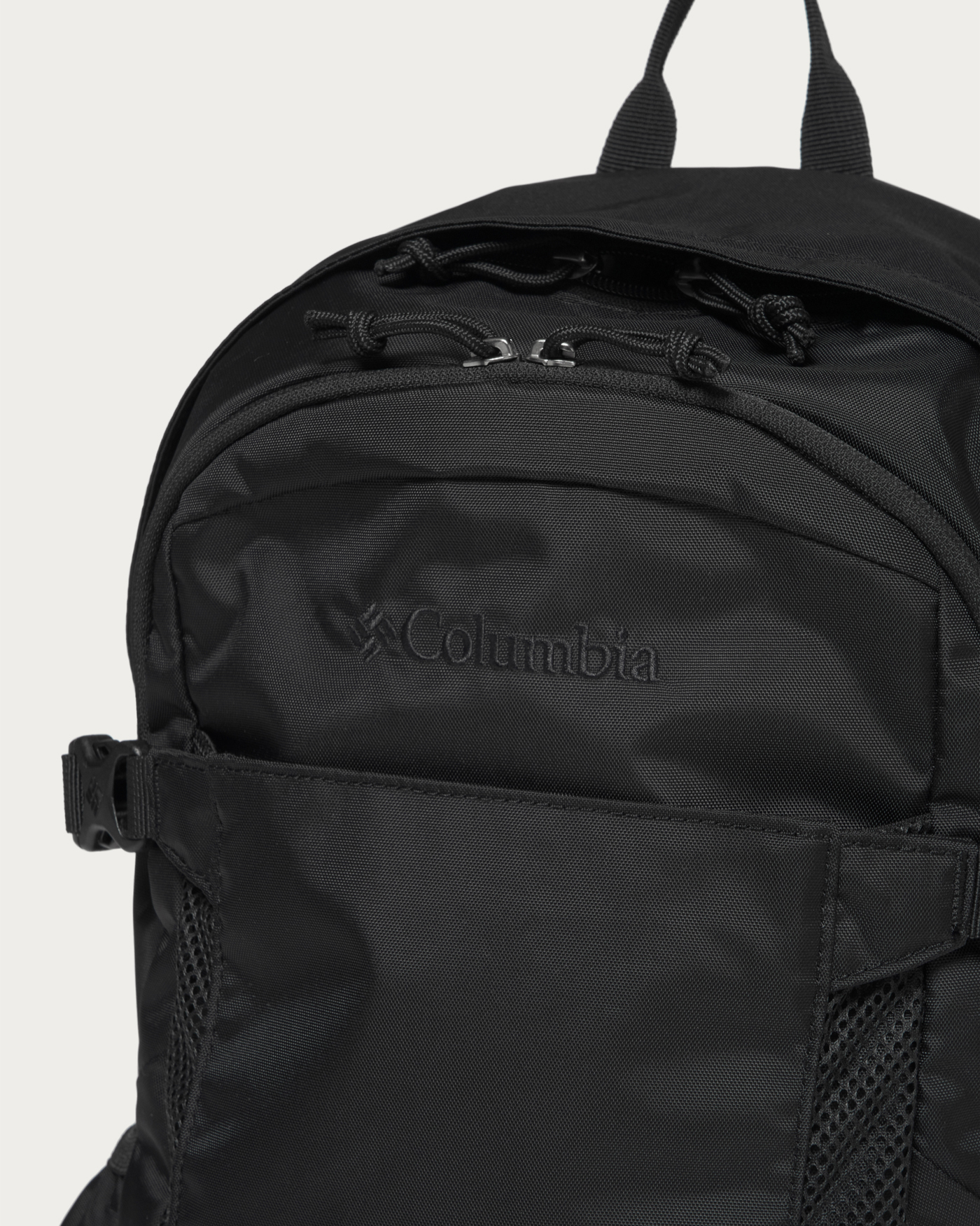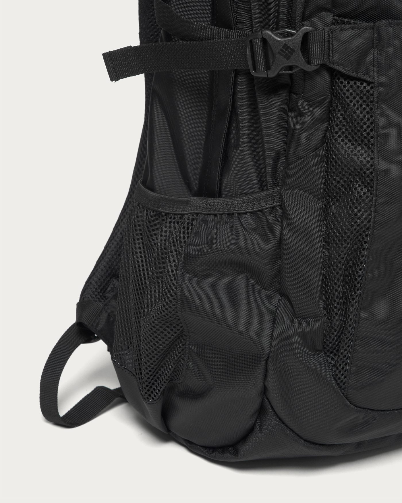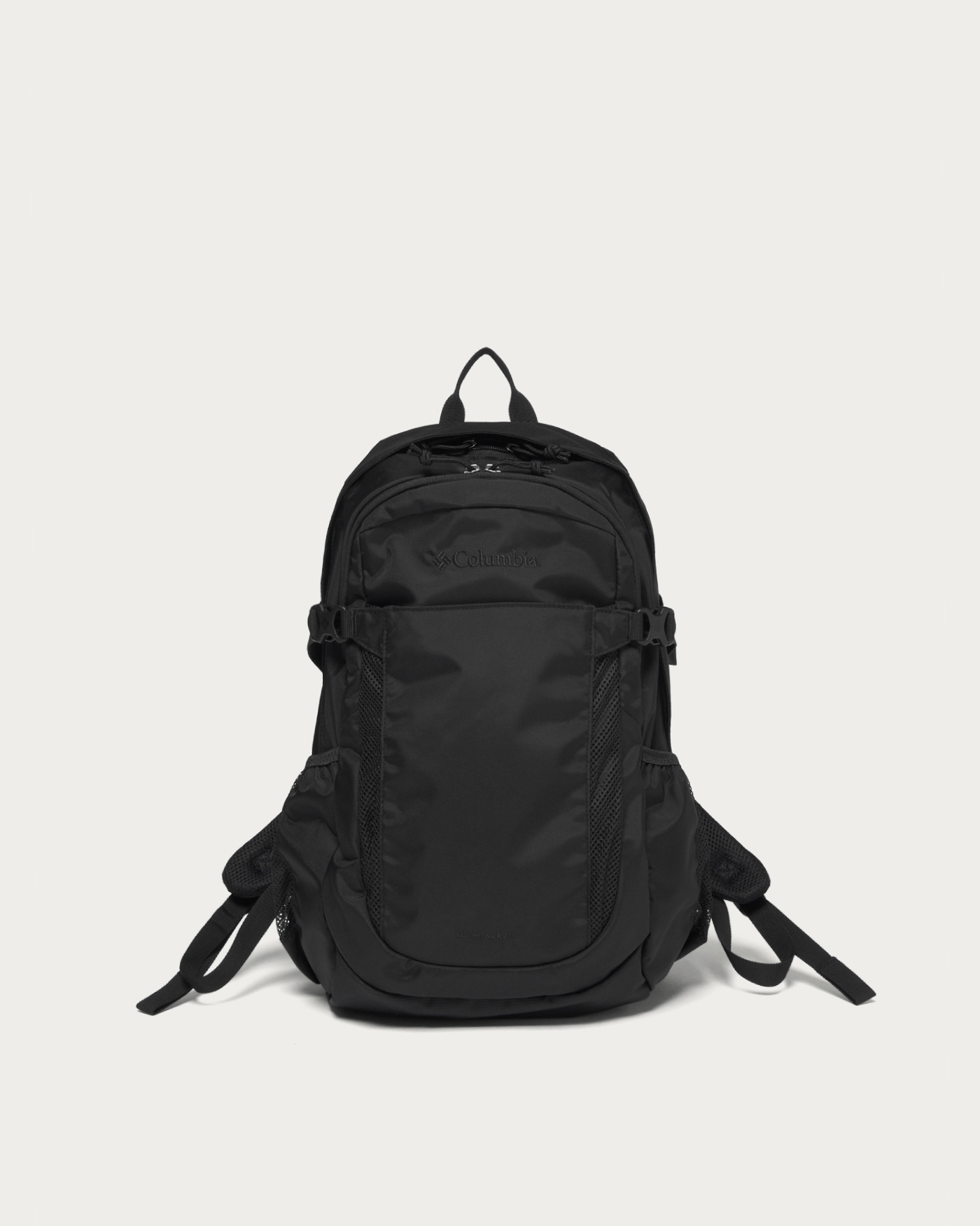 〈Columbia(コロンビア)〉の名作CASTLE ROCK(キャッスルロック)シリーズをベースに、アウトドアブランドらしい機能性(収納力・背負い心地)と手頃な価格はそのままに、街使いに使いやすいオールブラックへ別注しました。表側はロゴや引手まで含めてオールブラックに統一し、内蔵のレインカバーはブルーからグレーへ変更。ありそうでなかった、もう少しこうだったらいい”を徹底追求して完成した一品です。ON/OFF問わず使える汎用性も魅力で、サイズ・デザイン違いの同シリーズで20Lと25Lの2型を展開しています。こちらは25Lの大容量タイプ。