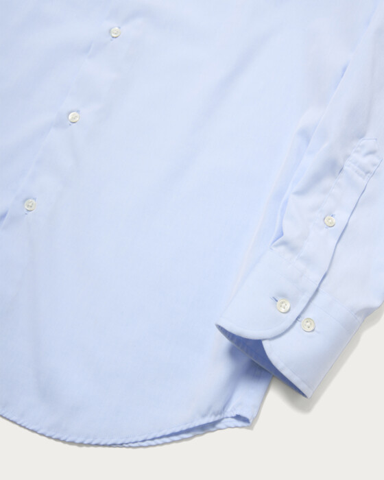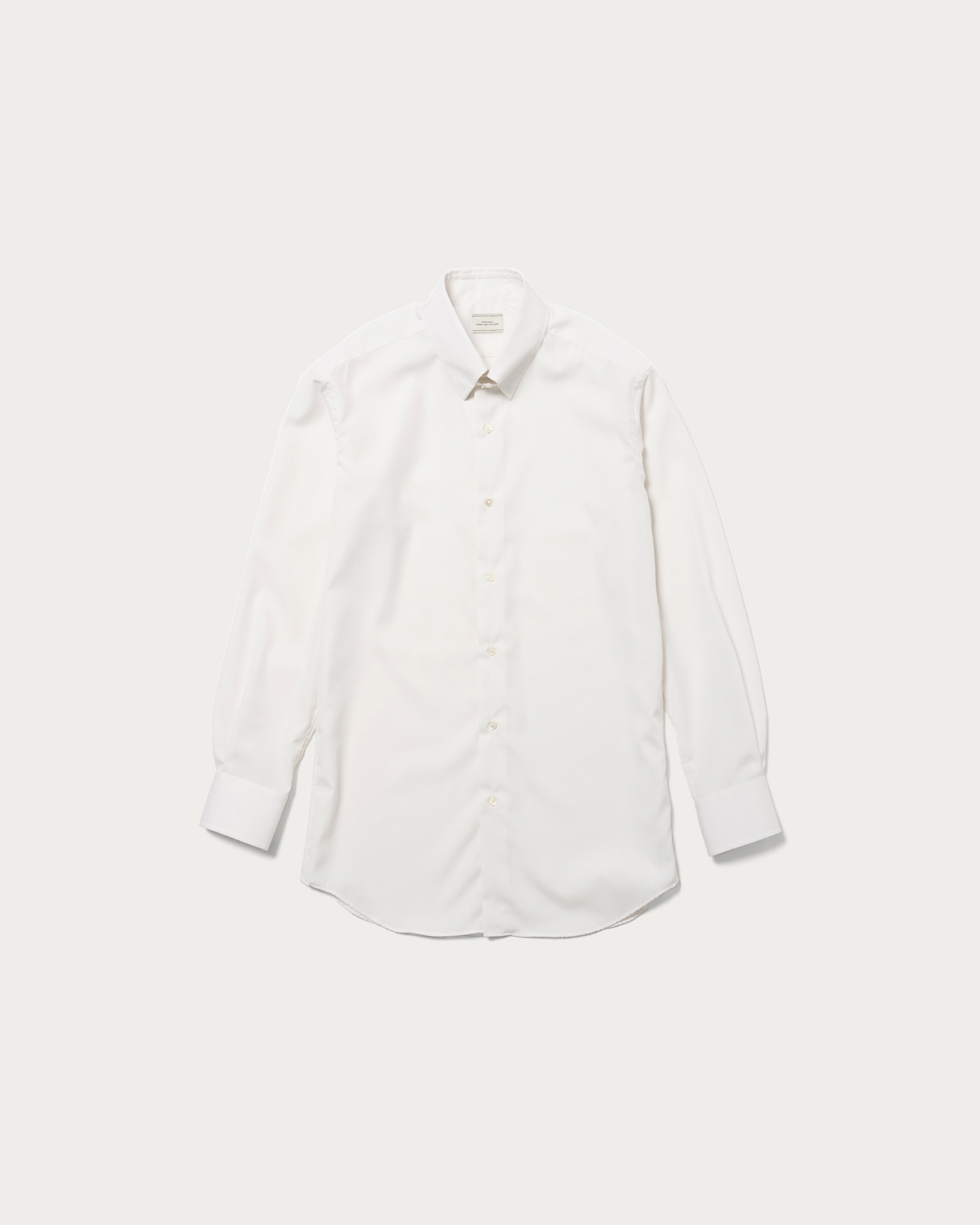 Vゾーンを立体的に演出するタブカラーが特徴の、天然素材コットン100%なドレスシャツ。お手入れしやすいイージーアイロン仕様で、着心地と扱いやすさを両立した一着です。