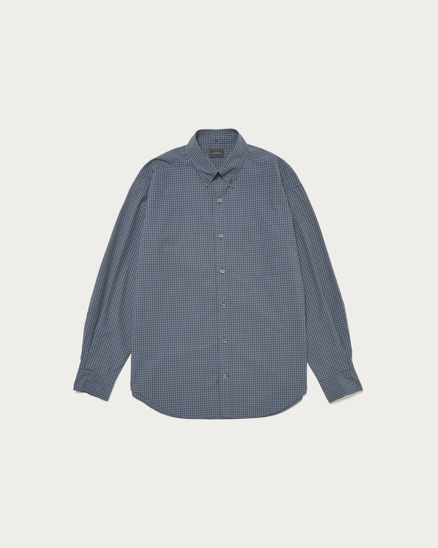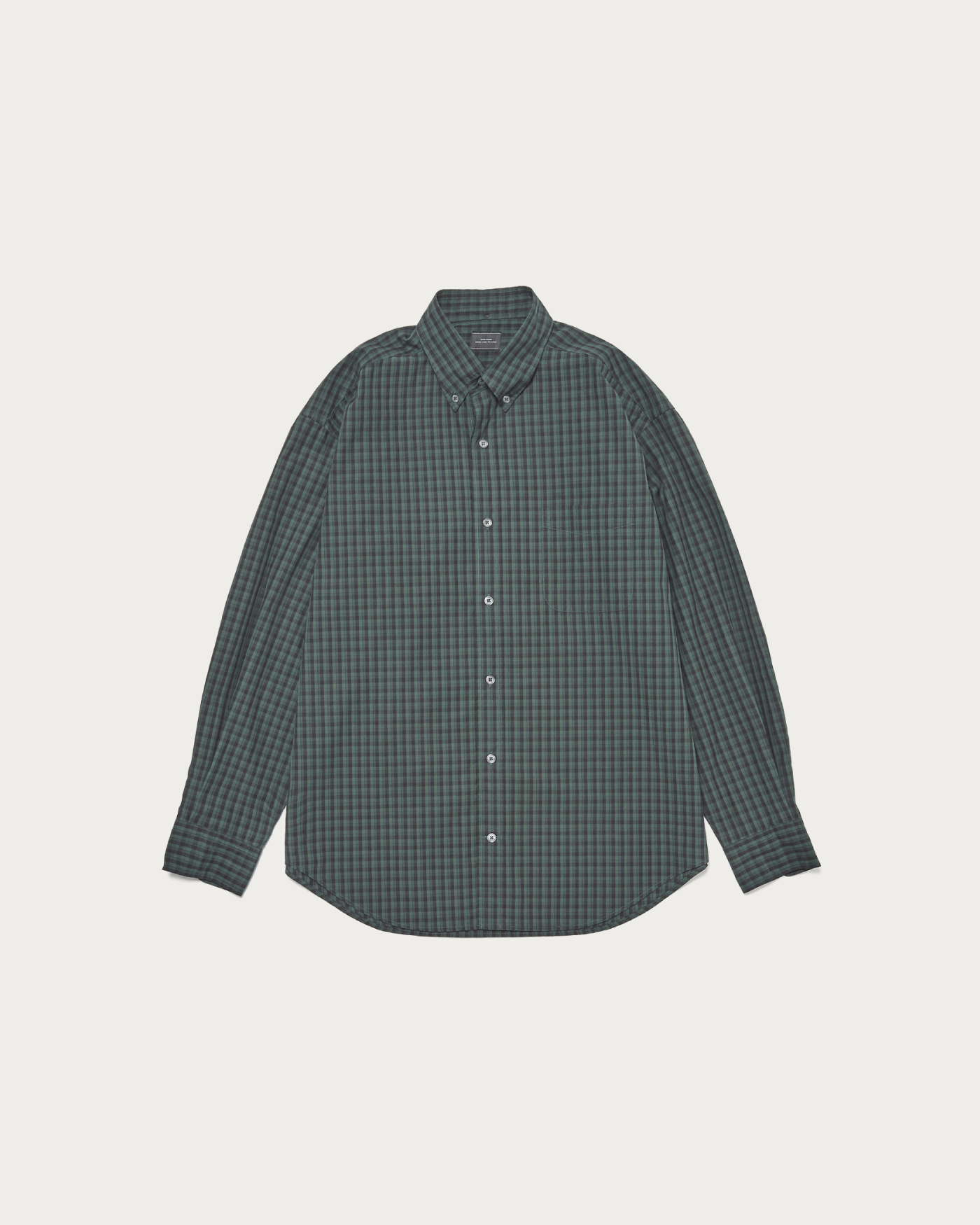 ゆったりとしたボックスシルエットが特徴の、ボタンダウンシャツ。ボディサイズに対してカマ底を浅く設定することで、袖ラインや腕の動かしやすさにこだわったパターン設計。素材は細めの糸を2本撚り合わせて織り上げ、タテヨコで色を変えることで豊かで深みのある色合いにこだわりました。さらに特殊な加工で糸に膨らみを持たせ、薄手ながらふんわりと柔らかな風合いに仕上げています。クリーンなデザインだからこそ、デニムやウォッシュ加工を施したパンツ、ブルゾンとの合わせがおすすめ。今期はブレザーのインナーに合わせて、トラッドテイストの着こなしを楽しむのもポイント。