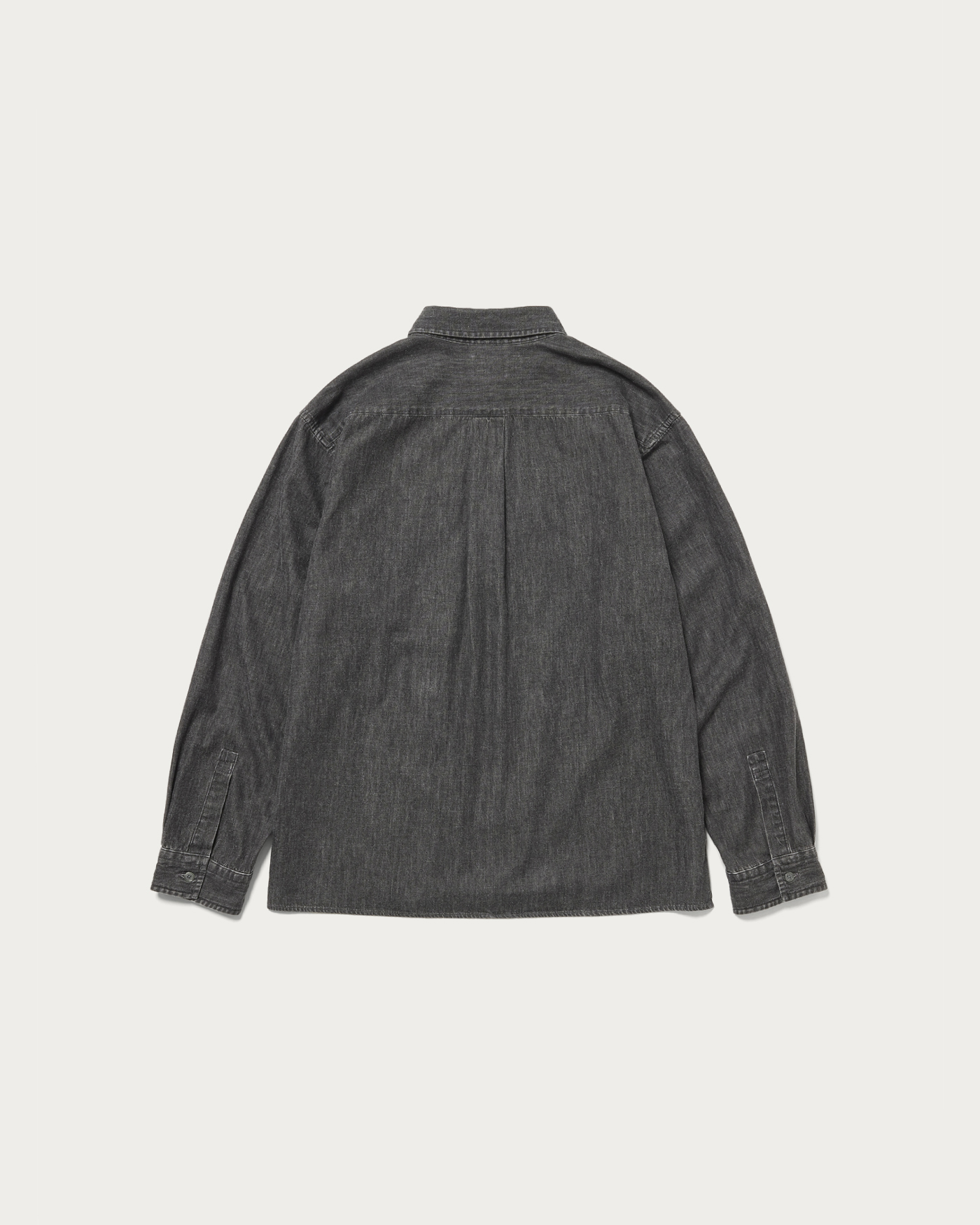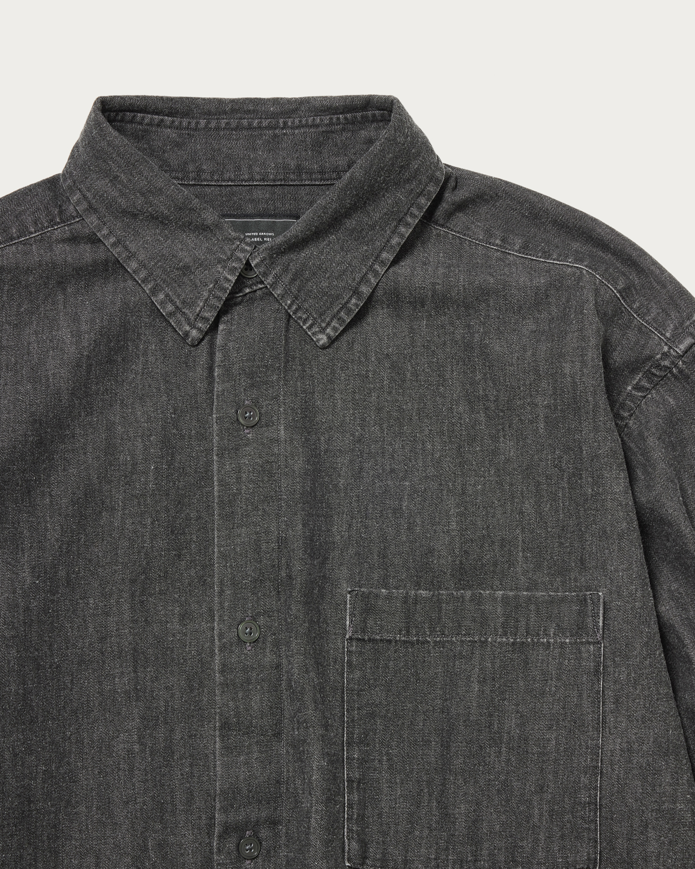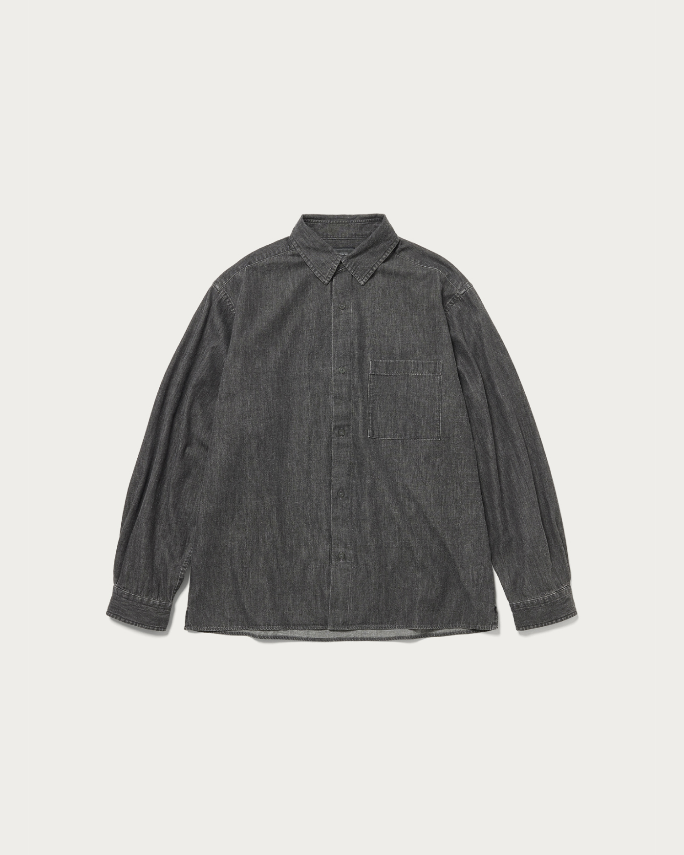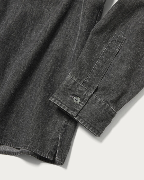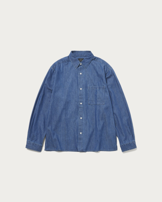 羽織アイテムとして使いやすいようにデザインされた、ゆったりとしたシルエットのデニムシャツ。裾をスクエアにしてやや短めの着丈に仕上げることで、軽いGジャン感覚で羽織れるのもポイントです。素材には、岡山県井原市で生産されたデニムを使用。細めの糸でしっかり織り上げ、厚すぎず薄すぎない軽やかな生地感で、羽織としてちょうど良い着心地なシャツに仕上げています。立ち上がりのシーズンはインナーとしてコーディネートに変化を加え、シーズンが進めば羽織として幅広く活躍するシャツです。