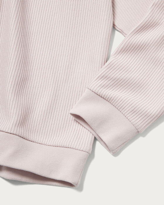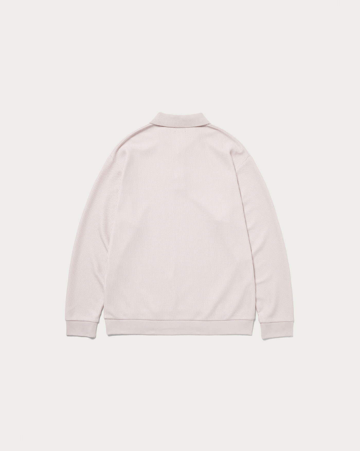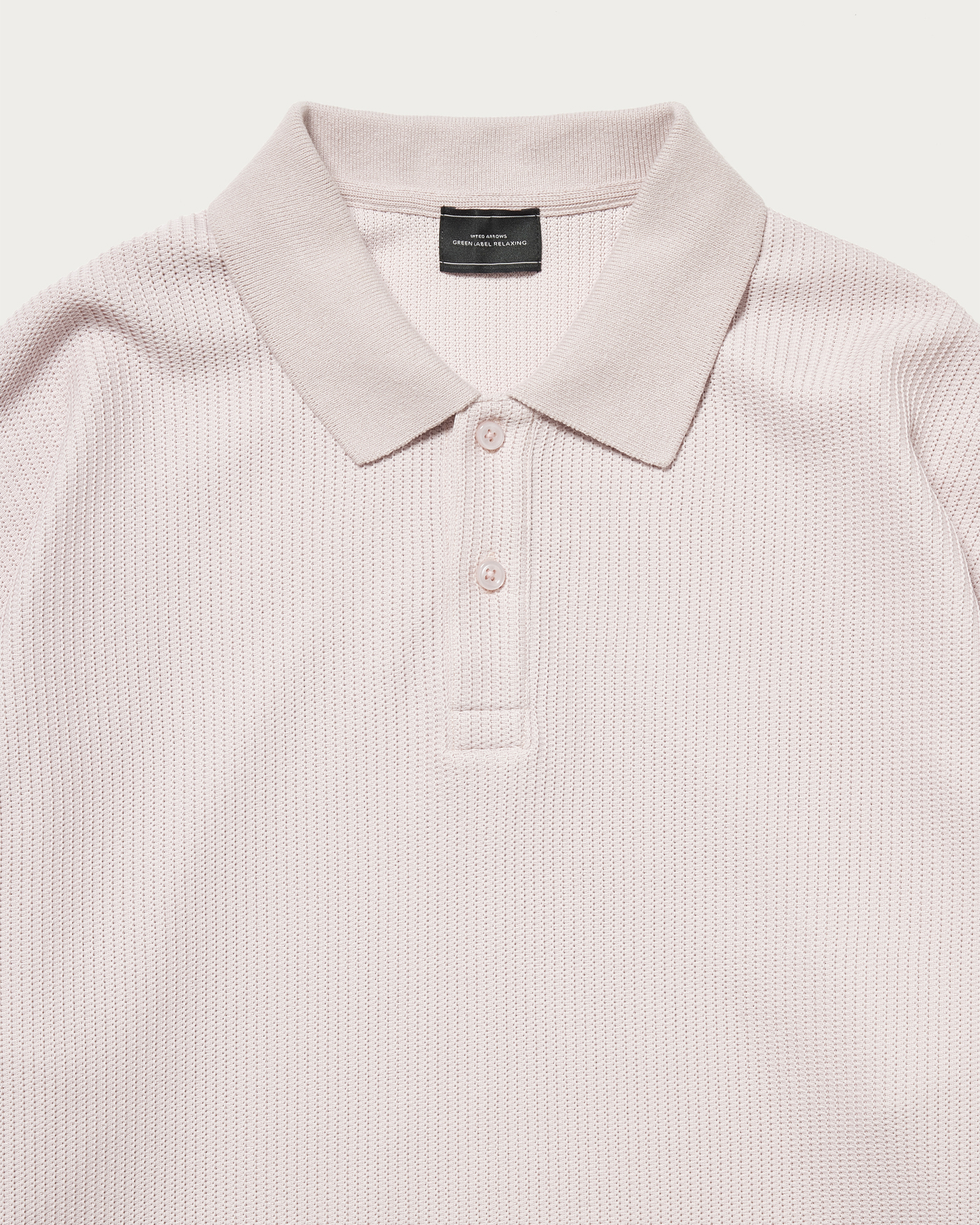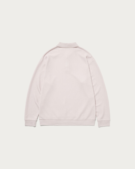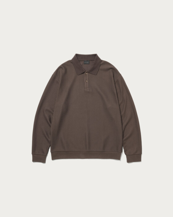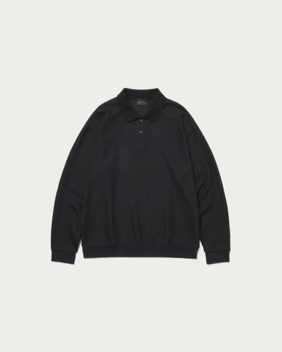 クリーンな印象のポロデザインの長袖カットソー。素材はラッセル編み機で編まれた生地を使用し、ざっくりとした編み目の凹凸感が特徴です。ハリ感のあるしっかりとした生地で、長袖カットソーながら程よい立体感と存在感を演出する一枚。