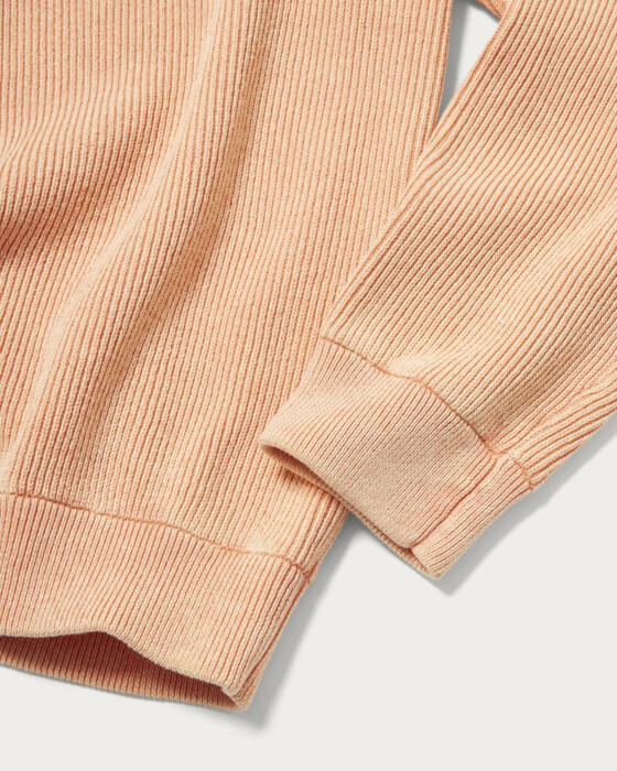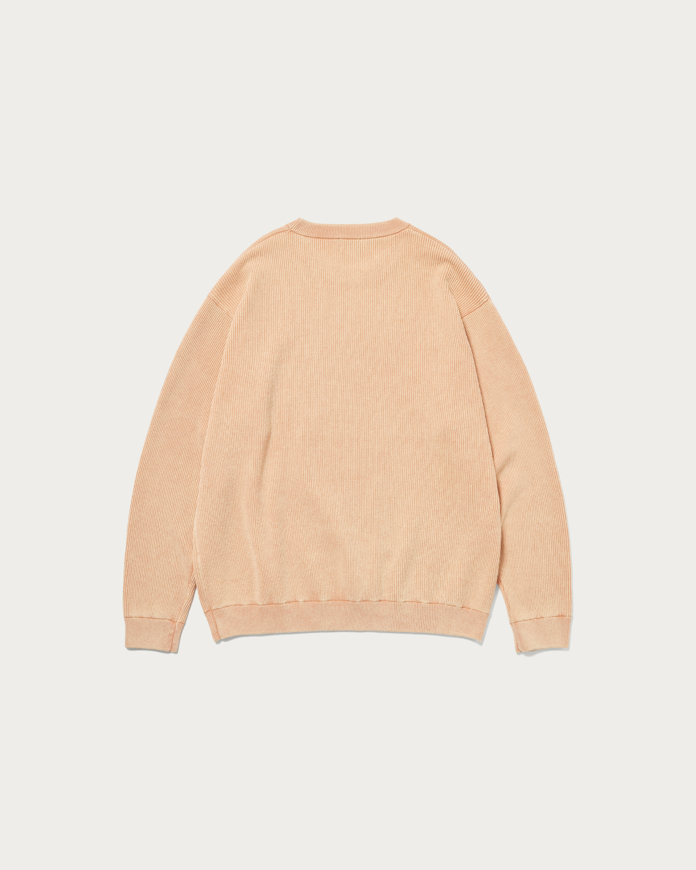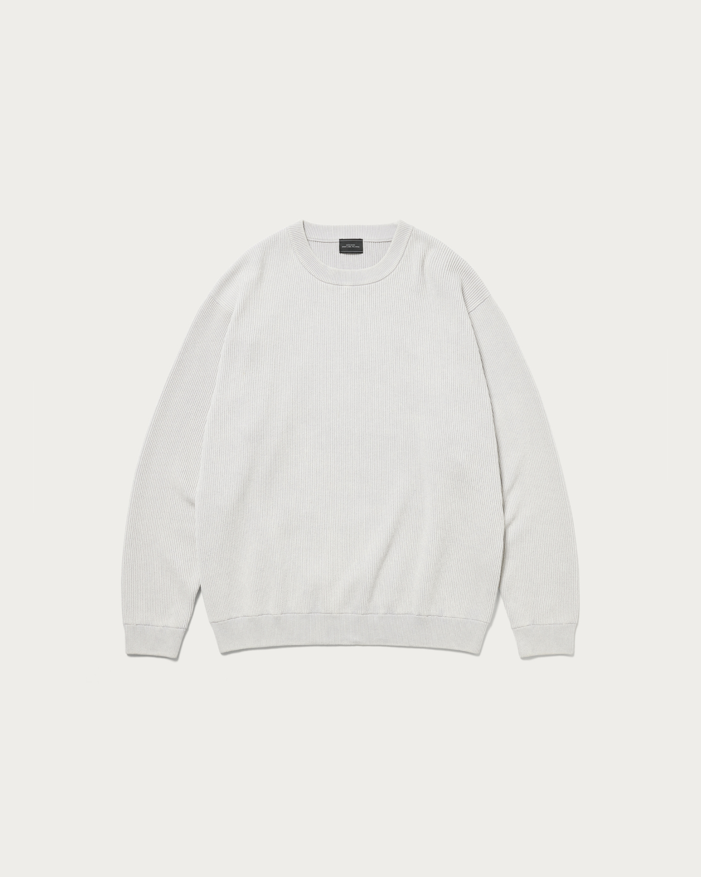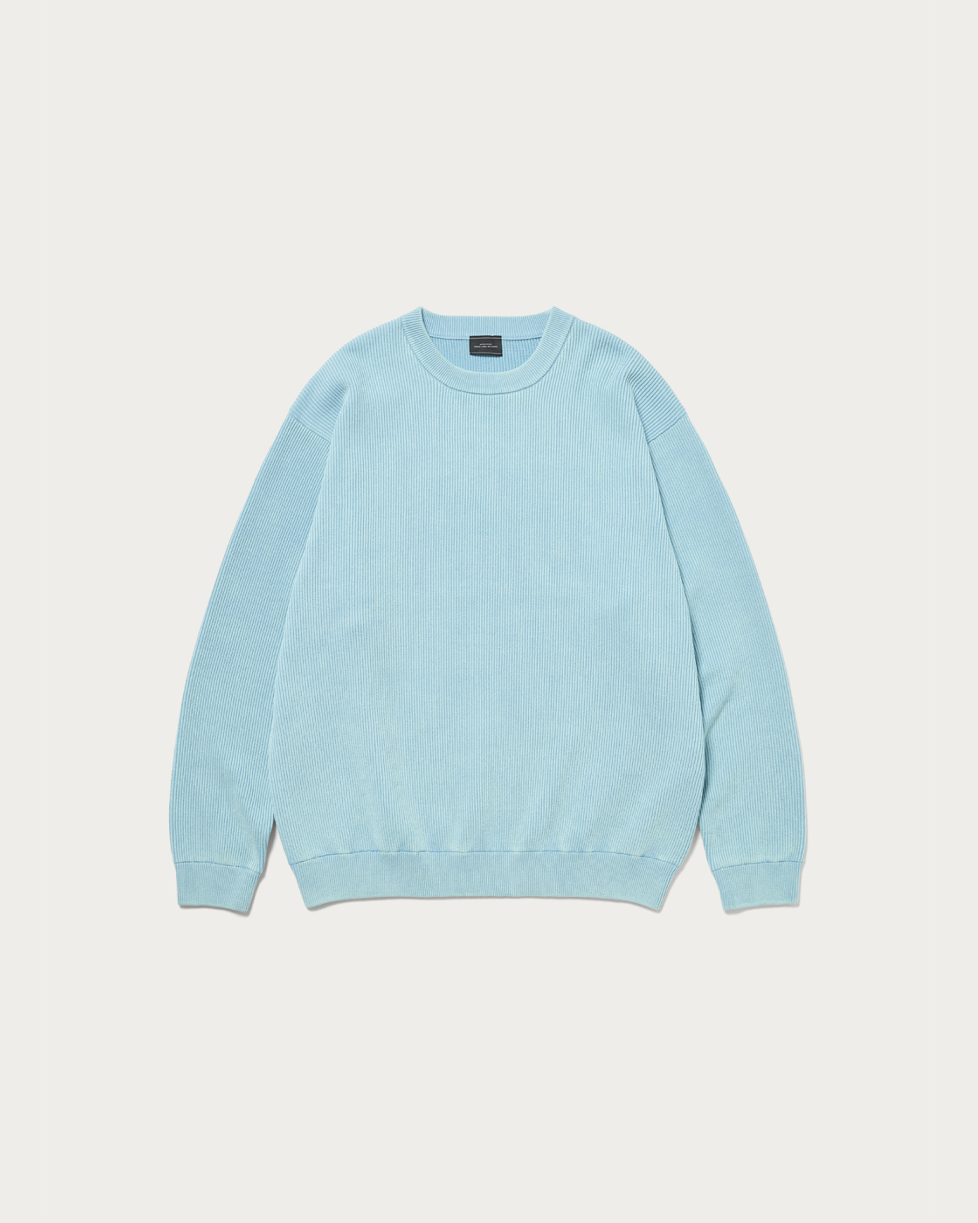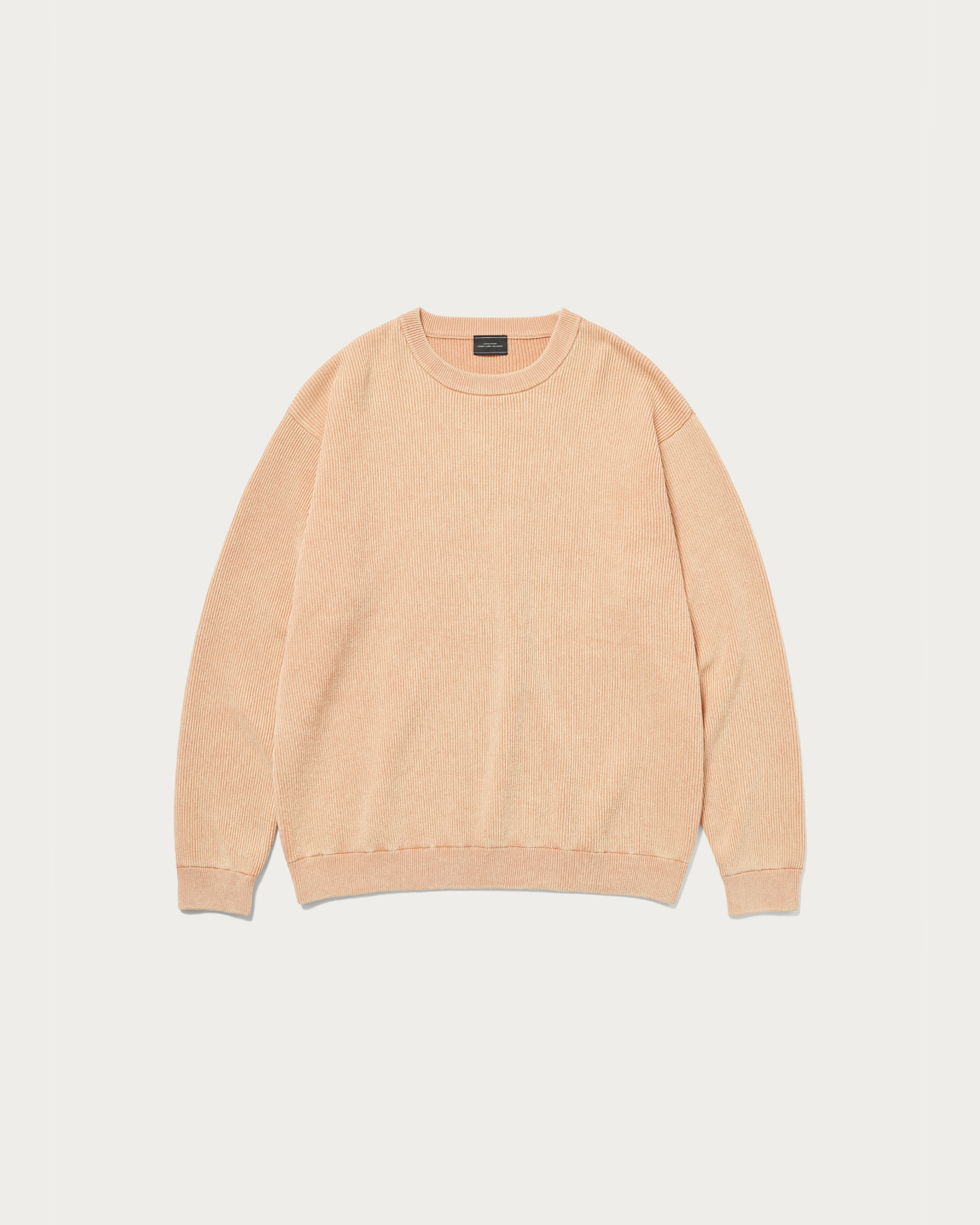 程よくリラックス感のあるシルエットが特徴の、色褪せ加工を施した長袖ニット。素材にはドライタッチのコットン糸を使用し、縦に凹凸のある畦編みで表情豊かに仕上げた一枚です。