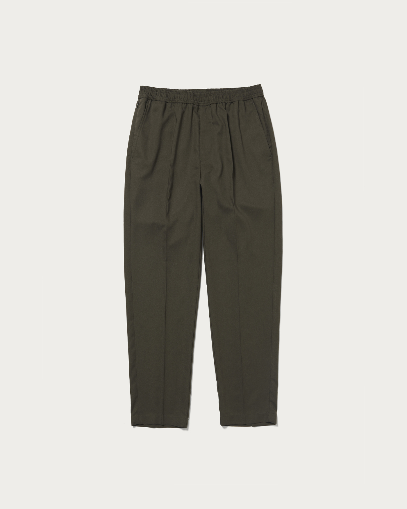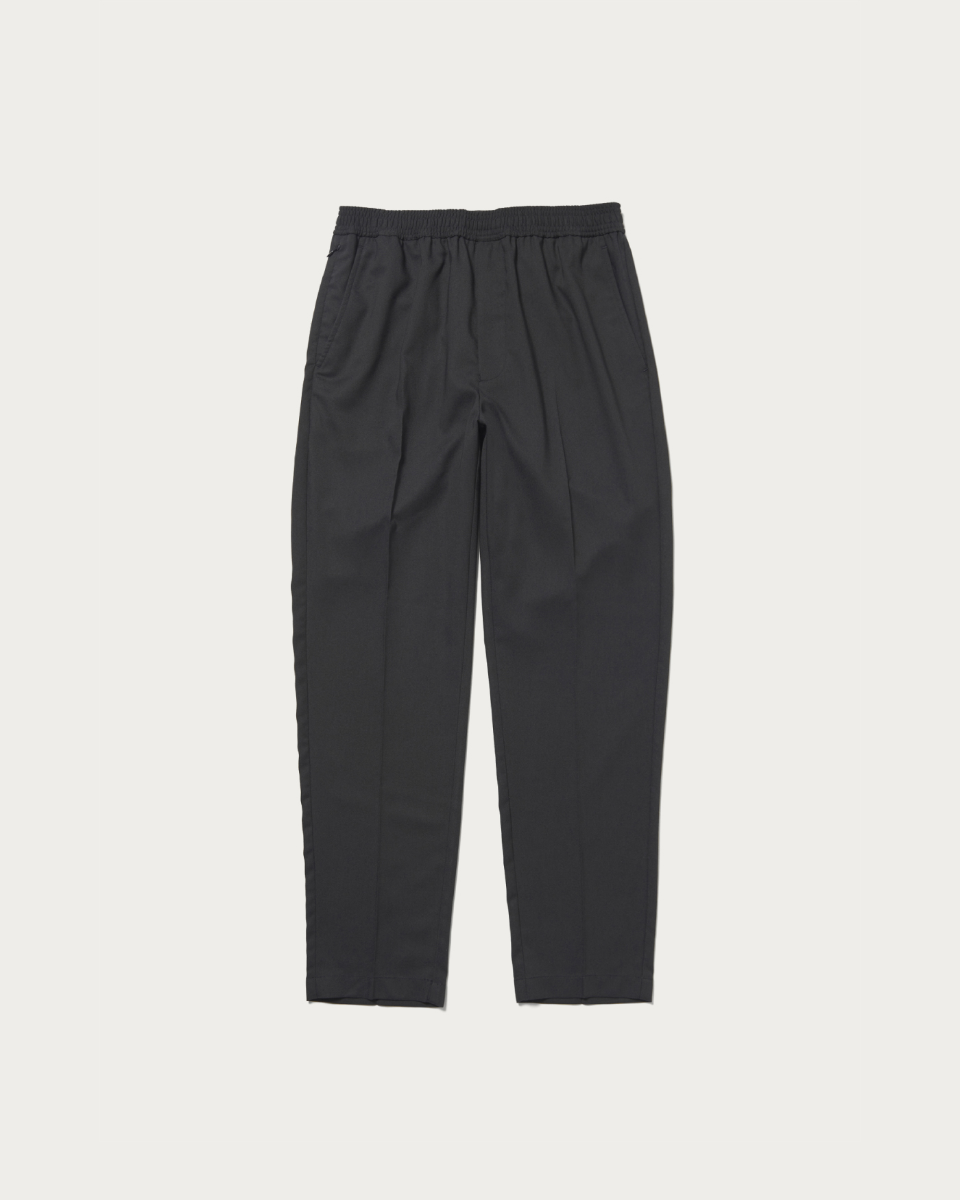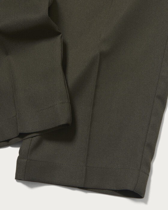 定番のオルマイパンツ。イージーパンツ仕様ながら、クリースが入っていることでクリーンな印象に。強撚糸を使用したドライタッチなカルゼ素材です。