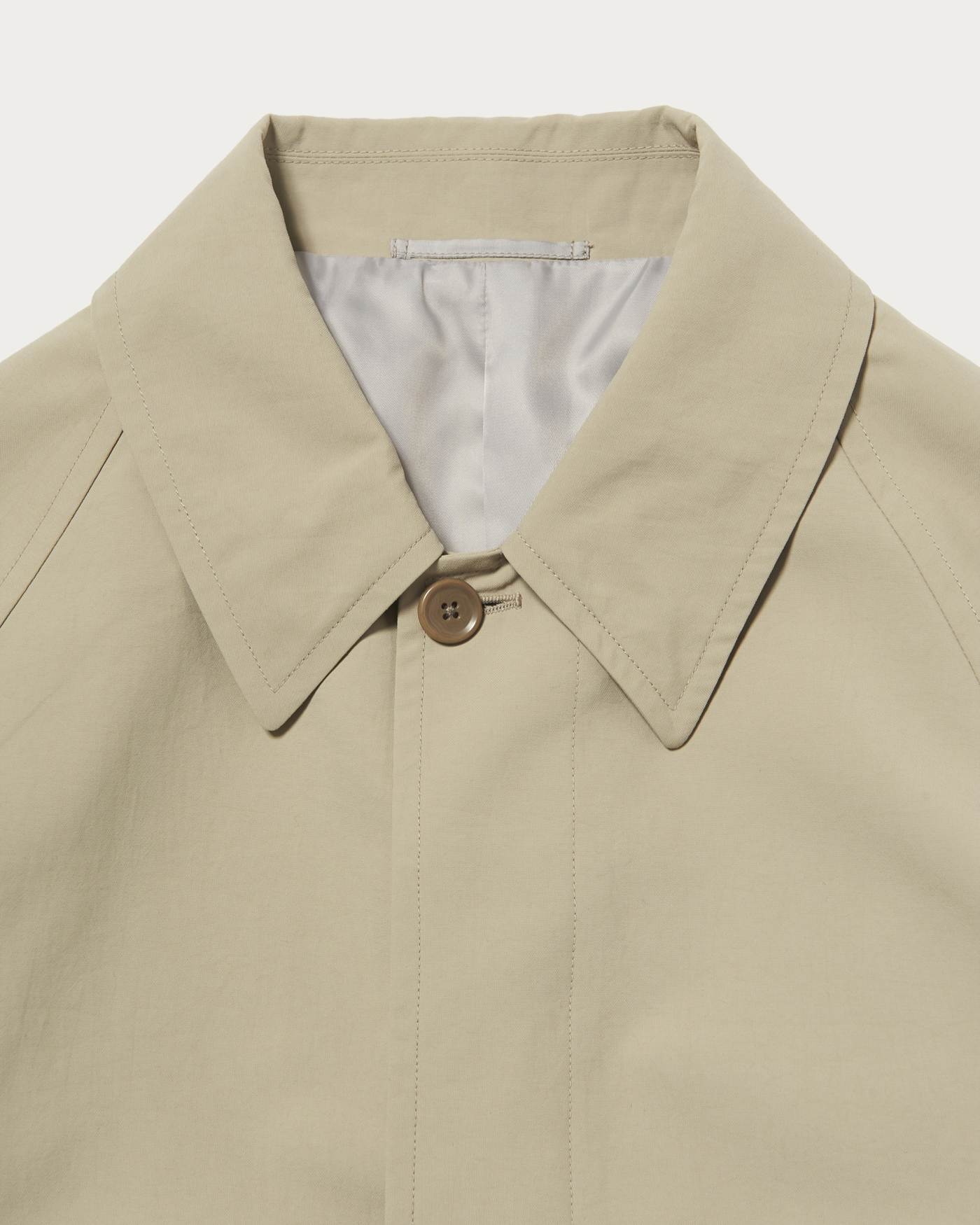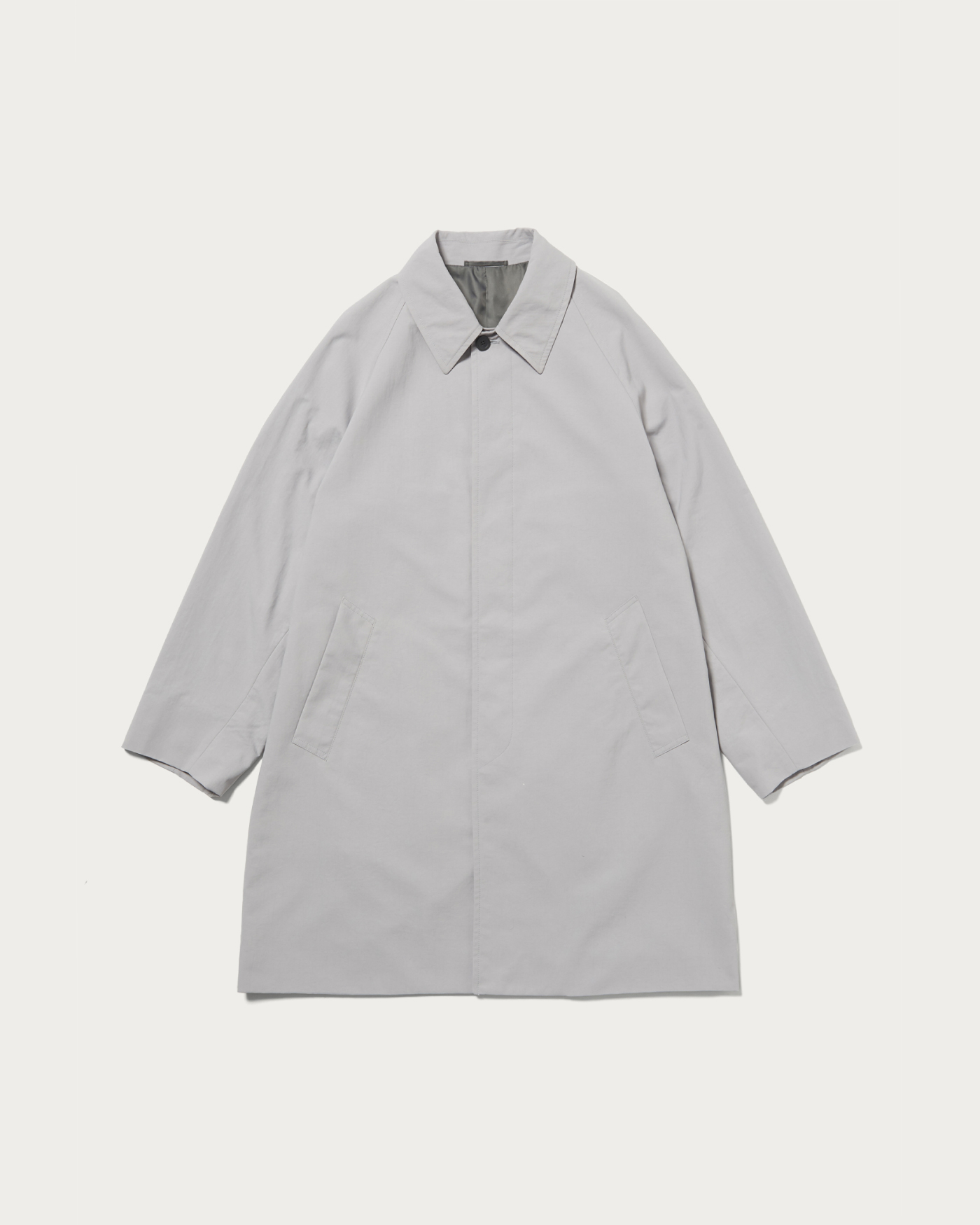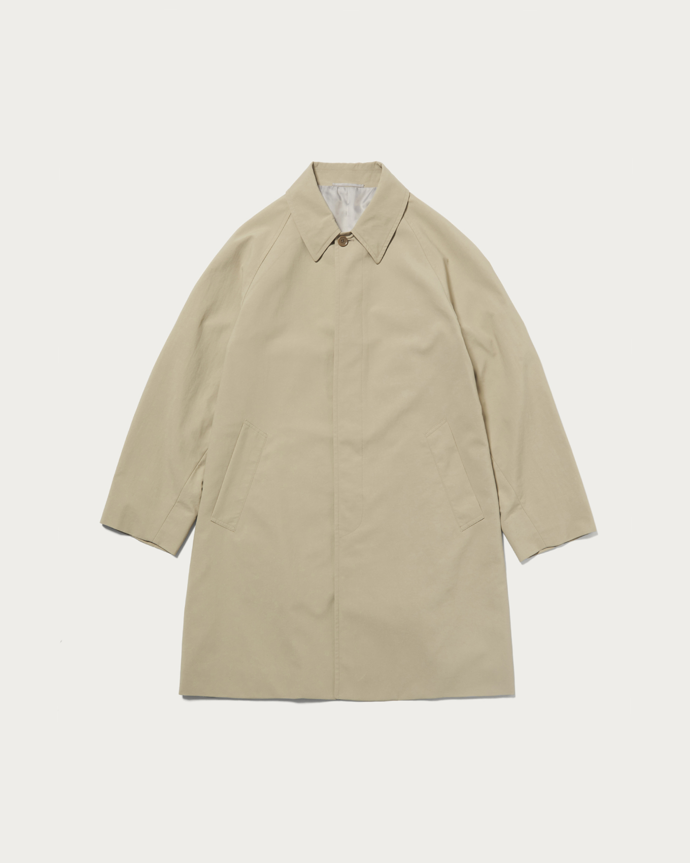 グリーンレーベル リラクシング定番のナイロンオックス素材を使用したステンカラーコート。多彩なポケットを備え、荷物の少ない日ならバッグいらずで外出できる実用性がポイント。クリーンな佇まいと機能性を両立した一着です。