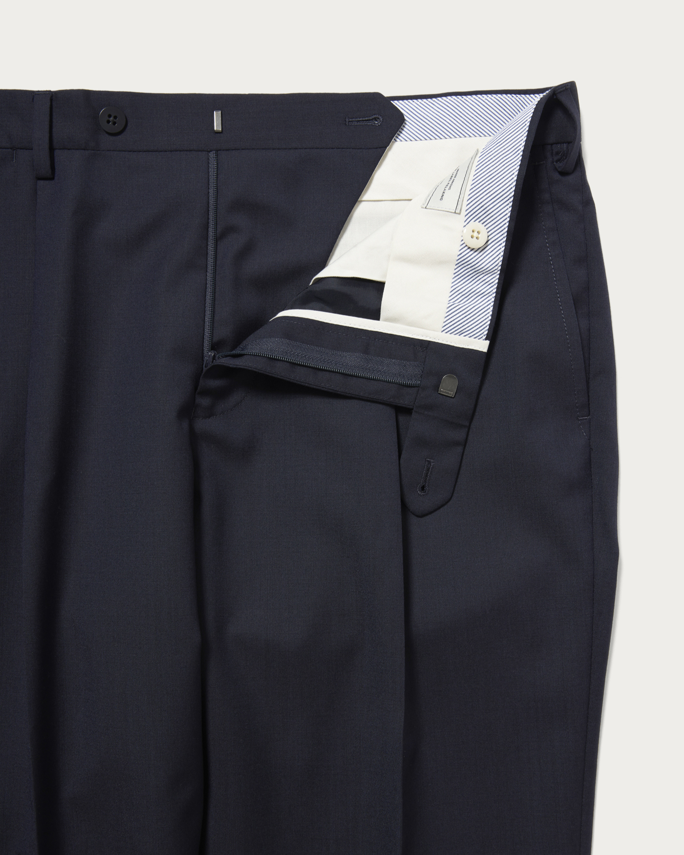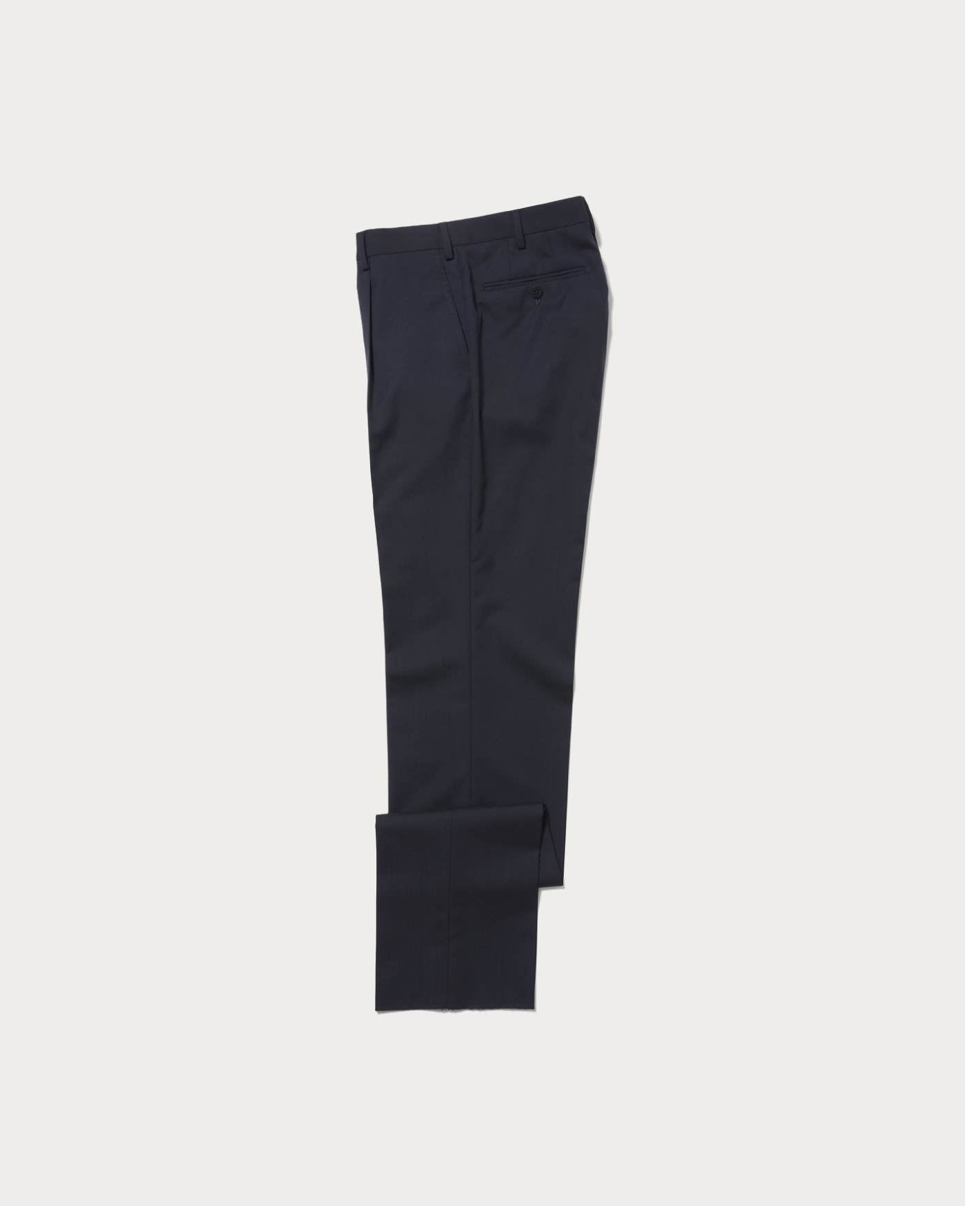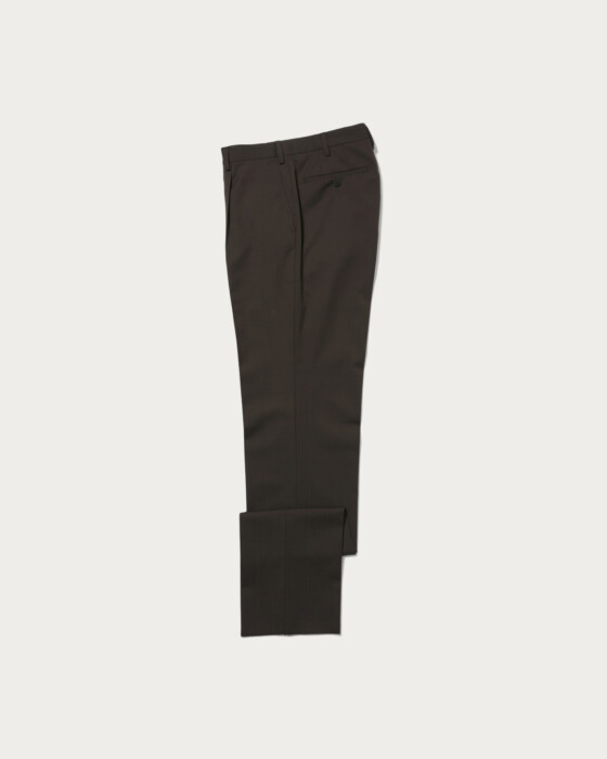 イタリア・GUABELLO(グアベロ)社のモヘアブレンド素材を使用。上品な光沢と、ドライでハリ・コシのあるタッチが魅力。ゆとりを持たせた1タック入りのトラウザーで、端正さと快適さを両立しました。