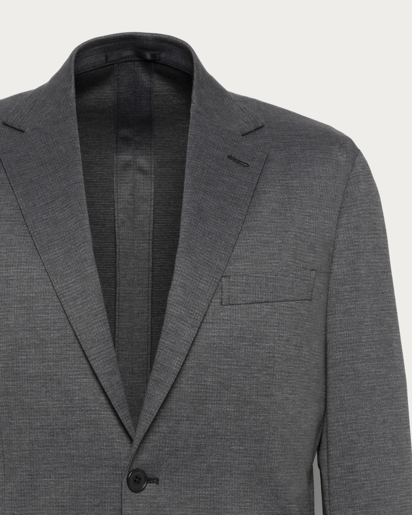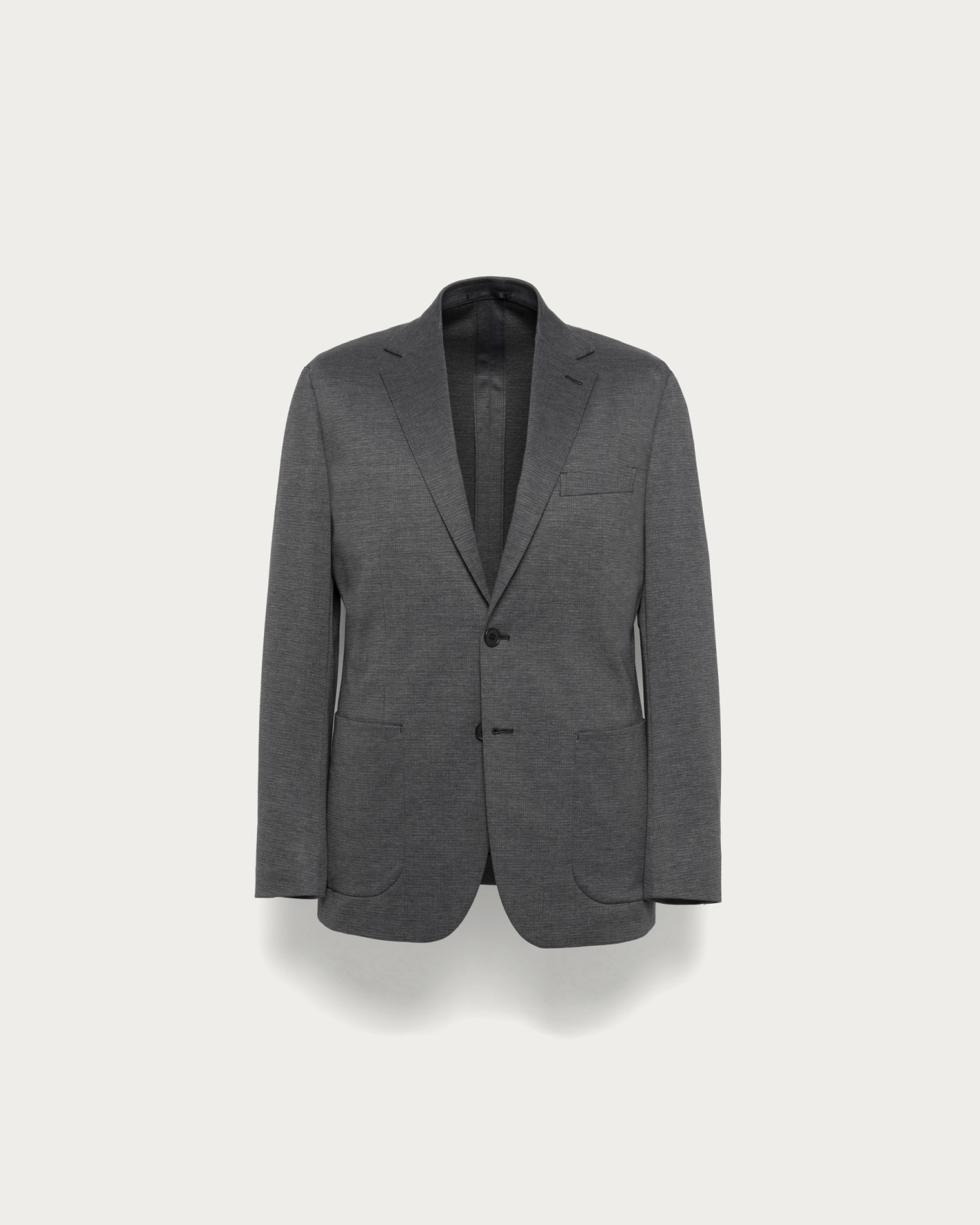 春夏の時季にちょうどいいポンチ素材に、精巧な組織柄をプリントしたジャケット。ジャージーでありながら布帛のように見える、上品な表情が特徴です。A+(エープラス)のSTANDARD(スタンダード)モデルらしいバランスの取れた設計で、単品使いもしやすいパッチポケットデザイン。