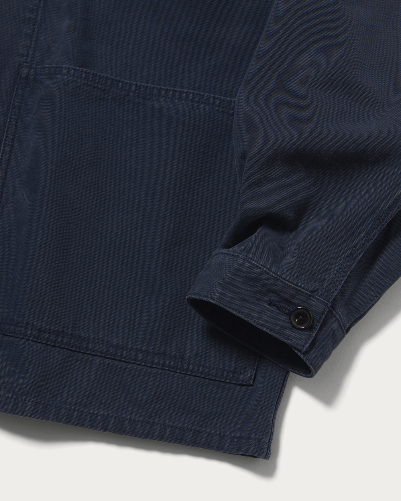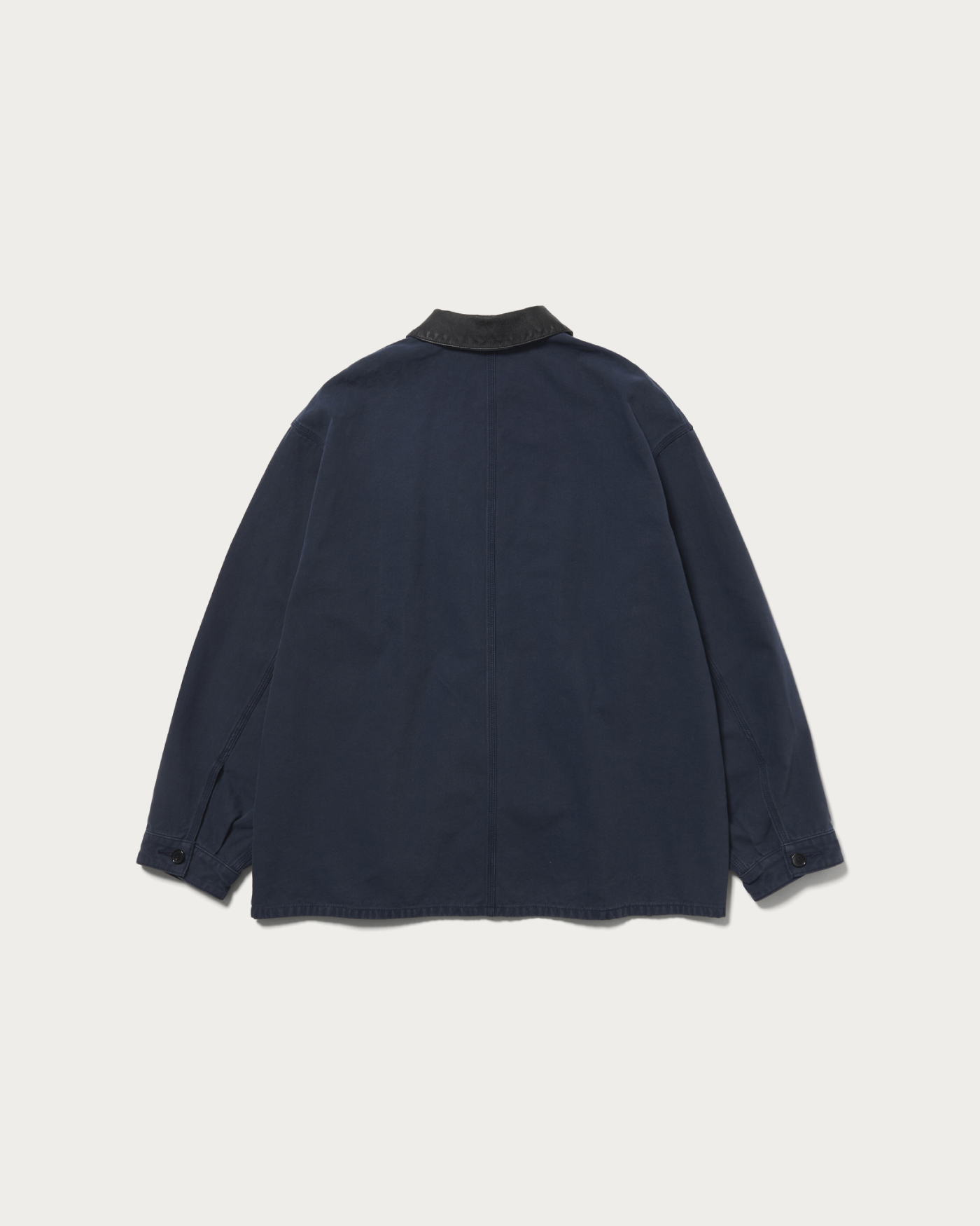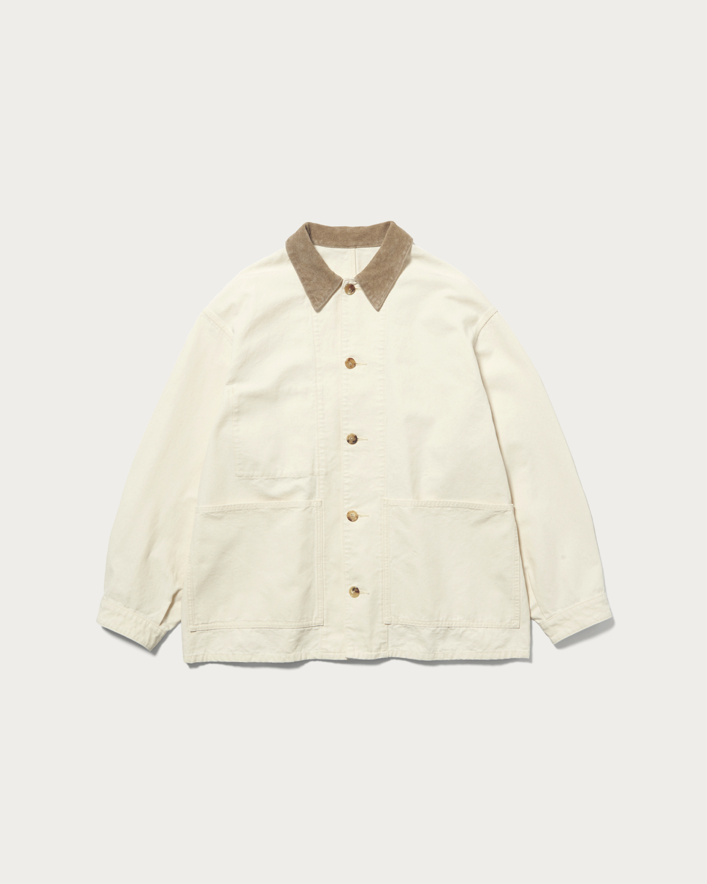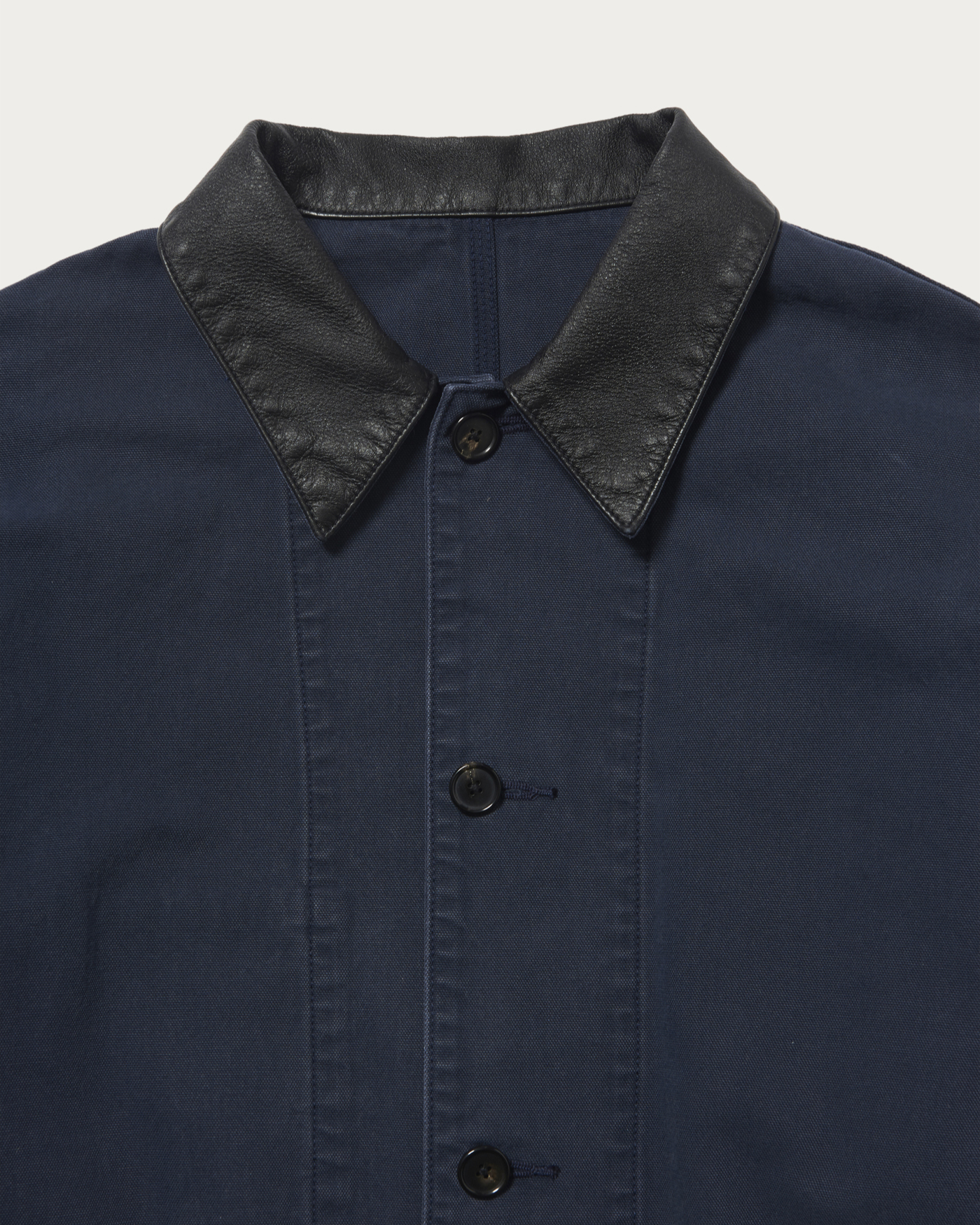 アメリカのカバーオールをベースに、都会的なムードでアレンジしたカバーオールです。ゆったりとしたオーバーサイズシルエットに、直線的で大きなポケットを配置したデザインが特徴。表襟にはウォッシャブルカウレザーをあしらい、フロントにはホーンボタンを採用することで、上品なワークジャケットに仕上げています。