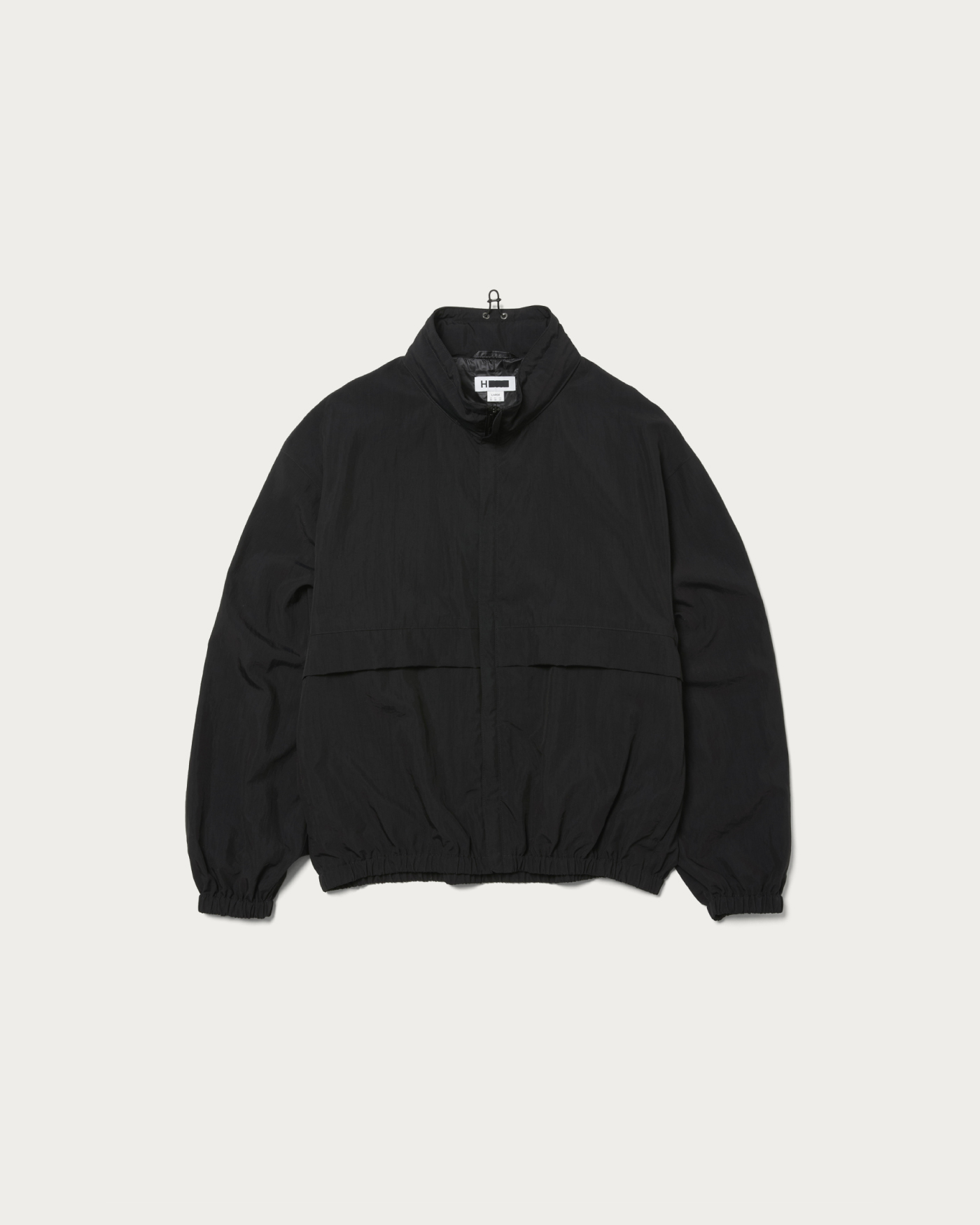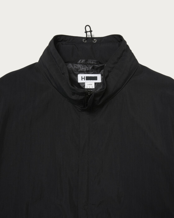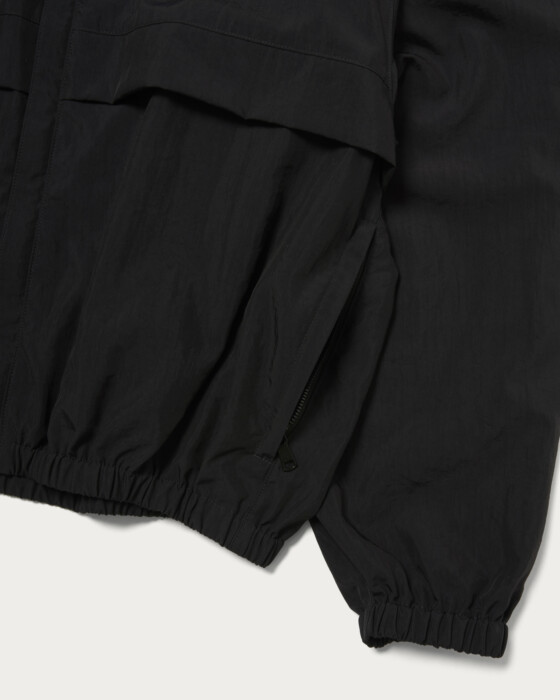 デザインは90年代のスポーティーなスタンドカラージップジャケットがベースです。低いスタンドカラーの中にフードが収納されていて、フーディとしても着用出来ます。程良くゆとりをもたせた身頃。ドルマンスリーブの袖もゆとりをもたせています。ファスナーはエクセラを使用。磨きのかかったエレメントが美しくとても高級感があります。シルクスパンとナイロンを交織で高密度に織り上げたハイカウントタフタです。