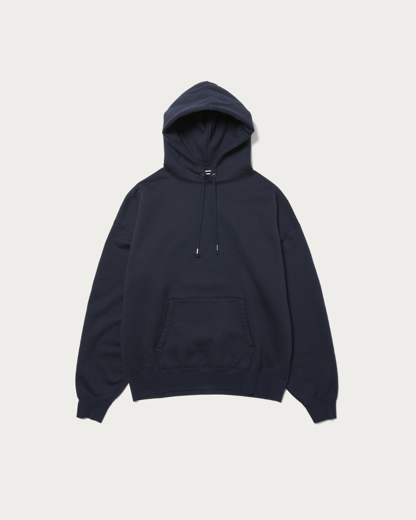 「毎日着られる上質なスウェット」をコンセプトにお作りしたスウェットフーディです。ゆったりとしたワイドシルエットでドロップショルダーが特徴。表糸には59番双糸で紡績したハイクオリティな糸を採用。コンパクト紡績により毛羽感を少なく、且つ甘撚りで滑らかさを演出した非常にこだわった特殊糸を採用しています。オーディナリーなアイテムながら、洗練された大人のスタイルに導く万能な一着です。