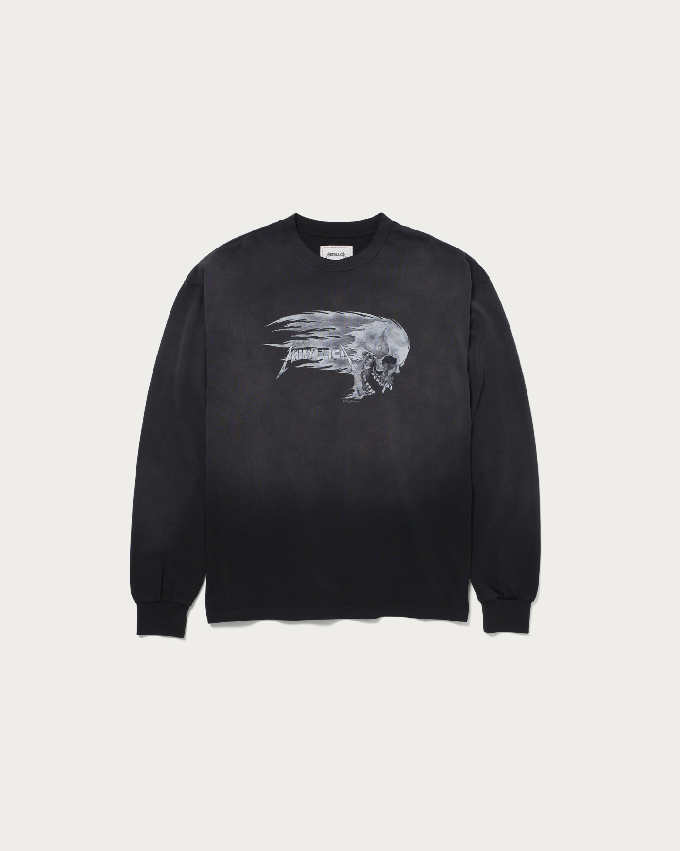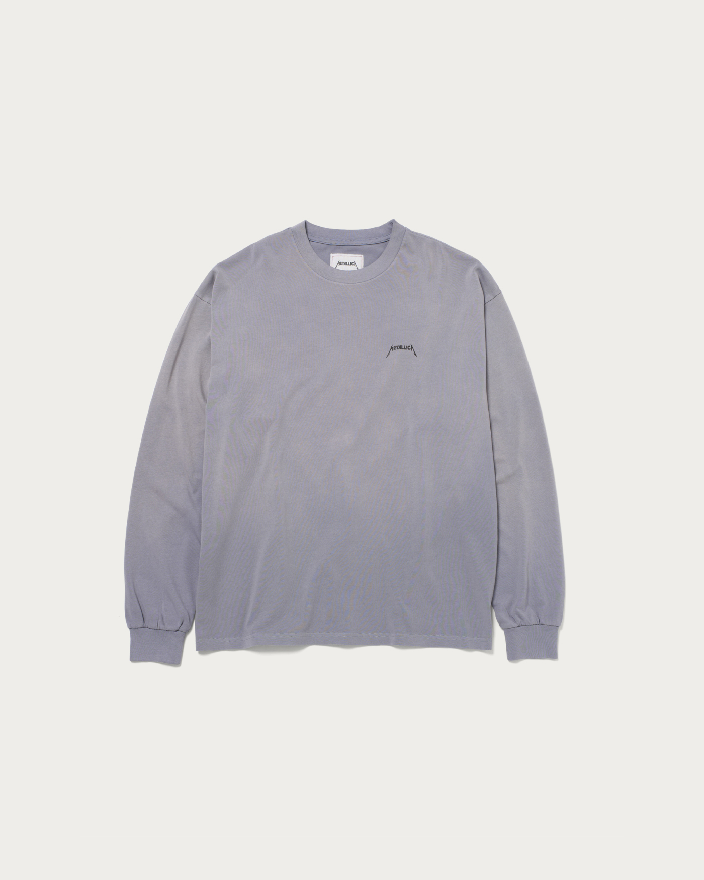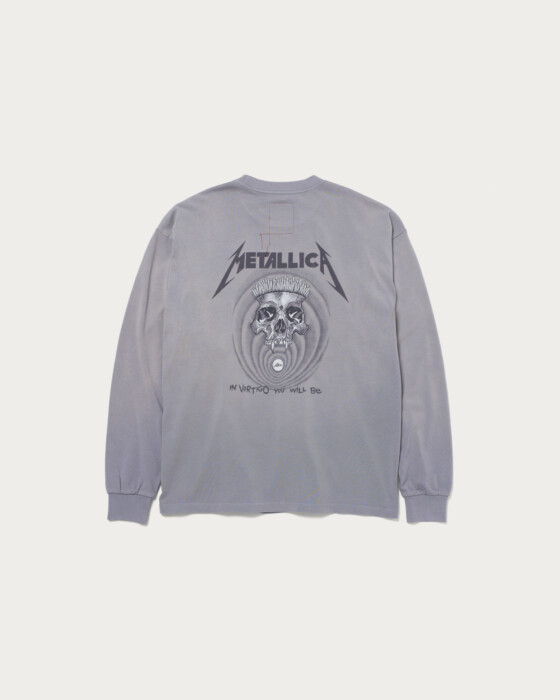 透け感の無いしっかりとした肉感の天竺素材を使用した〈METALLICA〉とのコラボレーション。数あるアートワークから今日のファッションに馴染む2柄を選定し、日焼け加工による退色感を出しています。