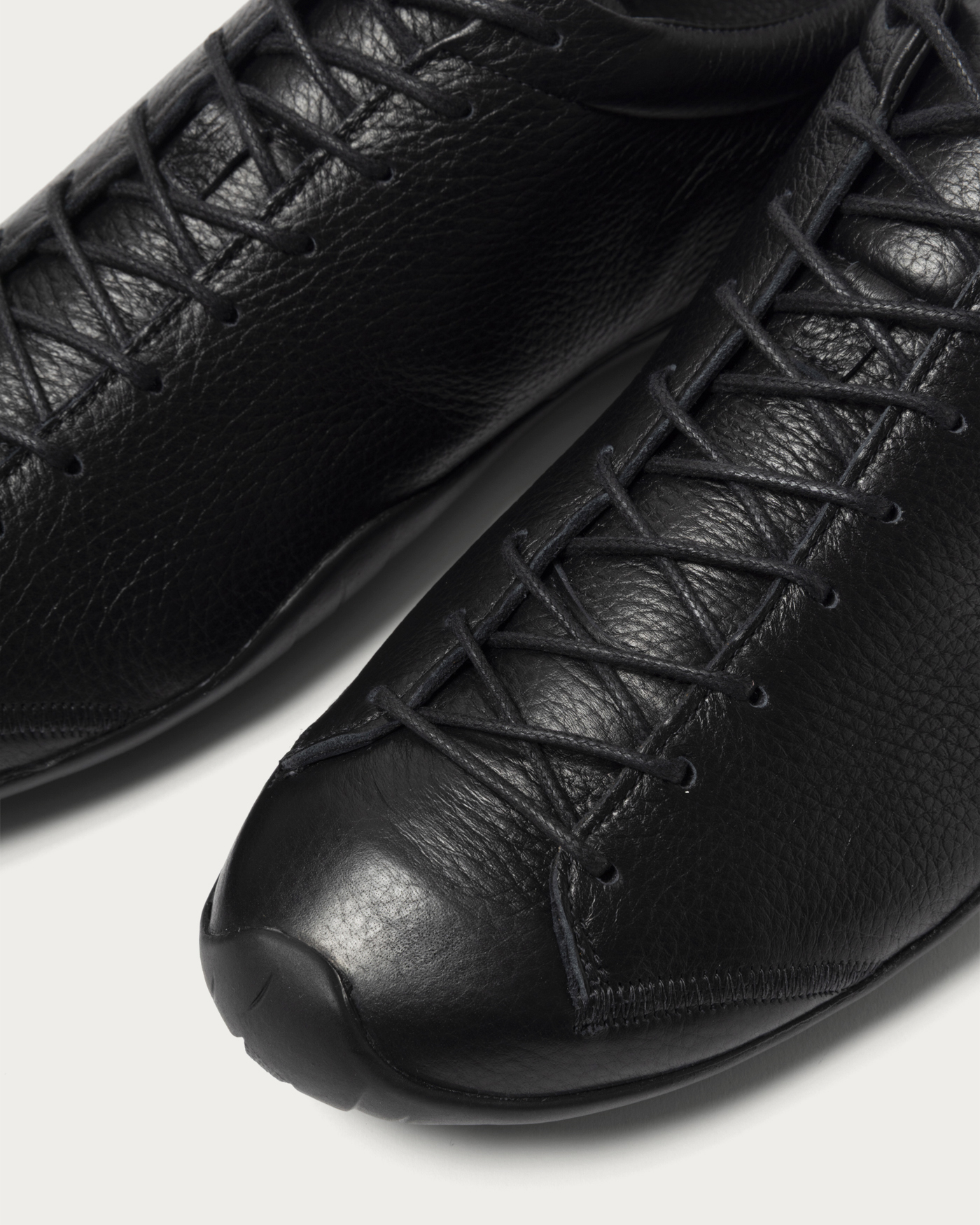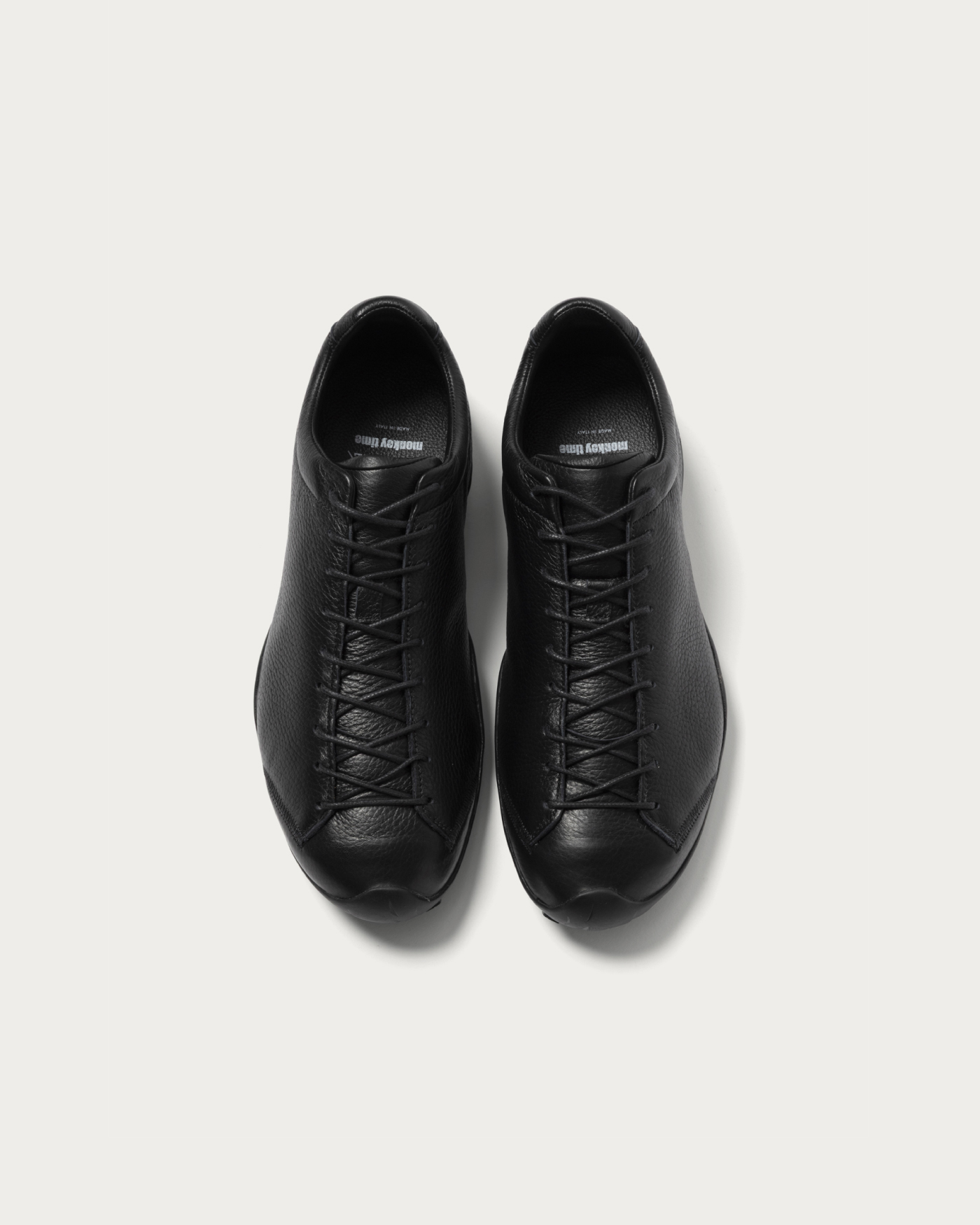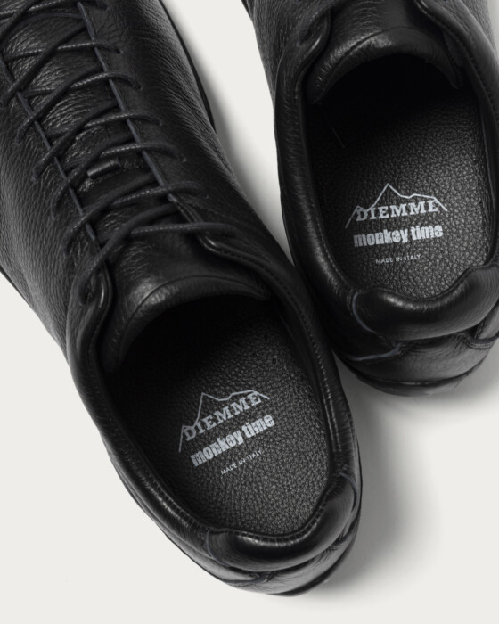 メゾンブランドのスニーカーの生産も手がけるイタリアのシューズブランド〈Diemme〉。その中でも特に人気が高い、2000年代のクライミングシューズからインスパイアされた「アンペッツォ ロッカ」をベースに別注を敢行。アッパーは上質でやわらかいシュリンクディアレザーに、シューレースは蝋引きされた丸紐にチェンジ。また、今日的なビブラム®社製の薄底アウトソールを採用し、カジュアルパンツはもちろんスラックスにも相性のいいデザインを目指しました。