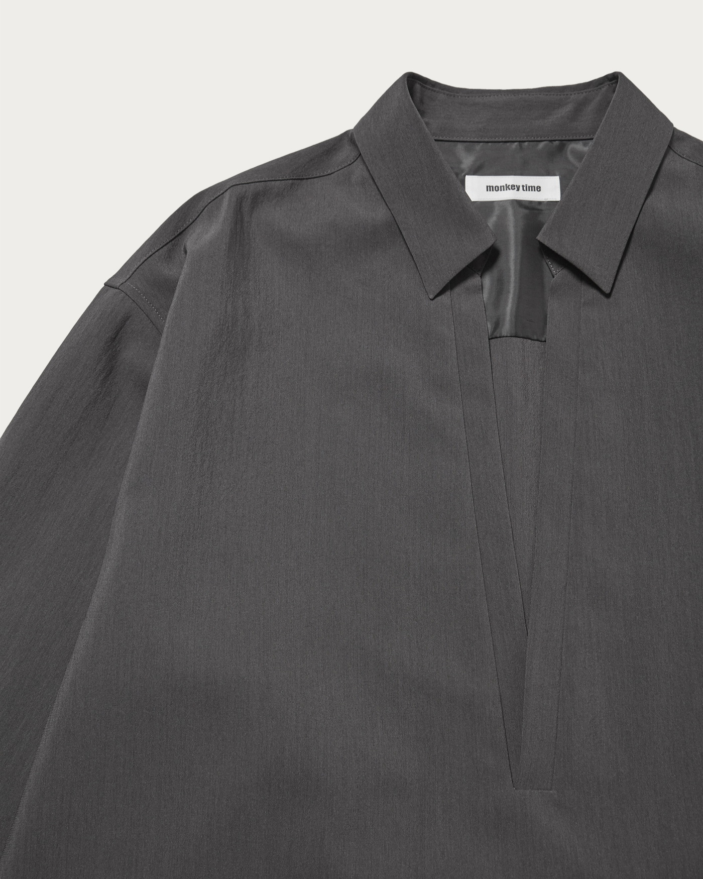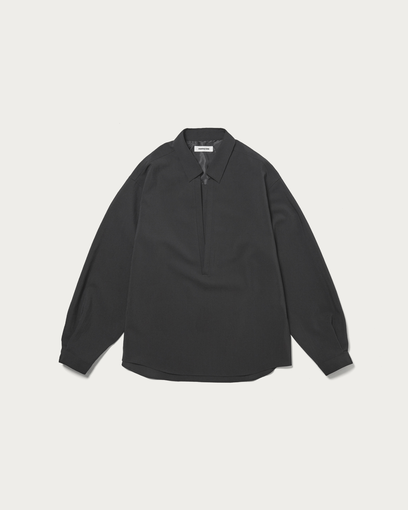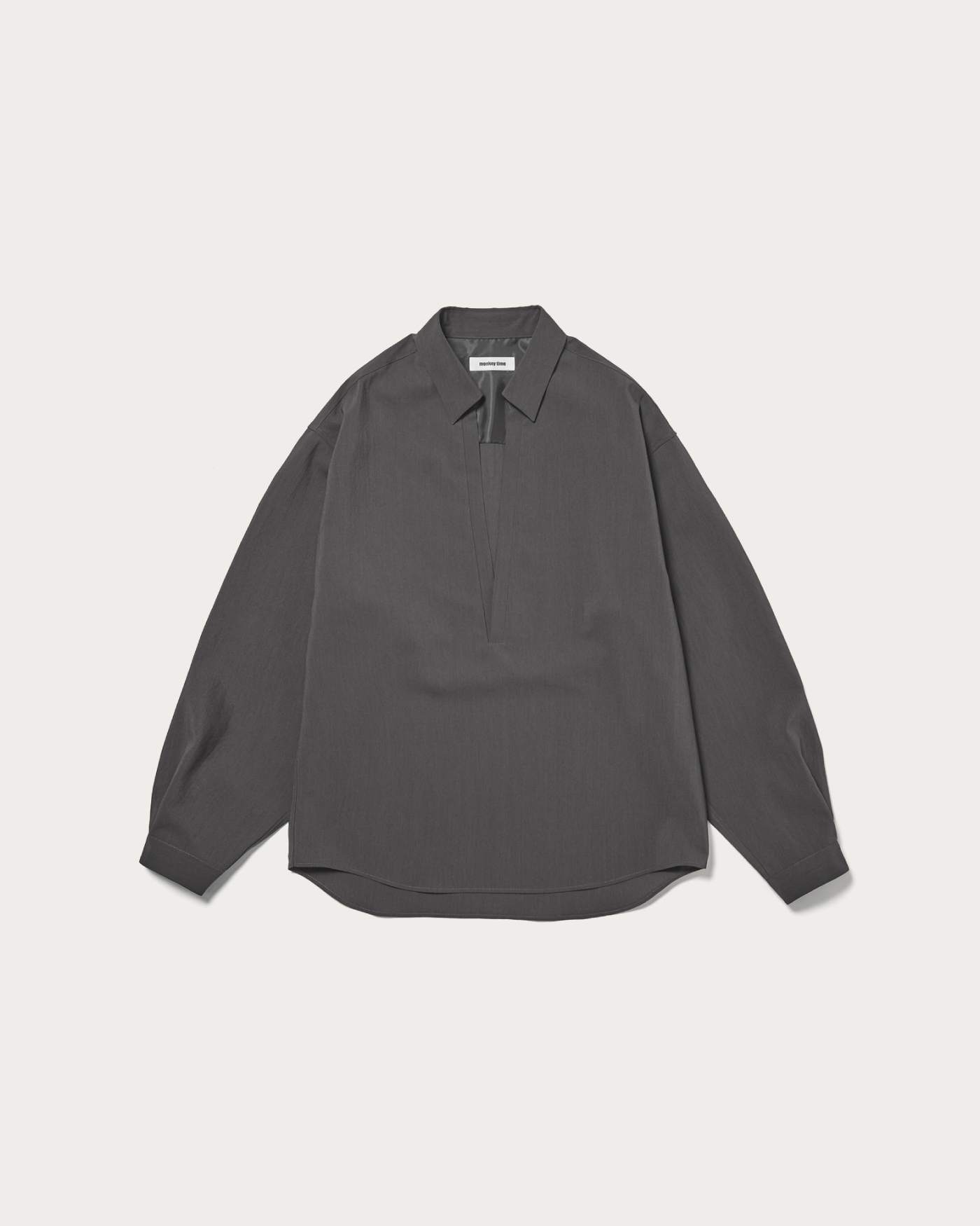 〈monkey time〉春夏の定番素材であるRENUトロピカル素材を使用したプルオーバーシャツ。深めに設定したVゾーンが特徴で、インナーを見せる春らしいスタイリングが完成します。