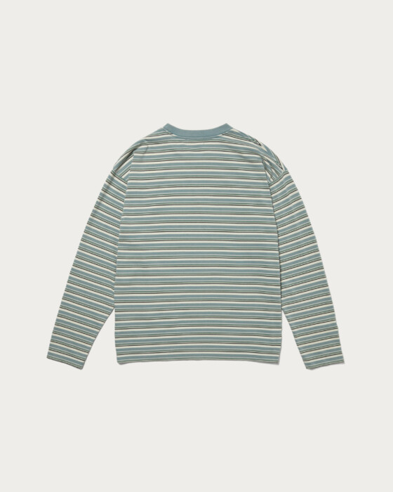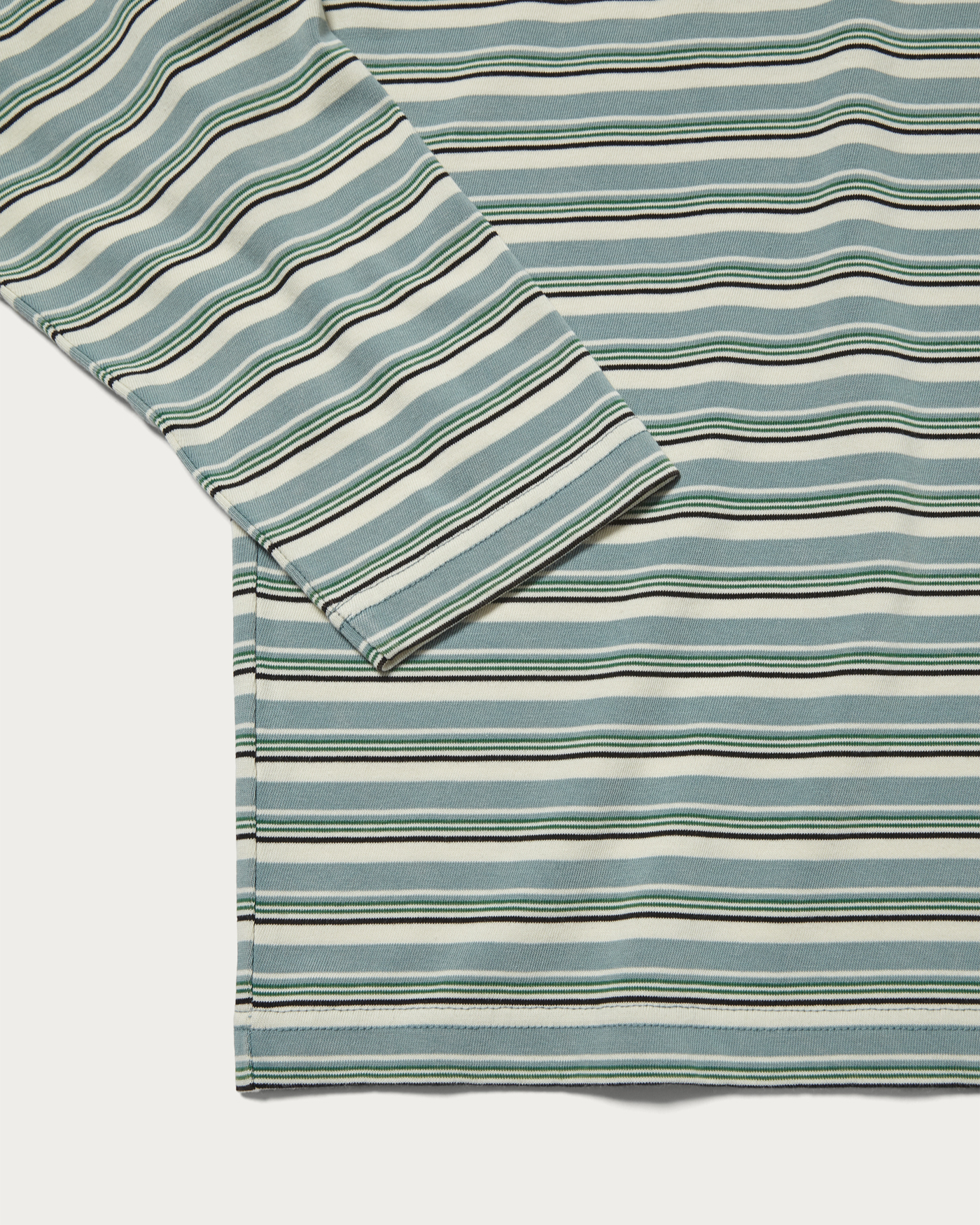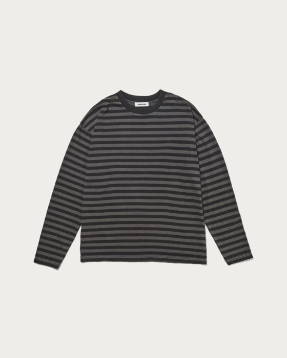 透け感の無いしっかりとした肉感の天竺ボーダーロンT。程よくリラックスしたサイズ感と、退色加工が特徴です。