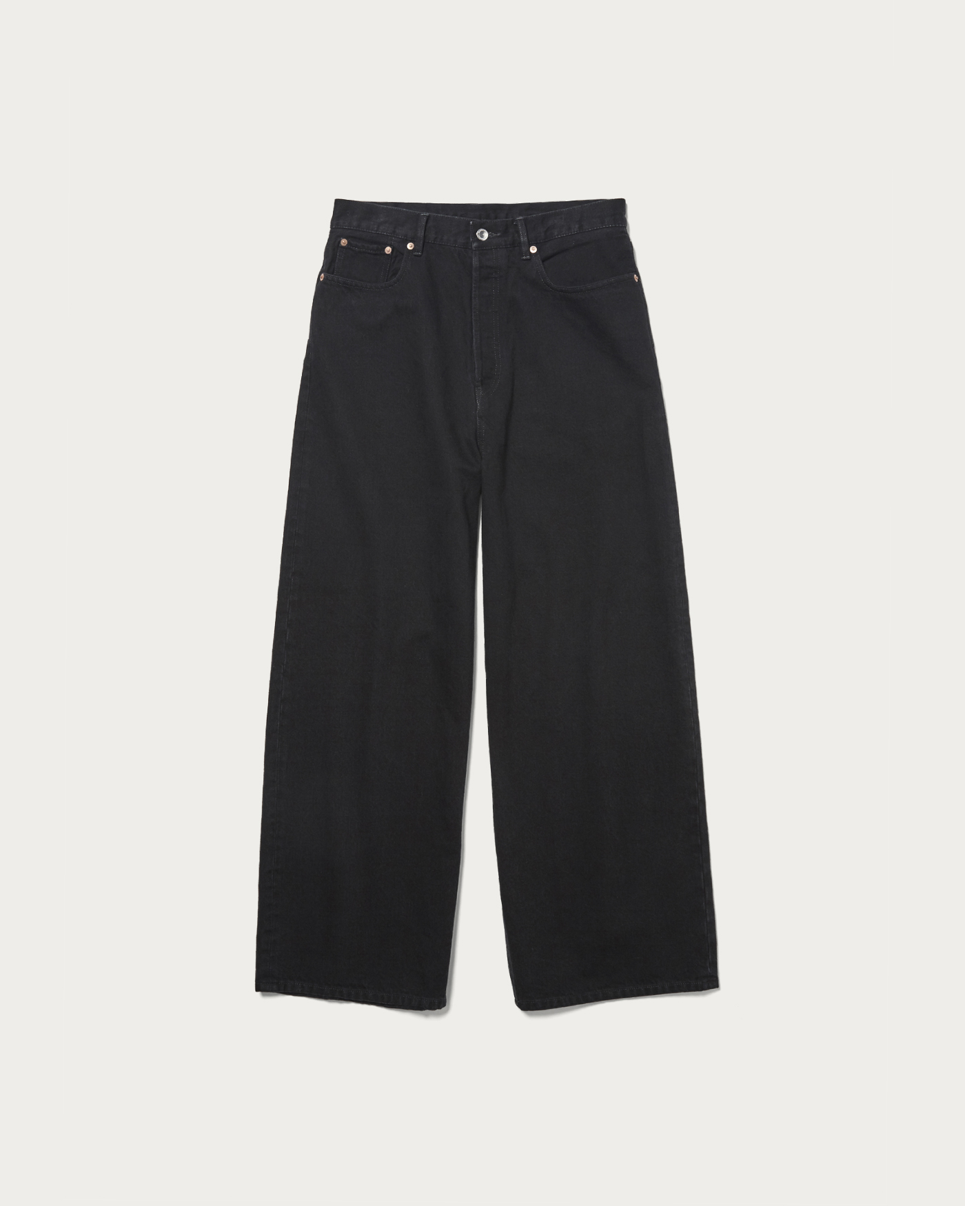 13oz程度のしっかりとした肉感のデニムを使用した新作。シルエットは〈monkey time〉で人気のバギーシルエットよりも一回りワイドになっています。フロントは釦フライ、後ろにはシンチバックを搭載しクラシックを現代解釈したデニムパンツです。
