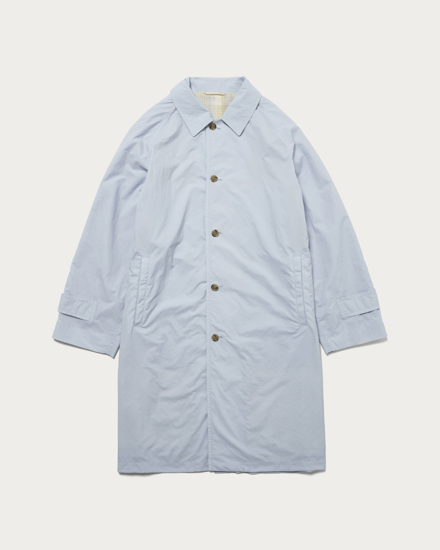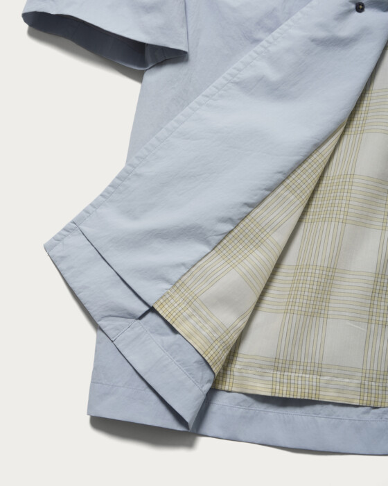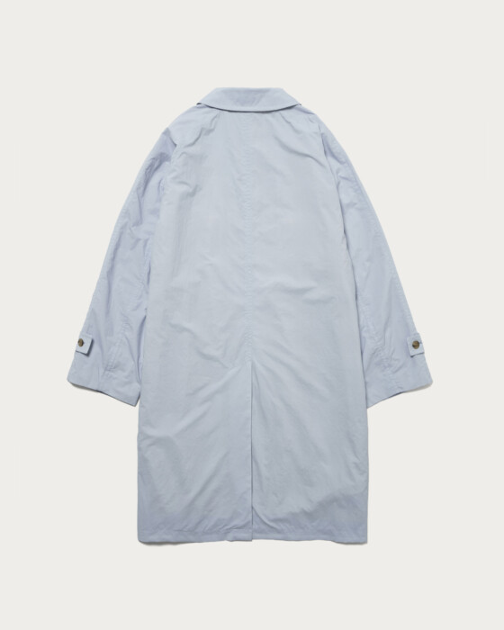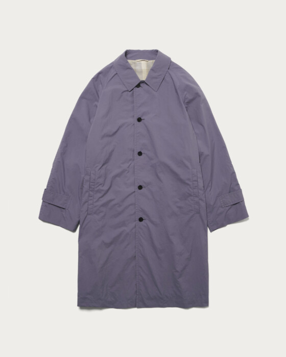 小松マテーレ社のダントツ撥水加工を施したナイロンタフタを使用したコート。マットでナチュラルな表情を持つ、天然素材のような軽量ナイロン素材を採用しています。表面に現れるワッシャー感や、キャッチーな配色の裏地など、素材そのものの魅力を凝縮。機能性とデザイン性を高い次元で両立した一着です。