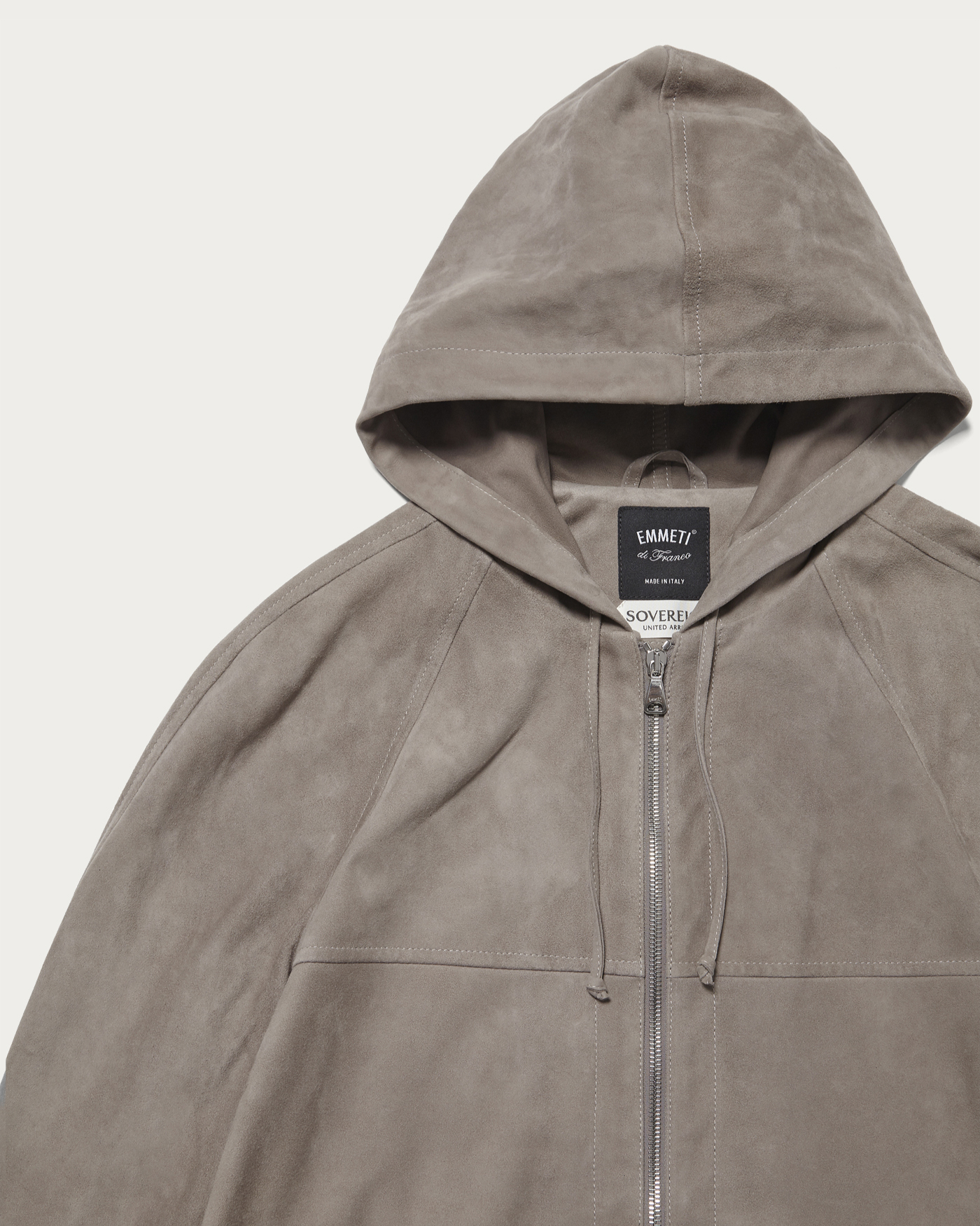 非常に柔らかく、滑らかな手触りが特徴のゴートスキンスエードを使用したフーディ。襟周りは緩すぎず詰まりすぎない絶妙なバランスに調整し、袖丈や裾幅もすっきりと整えることで、全体を品の良いシルエットに仕上げました。フーディでありながら、ドレス感のあるパンツとも好相性。26SSシーズンは〈UNITED ARROWS〉のみでの展開となる、特別な一着です。