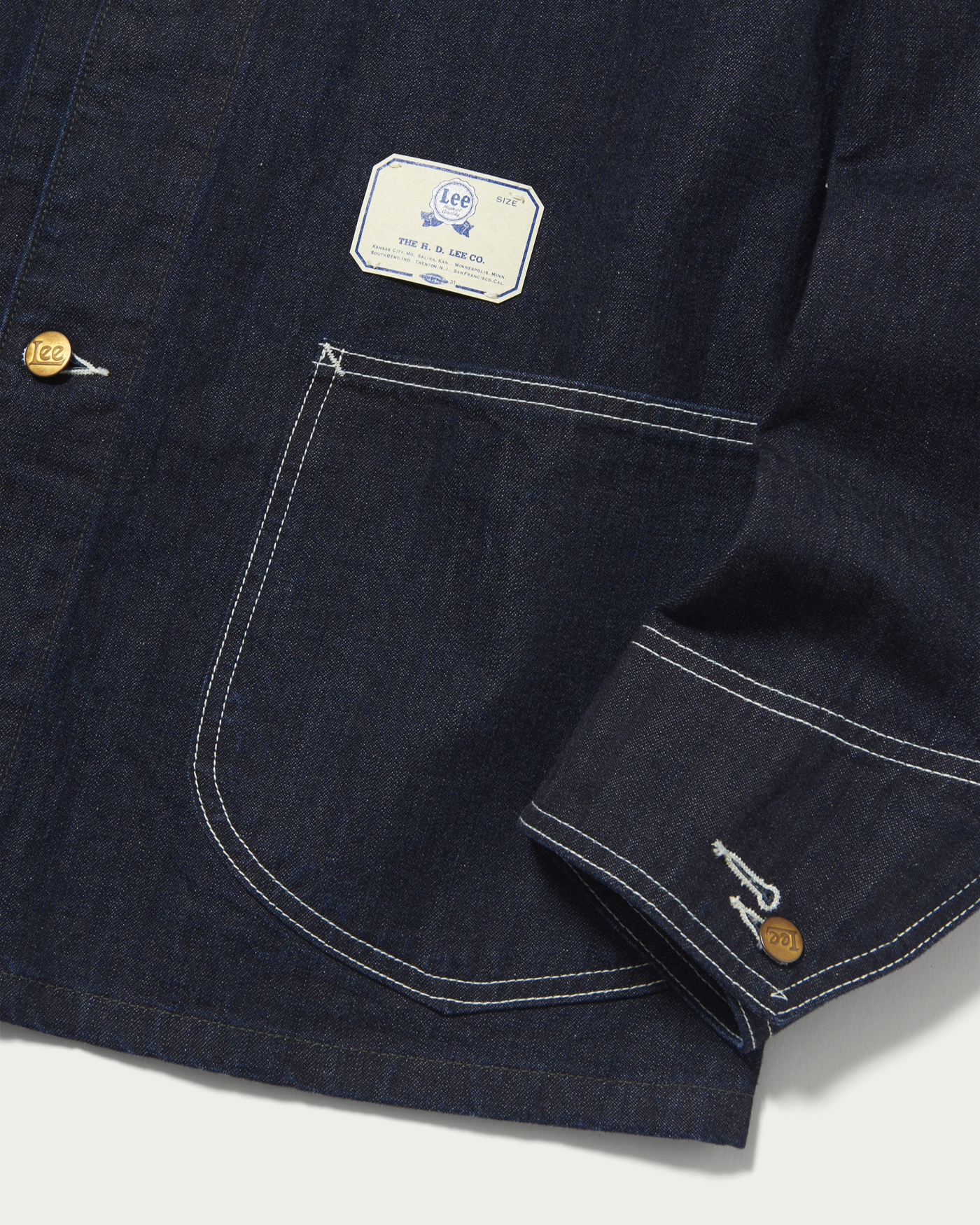 ベースとしたのは、大戦モデルのロコジャケット。前回のコラボレーション同様、ピヴォットスリーブパターンを採用し、可動域の確保と美しいシルエットを両立しています。仕上げはワンウォッシュ仕様。ディテールには、ヴィンテージファン垂涎のロングL刻印入りタックボタンをトップ釦に採用し、クラシックな表情をより一層引き立てました。