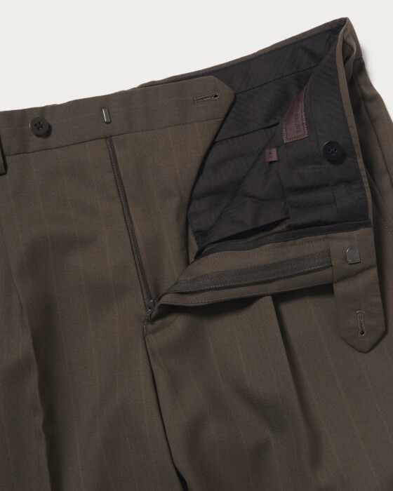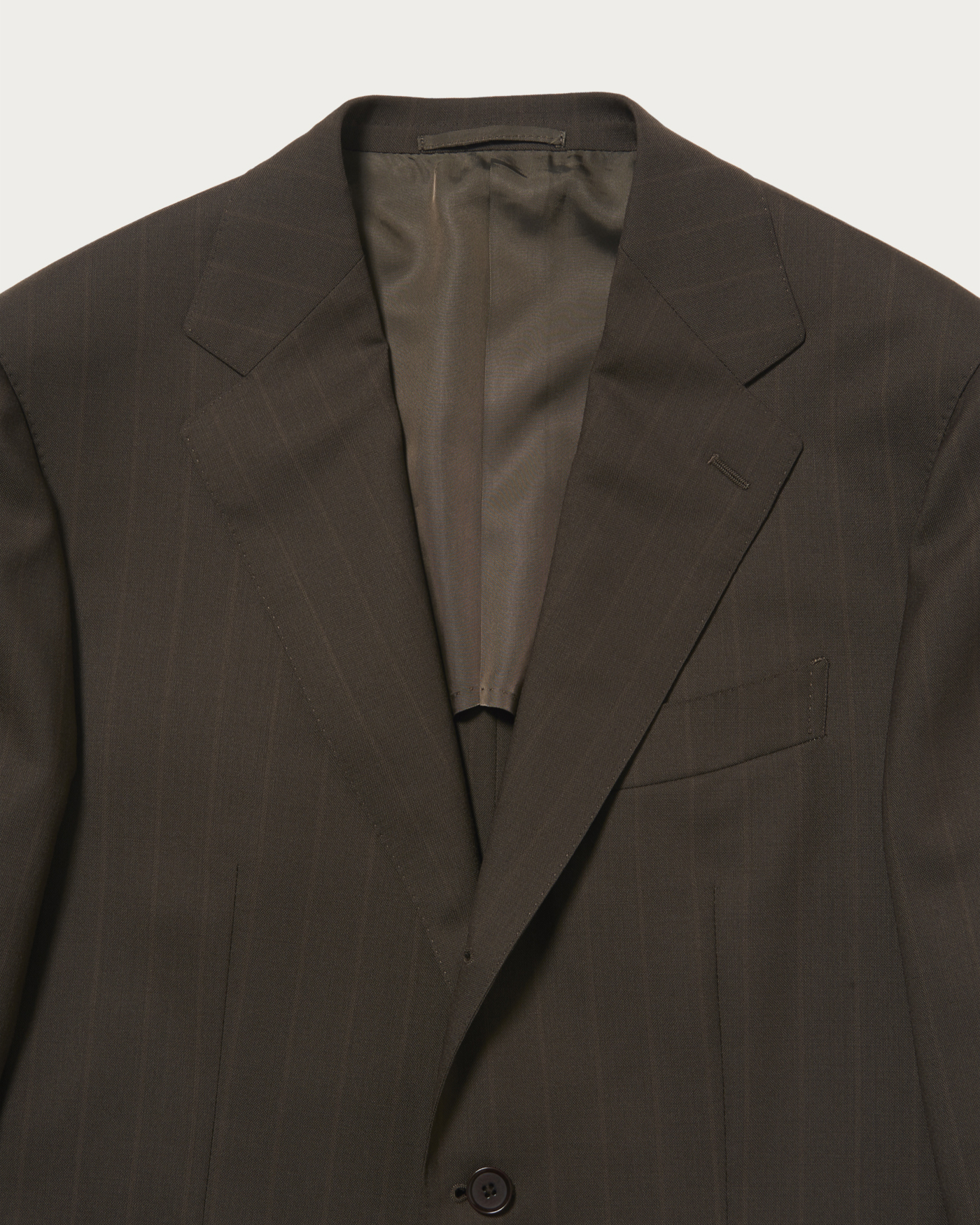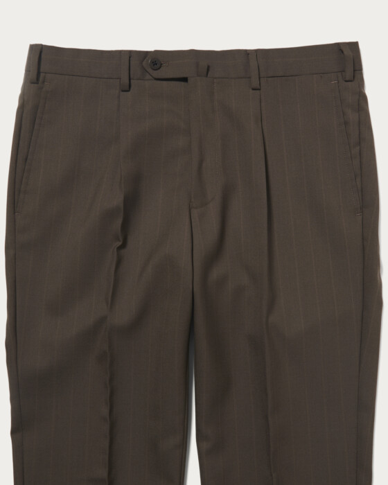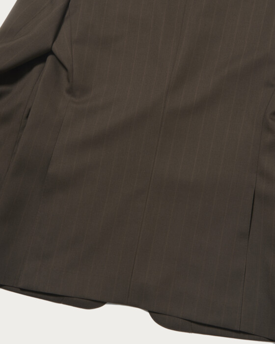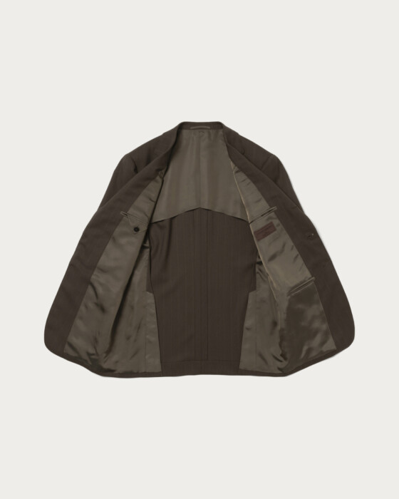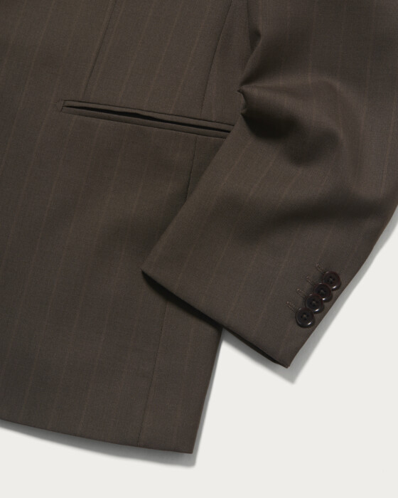 現代的なクラシックを〈UNITED ARROWS〉らしく解釈した、モダンクラシックなシングル3Bモデル。素材には、「VITALE BARBERRIS CANONICO」社のシーズンコレクションから、赤味を帯びたブラウンのシャドーストライプ生地を採用しました。平織り組織に撥水加工を施したエクスクルーシブ素材で、端正な表情と機能性を兼ね備えた一着です。