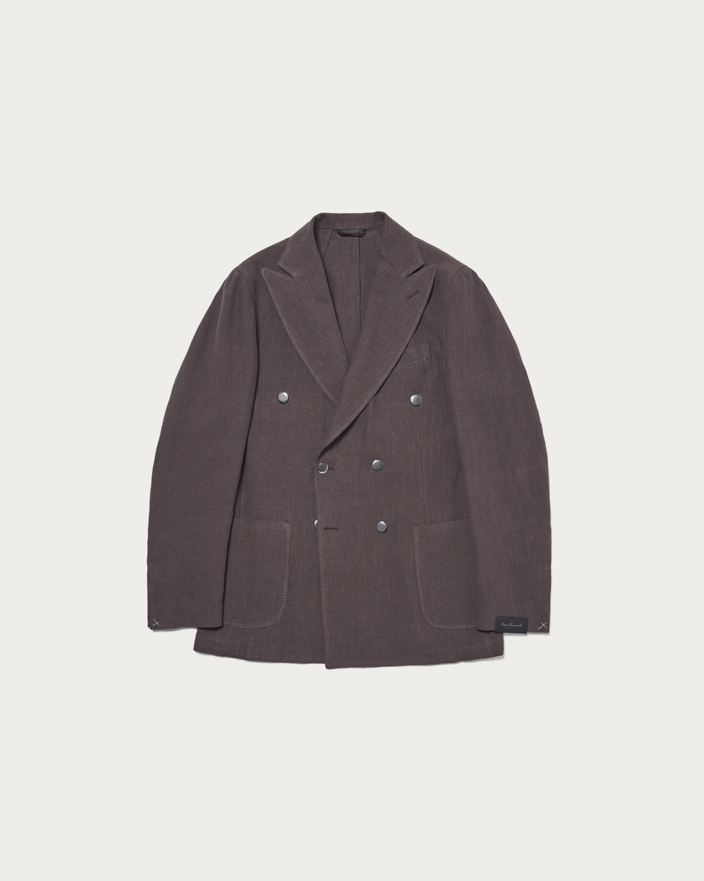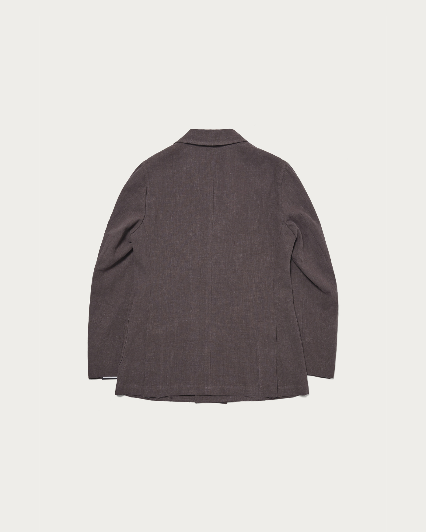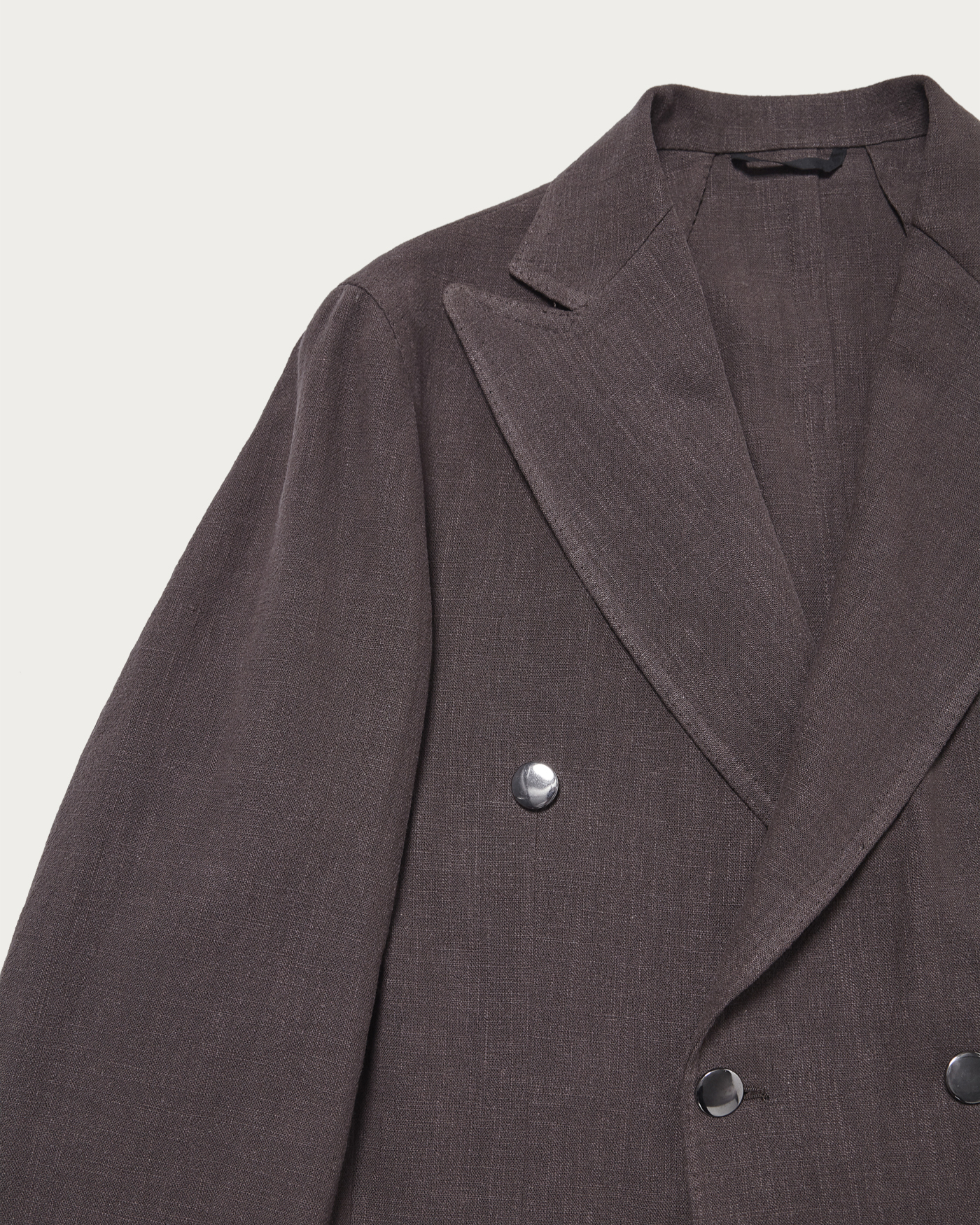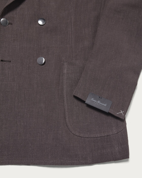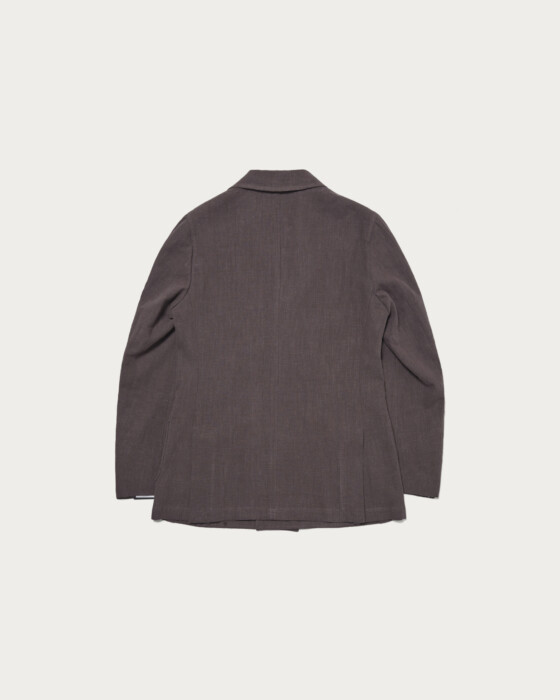 落ち着いたトーンのブラウンカラーが新鮮な6つ釦ジャケット。リネンを織り込んだ軽やかな素材使いに、シルバーボタンを組み合わせることで、6Bモデルでありながら重さを感じさせない佇まいに仕上っています。
