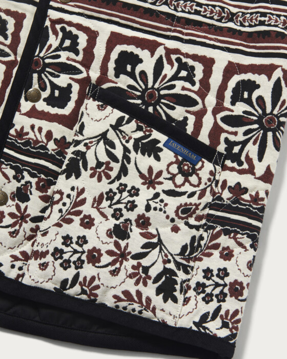 インナー使いもしやすい、ノーカラーモデルの「THORHAM」。インラインでは展開のない、クラフト感のある素材を使用しています。従来よりも中綿量を抑えつつ、寒さを凌げる襟のデザインを採用し、春先のレイヤードスタイルに重宝する一着に。春はアウターのインナーとして、初夏にはニットの上から軽く羽織るなど、シーズンをまたいでさまざまなコーディネートに活躍します。