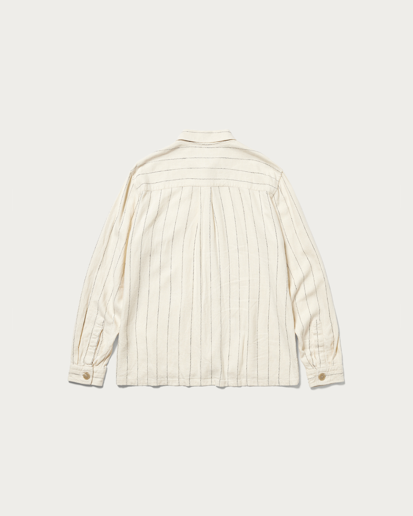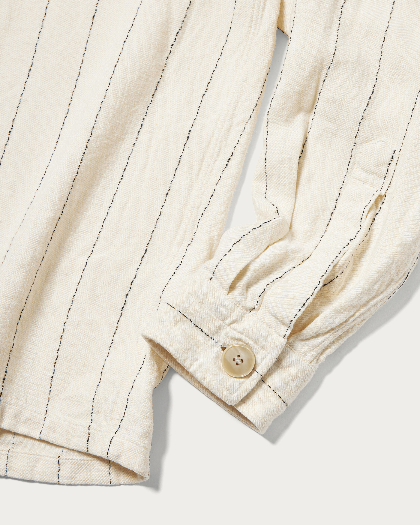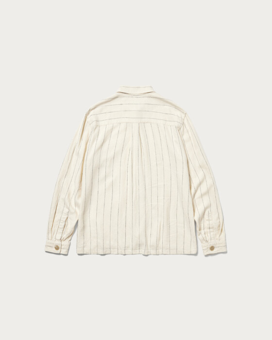 イタリアのシャツ専業メーカーによる、ナチュラルな色合いにシックなピンストライプが映えるオーバーシャツ。ドレープ感のある素材とリラックスしたシルエットにより、シャツとしてはもちろん、軽い羽織りとしても着用しやすい一着です。