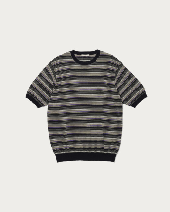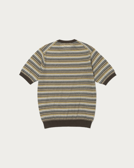 清涼感のある編地で仕立てた、半袖クルーネックニット。ネックは首元にすっきりと収まる設計で、クリーンで洗練された佇まいが特徴です。ボディは程よくゆとりのあるフィットとし、素材感と相まってリラックスしたムードを演出。素材には、イタリアメーカーのリネンコットン糸を使用した天竺編みを採用。リネンならではのナチュラルで清涼感のある表情に加え、シアーで甘さのある編地がファッション性とリゾートムードを高めています。