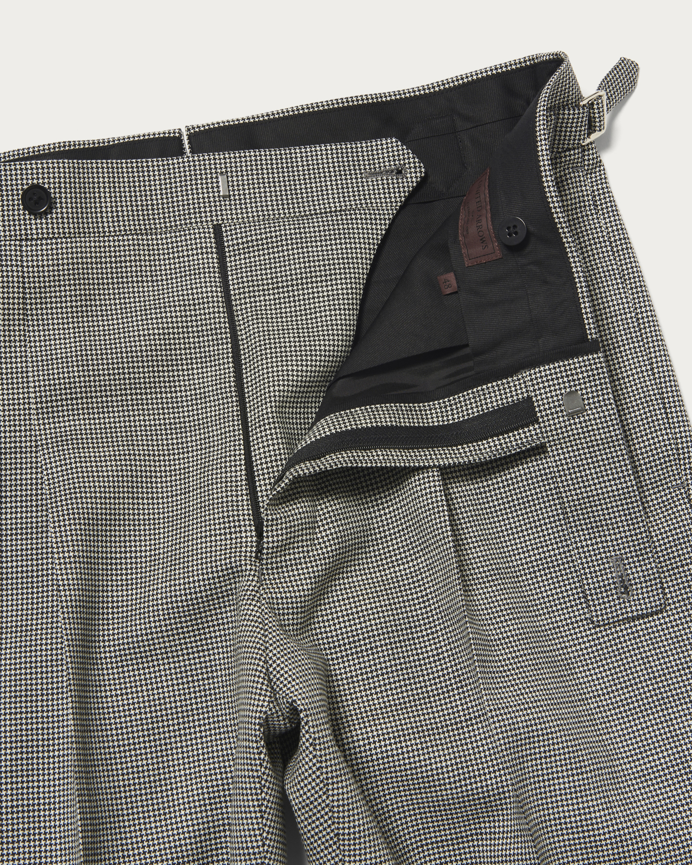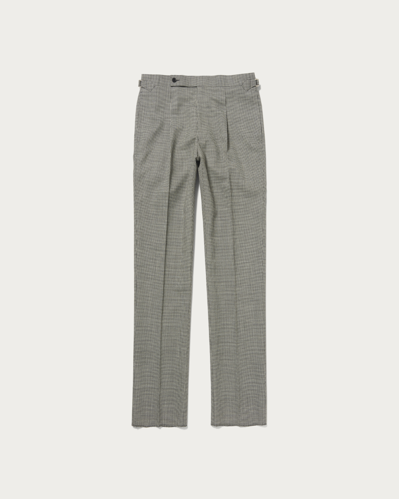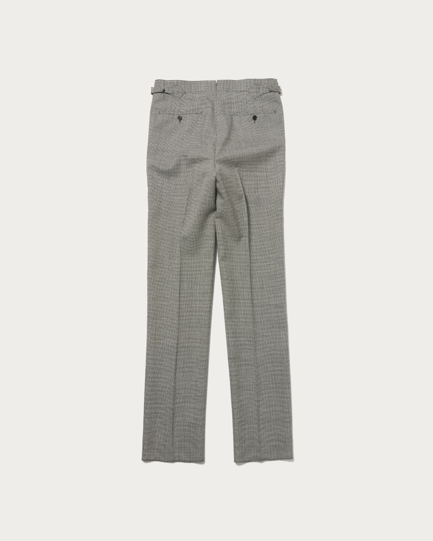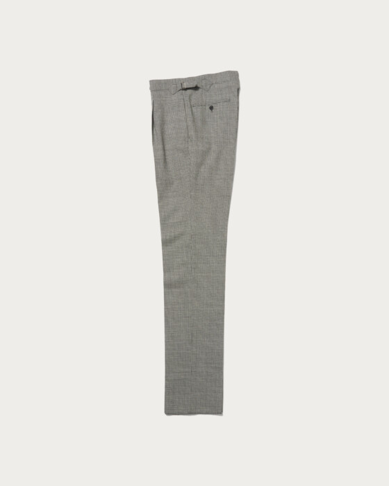 股上をやや深めに設定し、ワンインプリーツを配したトラウザーズ。程よいゆとりを持たせた腰周りから、裾に向かって緩やかにテーパードするストレートニュアンスのシルエットが特徴です。尾錠付きのクラシックなディテールが、さりげない遊びと色気を添え、ビスポークムード漂う表情が今の気分にマッチします。素材には、アルゼンチン最南端で育った羊から厳選して採取した良質なウールを使用。乾燥した極寒かつ強風の環境で育つことで、弾力とコシを備え、長い繊維長と深いクリンプによる独特な手触りが生まれます。