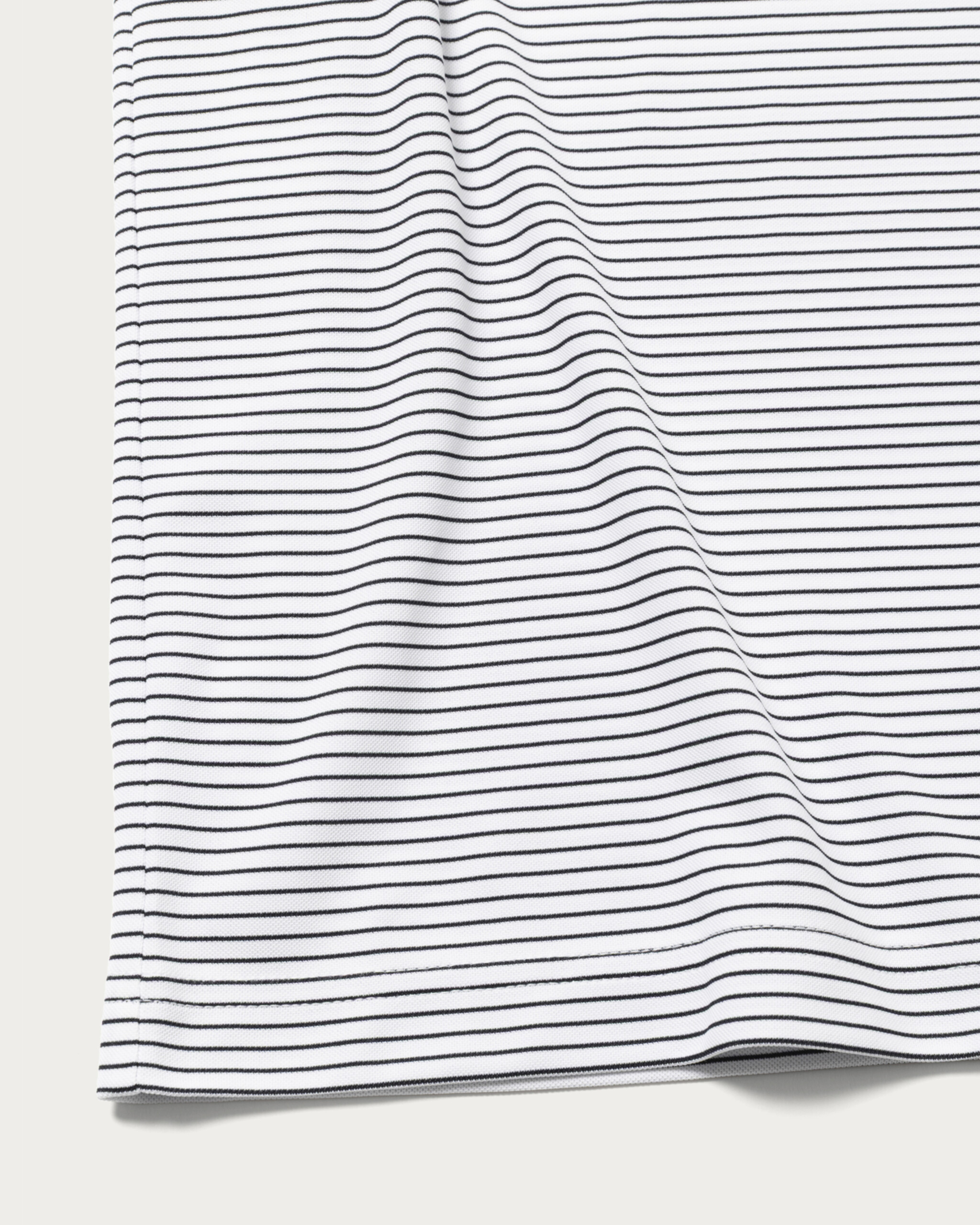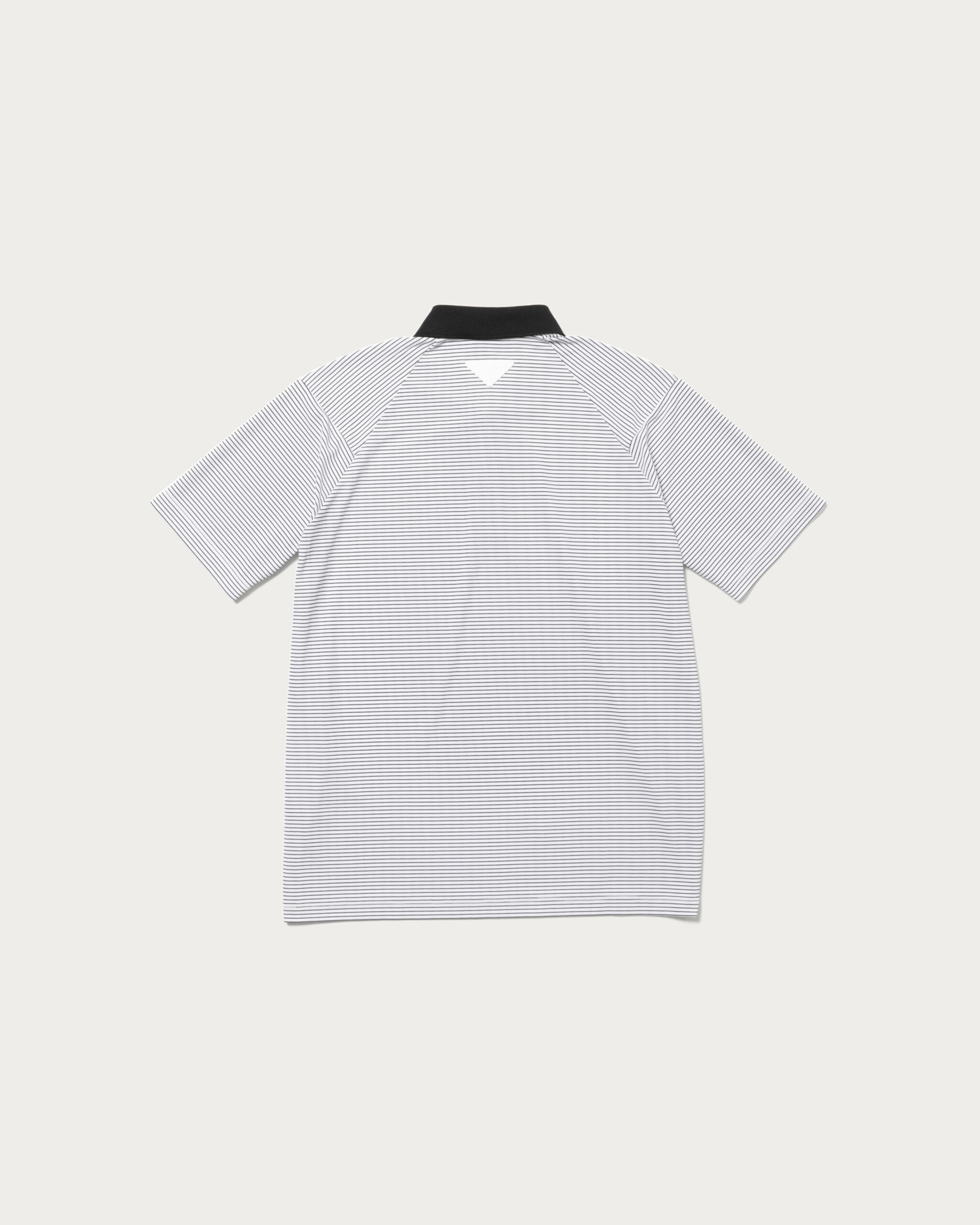 ハイゲージで編み上げたマイクロ鹿の子素材を使用したポロシャツ。台襟仕様ながら衿にリブを用いることでスポーティな印象に。左胸には程よいサイズのブランドロゴプリントを配し、背中にはブランドアイコンワッペンをあしらいました。吸水速乾性、ストレッチ性、UVカット機能を兼ね備えています。