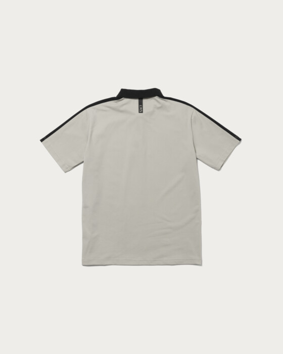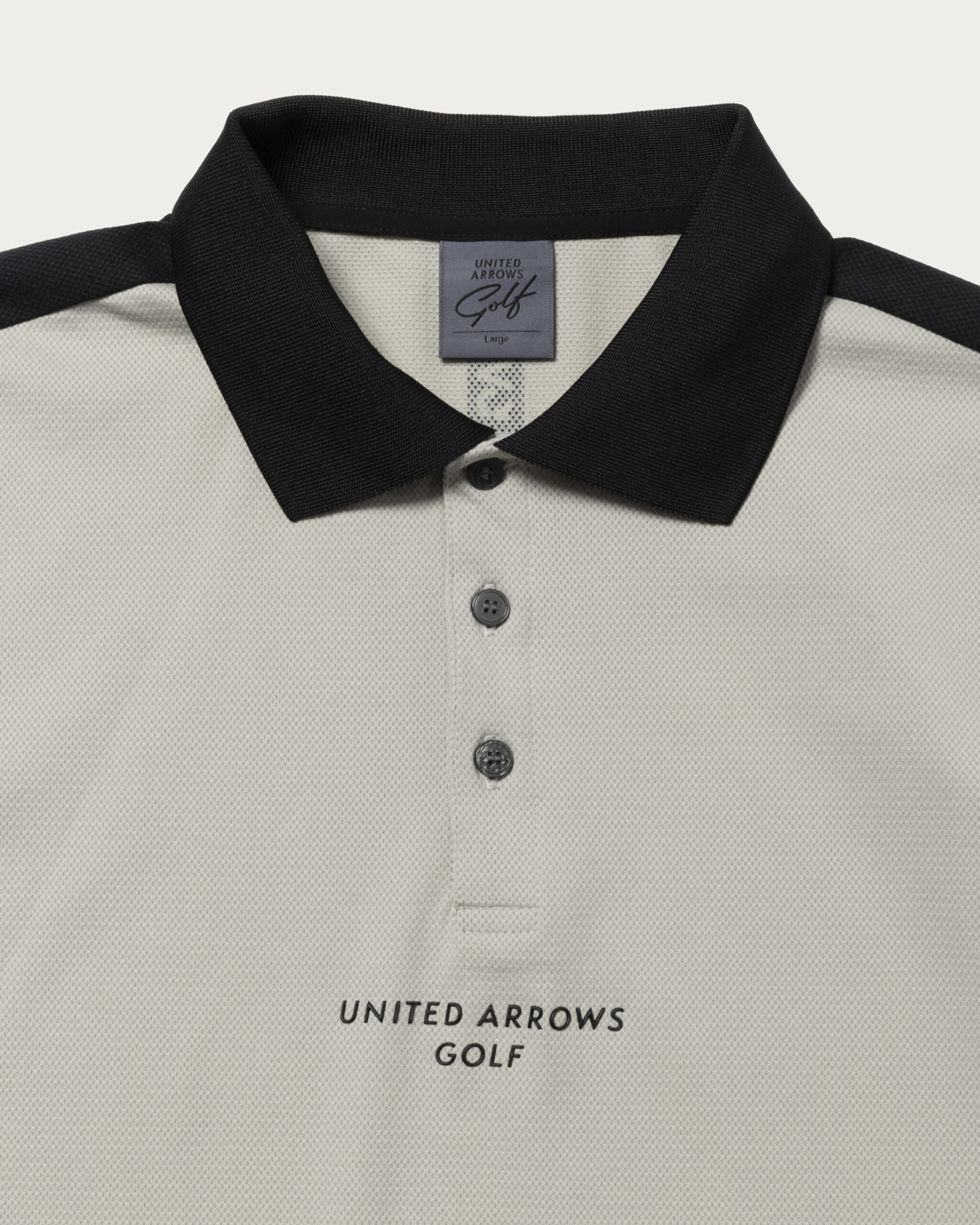 両肩の配色ライン切り替えと衿配色がスポーティな印象を演出するポロシャツ。前立て下にさりげなくブランドロゴを配置。背中にはバー型のブランドアイコンを施しています。接触冷感、ストレッチ性と防シワ性を兼ね備えています。