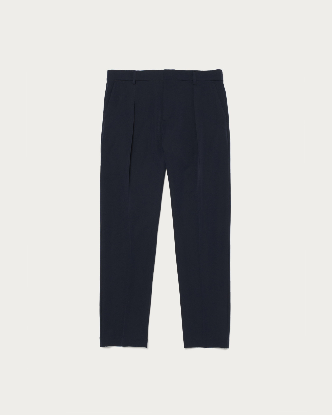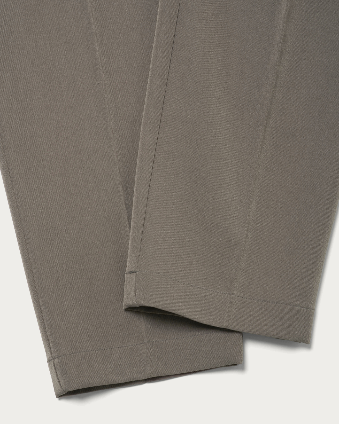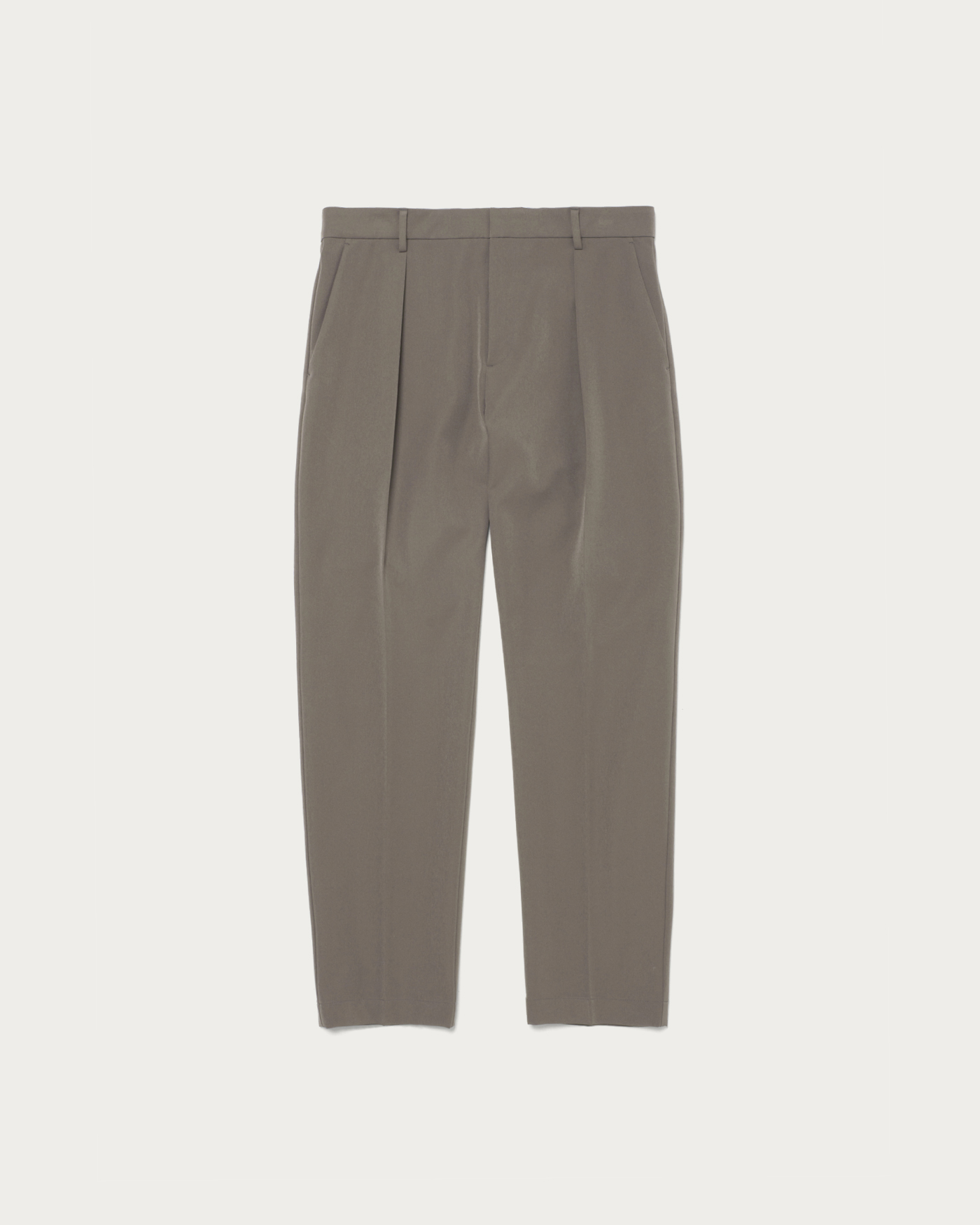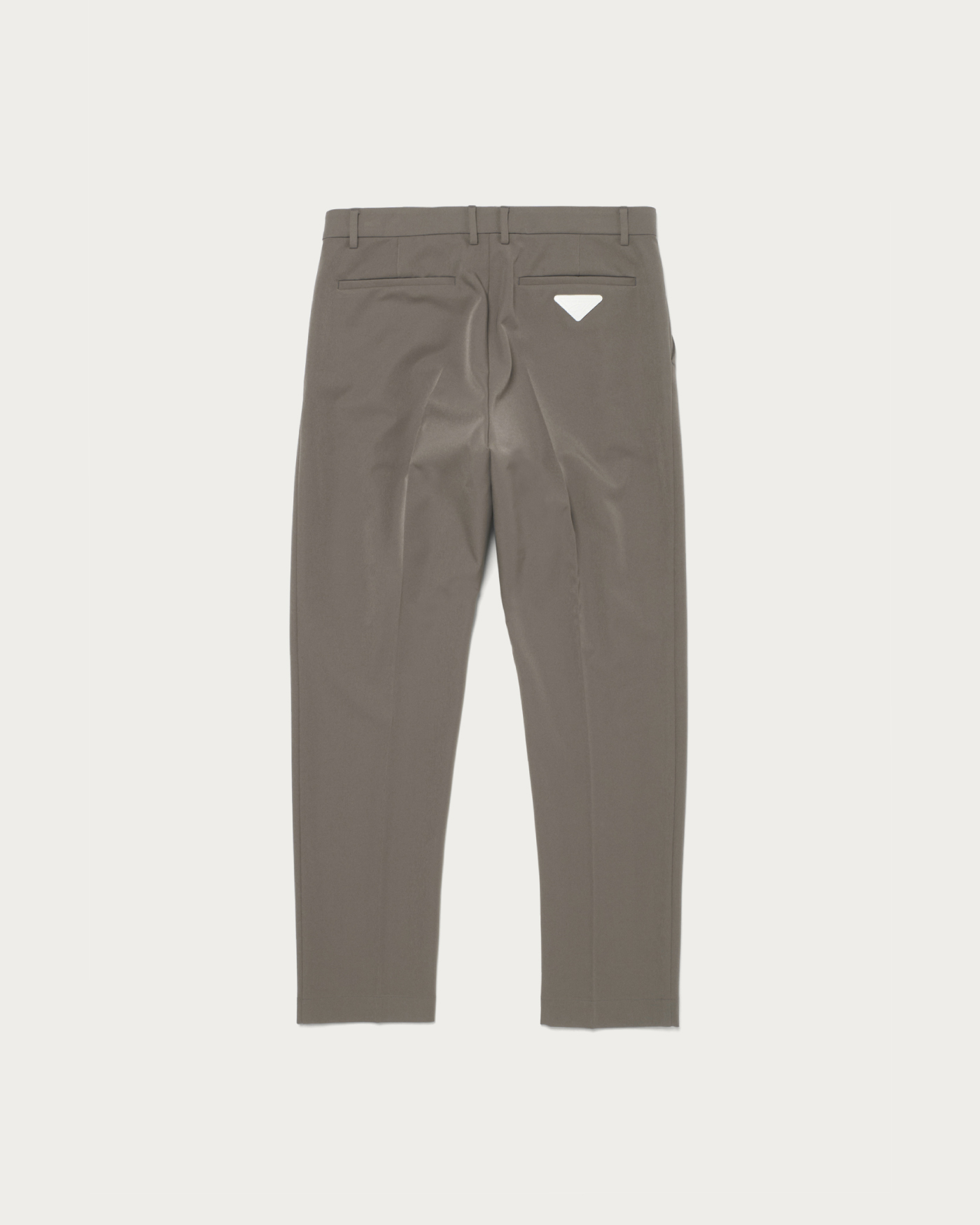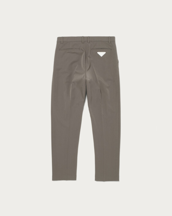ハイテンションツイル素材を使用し程よいゆとりをもたせた1プリーツパンツ。ウエストには程よい伸縮性を備えたジャガードゴムを採用しブランドロゴを上品に表現。滑り止め効果のあるプリントで、シャツのずり上がりを防ぎます。背面右ポケット下にブランドアイコンワッペンを配しています。
