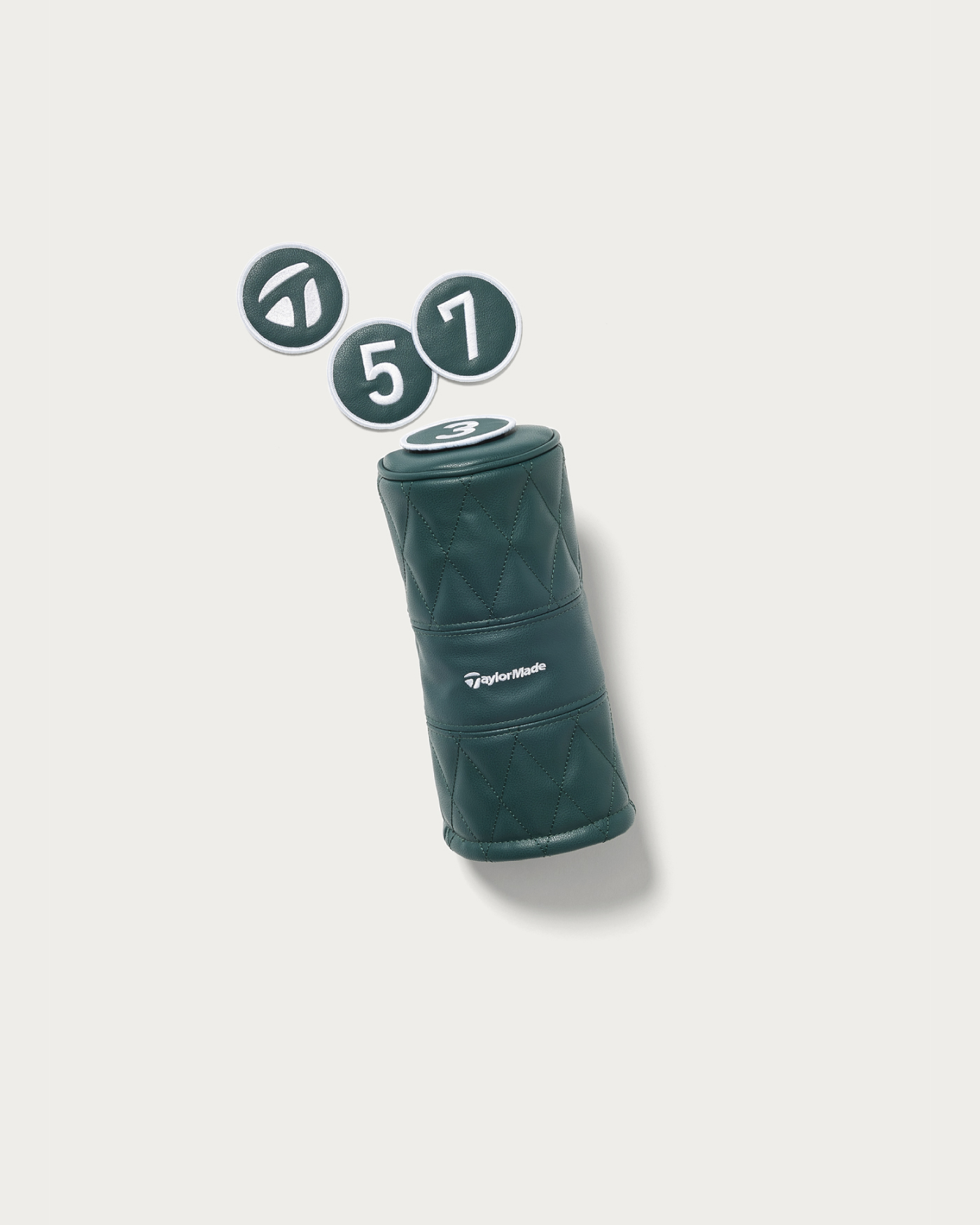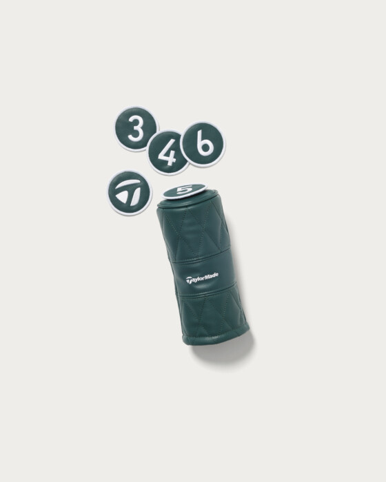 シックなグリーンカラーとオレンジのアクセントカラーが特徴的な、高級感のある合成皮革を採用したヘッドカバー類。キルティング加工に正面のテーラーメイドロゴと背面のコラボレーションロゴが映えるデザインとなっています。テーラーメイドとユナイテッドアローズによるコラボコレクションです。