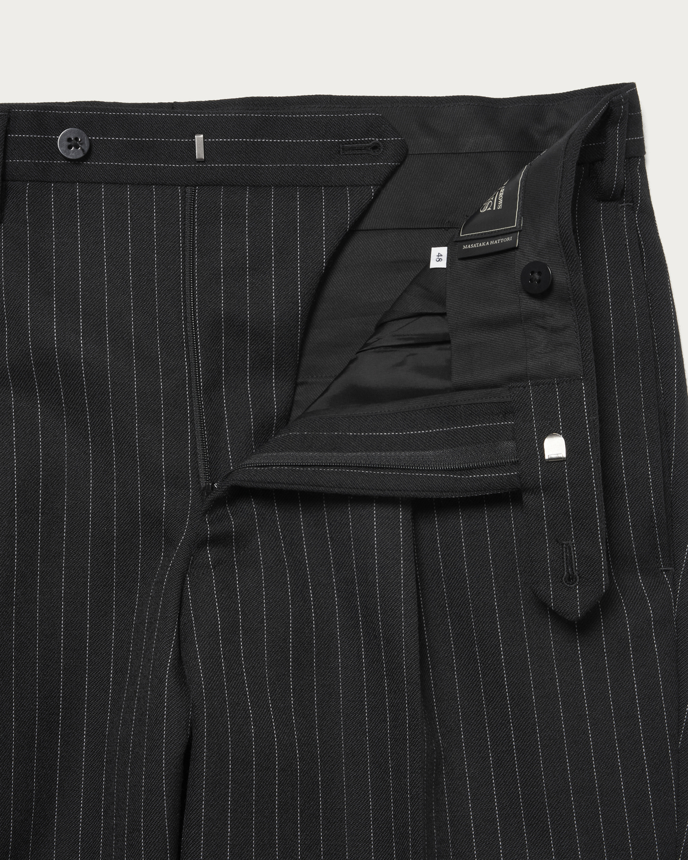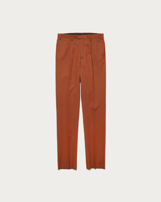 スタイリスト・服部昌孝氏監修のコレクション。程よくゆとりのあるサイジングをベースにした、アウト1プリーツ仕様のトラウザーズ。渡りから膝、裾にかけて緩やかにシェイプしたテーパードラインが特徴。すっきりとした印象を保ちながら、自然な立体感と上品さを備えた一本です。