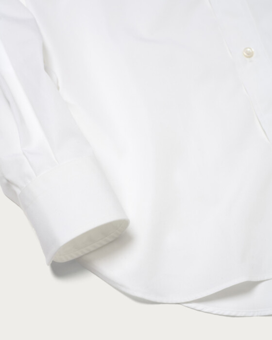 スタイリスト・服部昌孝氏監修のコレクション。ワイドカラーを採用した、さまざまなシーンで着用できる汎用性の高いドレスシャツです。程よくゆとりを持たせたベーシックなサイジングに、バックスタイルはノータック仕様。胸周りからウエストにかけて緩やかに描くラインが、上品でバランスの取れたシルエットを演出します。