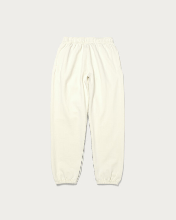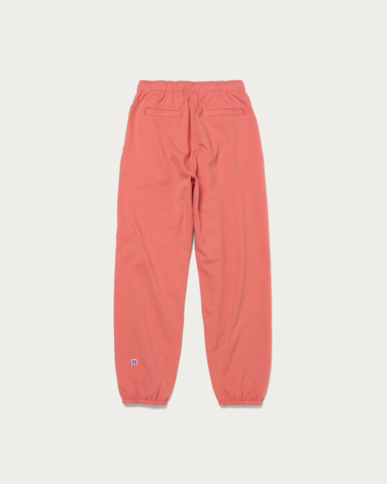 〈RUSSELL ATHLETIC〉に別注した、裾ゴム仕様のスウェットジョガーパンツ。ヒップとワタリに程よいボリュームを持たせ、裾に向かってすっきりとしたテーパードシルエットに仕上げています。股下には配色のハンドステッチを施し、さりげないアクセントとクラフト感をプラス。素材にはコットン100%の裏起毛生地を使用し、着古して程よくやせたようなヴィンテージ感のある風合いが特徴です。