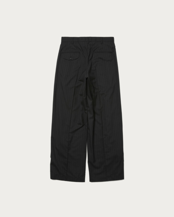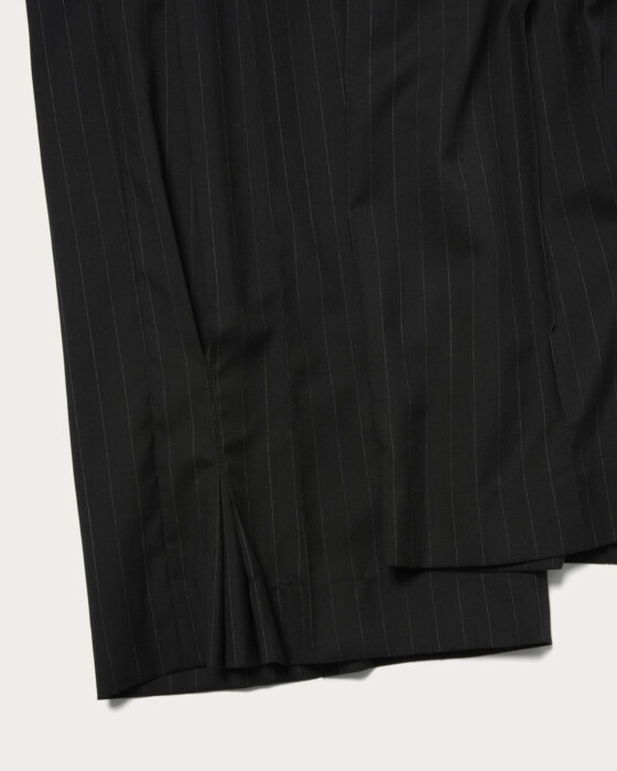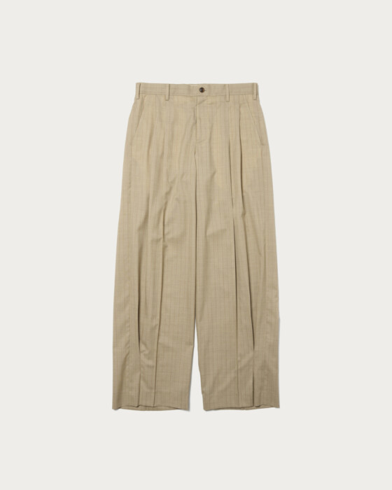 裾にタックを施したデザインが特徴のパンツ。流れるようなドレープが裾で美しく収まり、立体的で柔らかな膨らみのあるシルエットを表現しています。動きに合わせて表情を変え、スタイリングに奥行きをもたらす一本です。