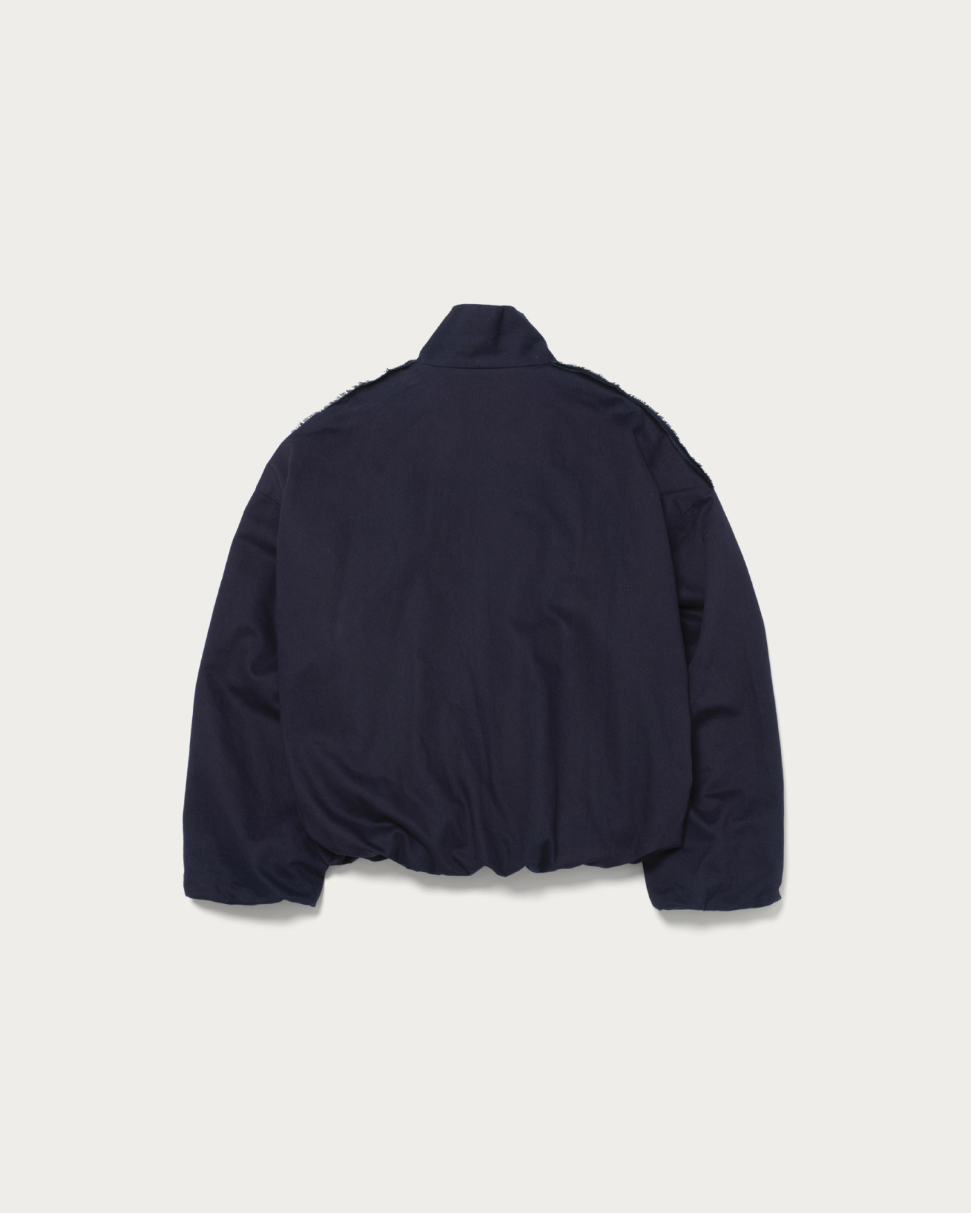 普遍的なアイテムをバルーンシルエットで表現したブルゾン。ふくらみのあるフォルムによって、エレガントなドレープ感が際立つ一着です。濃紺のインディゴデニムを使用しながらも、いなたさを感じさせない上品な佇まいに仕上っています。