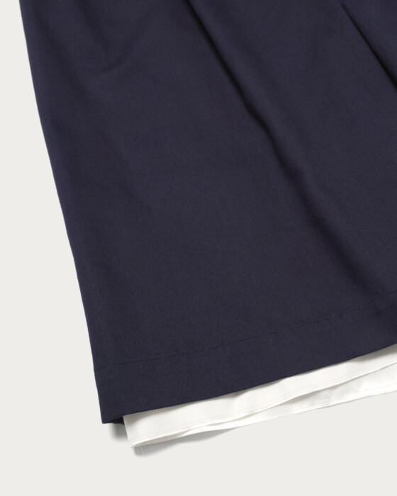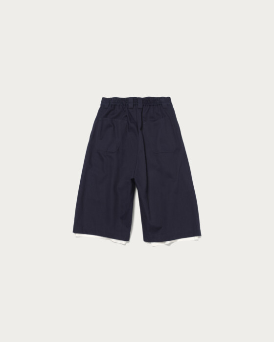 ワークショーツを〈SULVAM〉流に再解釈したハーフショーツ。ワイドなシルエットをベースに、洗練されたデニム素材を用いることで、カジュアルでありながらもエレガントな表情に仕上っています。