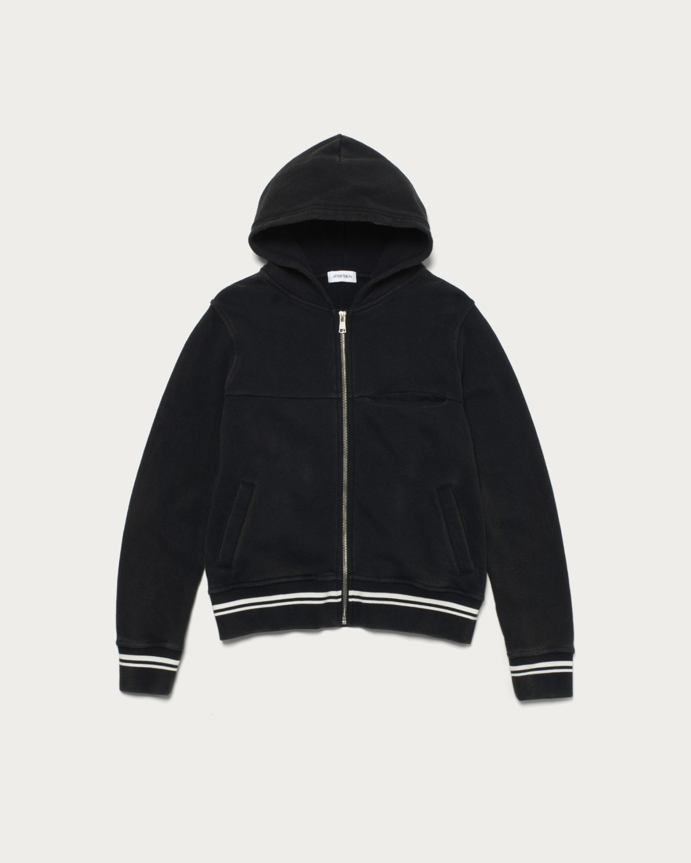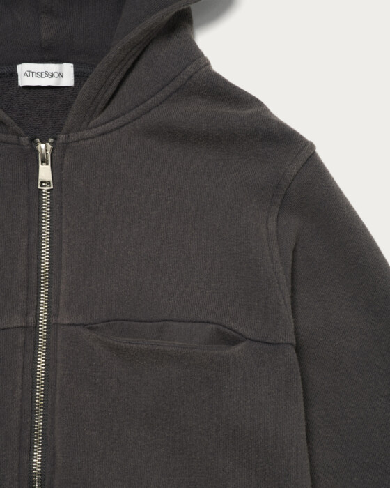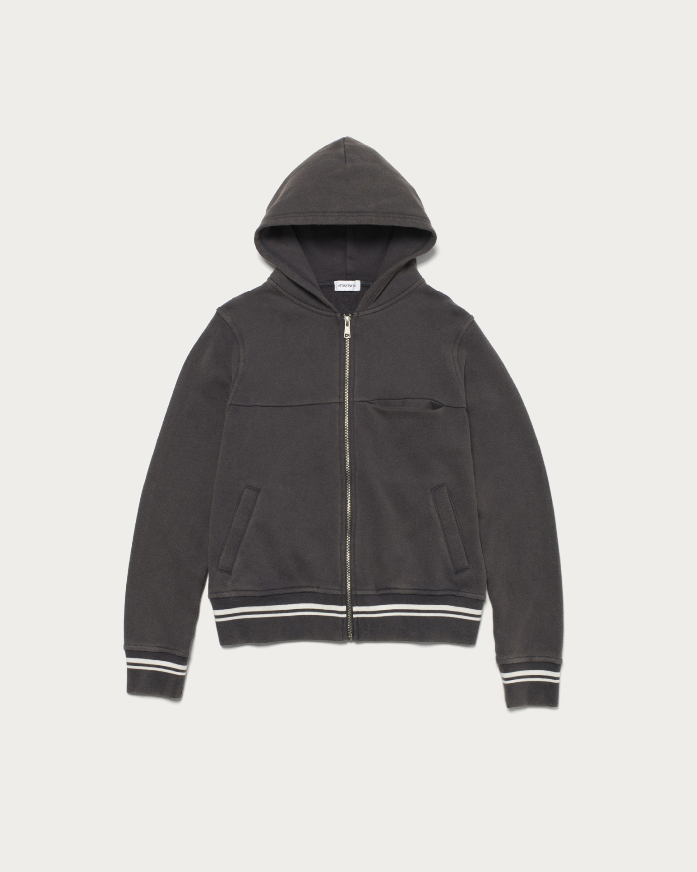 裏毛素材を使用したジップアップパーカー。ポケットデザインがさりげないアクセントになり、裾と袖口は編み立てリブで程よくフィット。コンパクトなシルエットで今らしいバランスを楽しめます。洗い加工と色落ちで古着ライクな表情をプラスし、柔らかな風合いと程よい厚みでデイリーに馴染む一枚。カジュアルにもきれいめにも合わせやすく、幅広いスタイリングに活躍します。