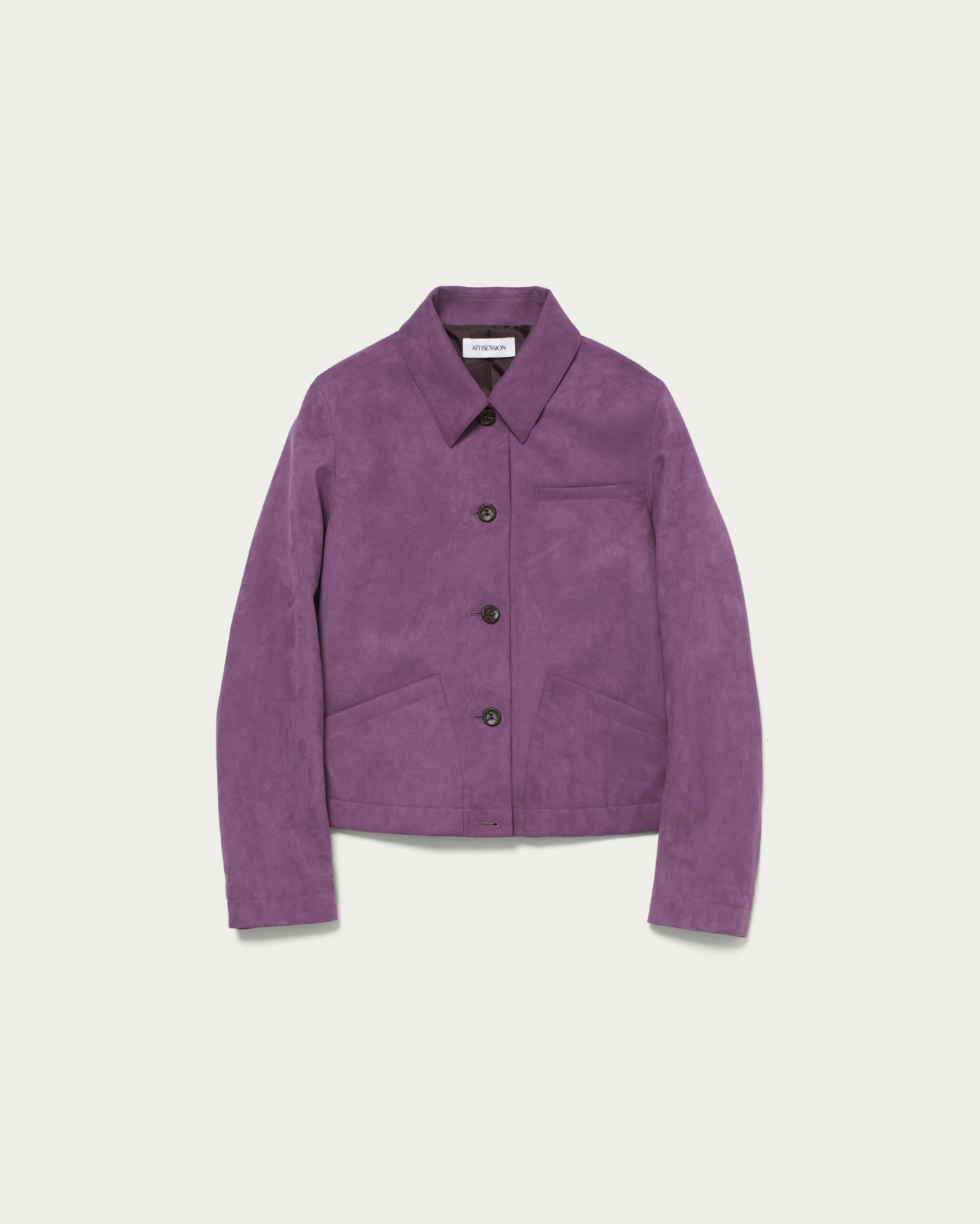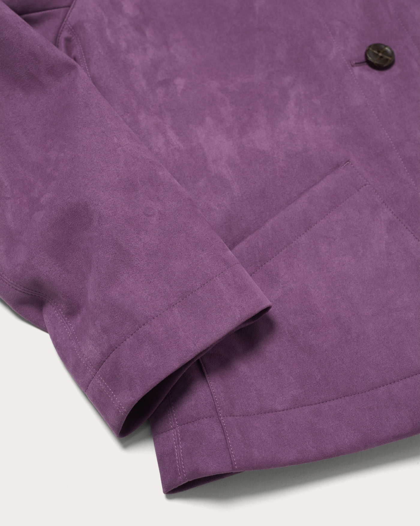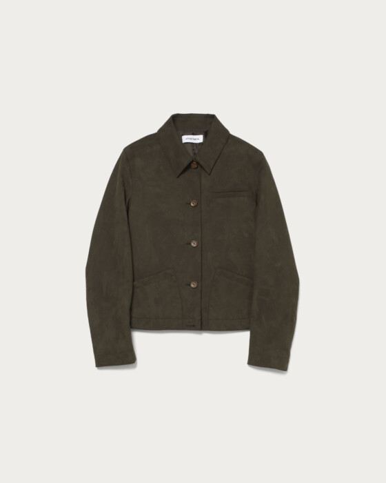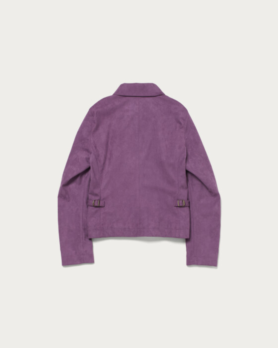 ヴィンテージ感のあるスエードライク素材を使用し、ポケットディテールが程よいアクセントの春アウター。オーバーサイズすぎないコンパクトなシルエットで着こなしやすく、本革のようなソフトなタッチと滑らかな質感が魅力。軽量で快適な着心地で、カジュアルにもきれいめにも合わせやすい一枚です。