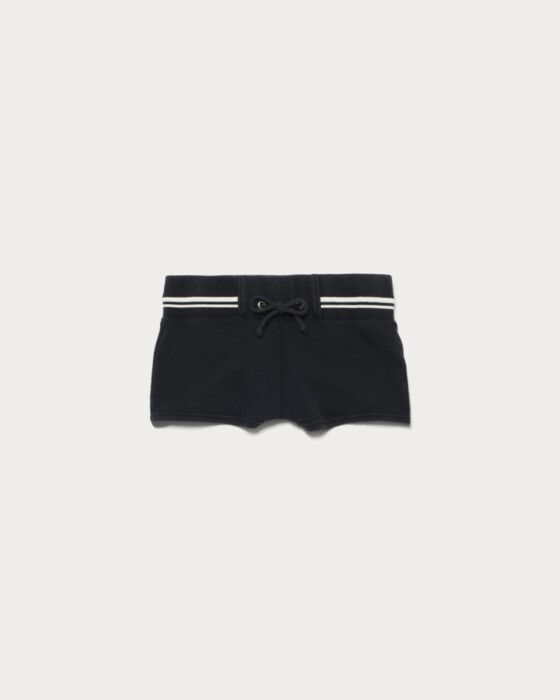 裏毛素材を使用した軽やかなジップアップパーカーと共通素材のマイクロショートパンツ。コンパクトなシルエットでトレンド感を演出し、洗い加工と色落ちで古着ライクな表情に仕上げています。程よい厚みと柔らかな風合いで日常に馴染み、タイツ合わせやシャツ・ブラウスとのレイヤードもおすすめです。