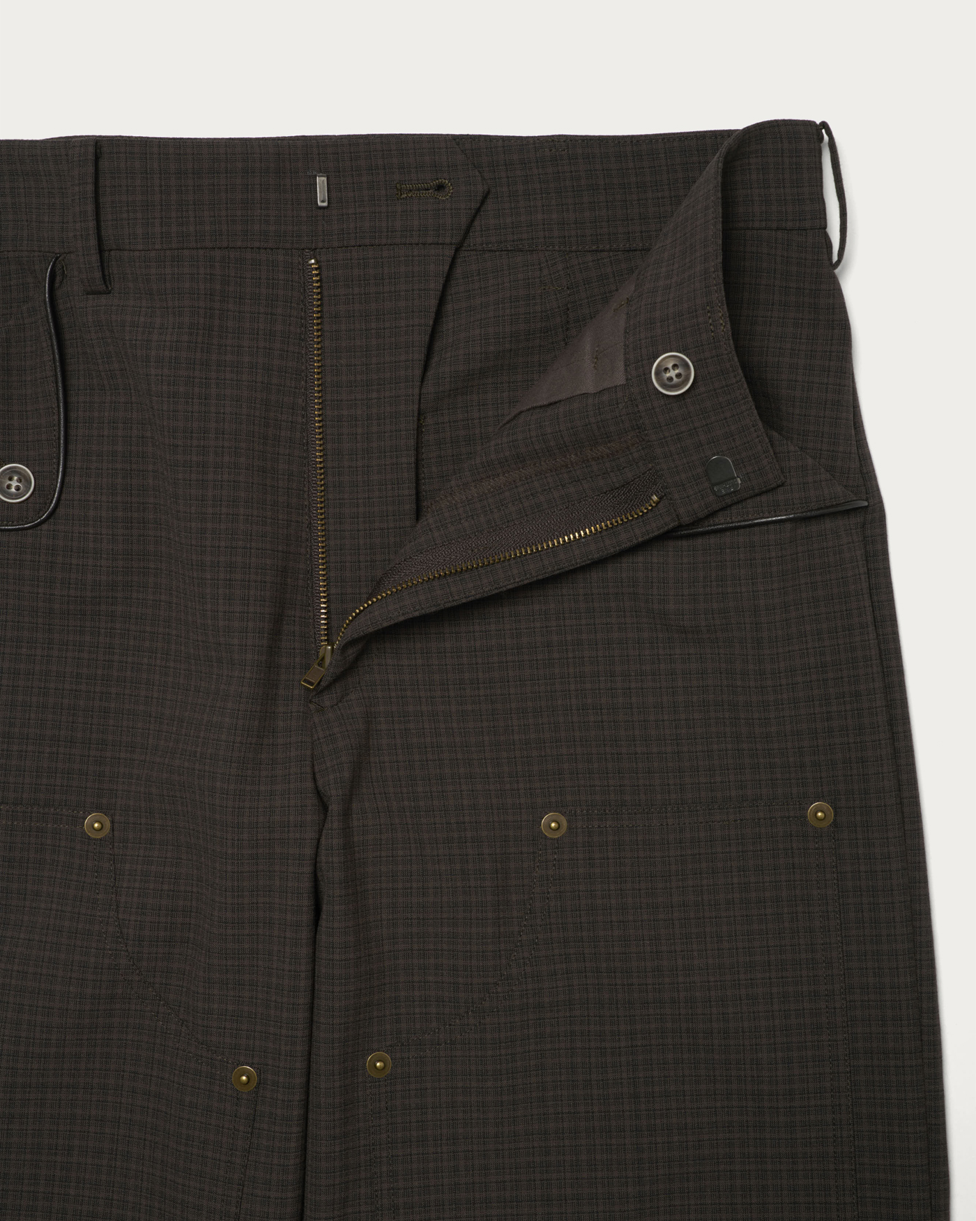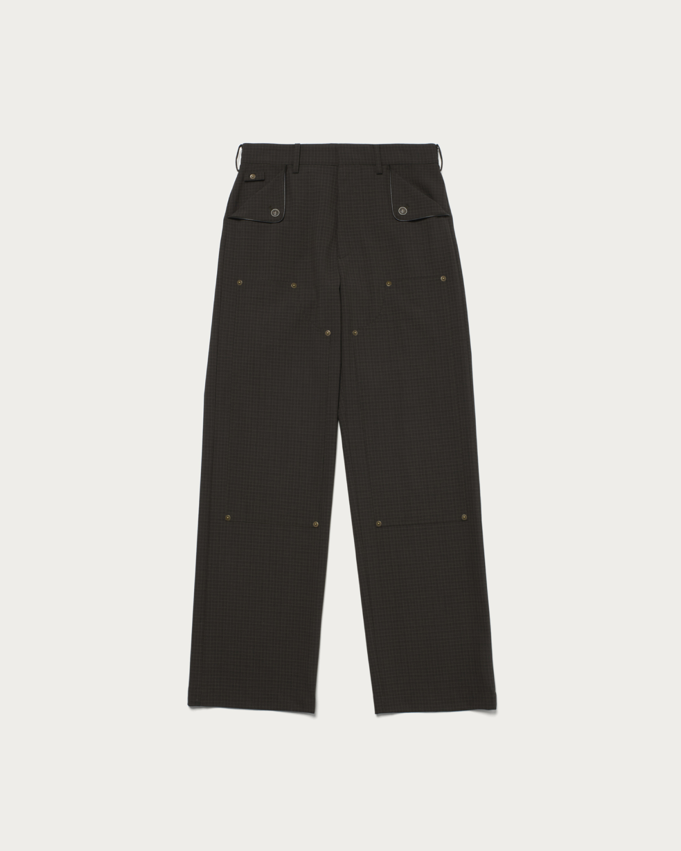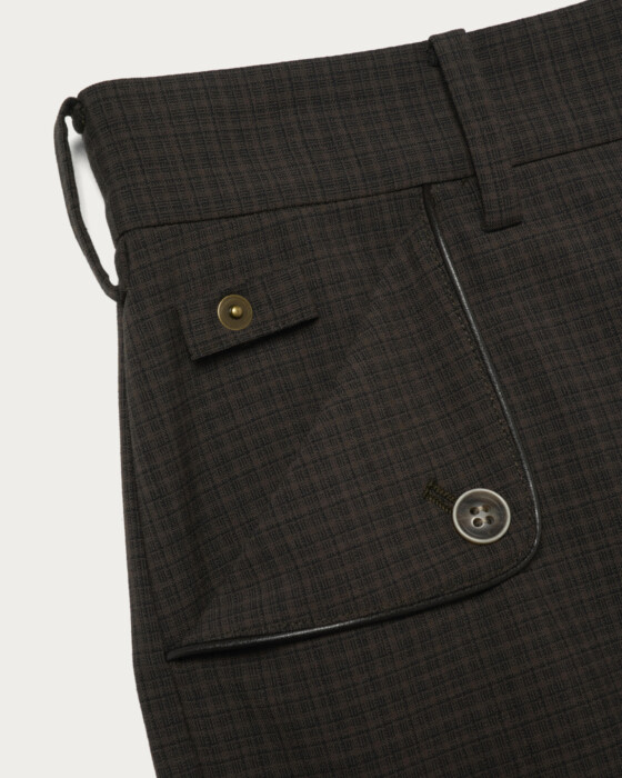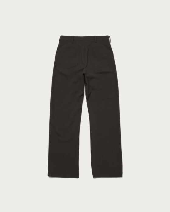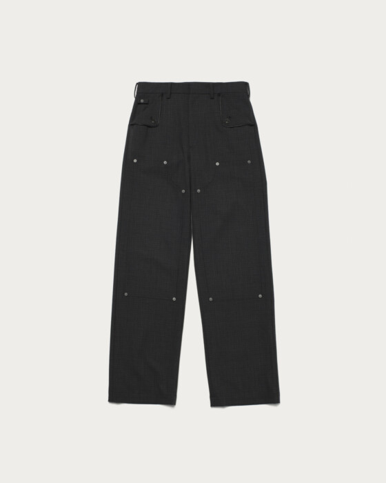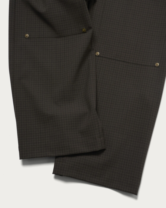 ワークパンツのディテールを取り入れたデザインに、メンズライクなチェックジャガードを使用した一本。リベット使いがさりげないアクセントとなり、カジュアルながら上品さを感じられます。メリノウールとリサイクルポリエステルを組み合わせ、繊細なチェック柄を生かした風合いが魅力。シャツ合わせやカジュアルスタイルにも馴染む、日常に取り入れやすいパンツです。