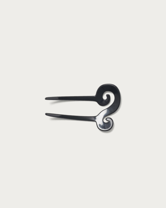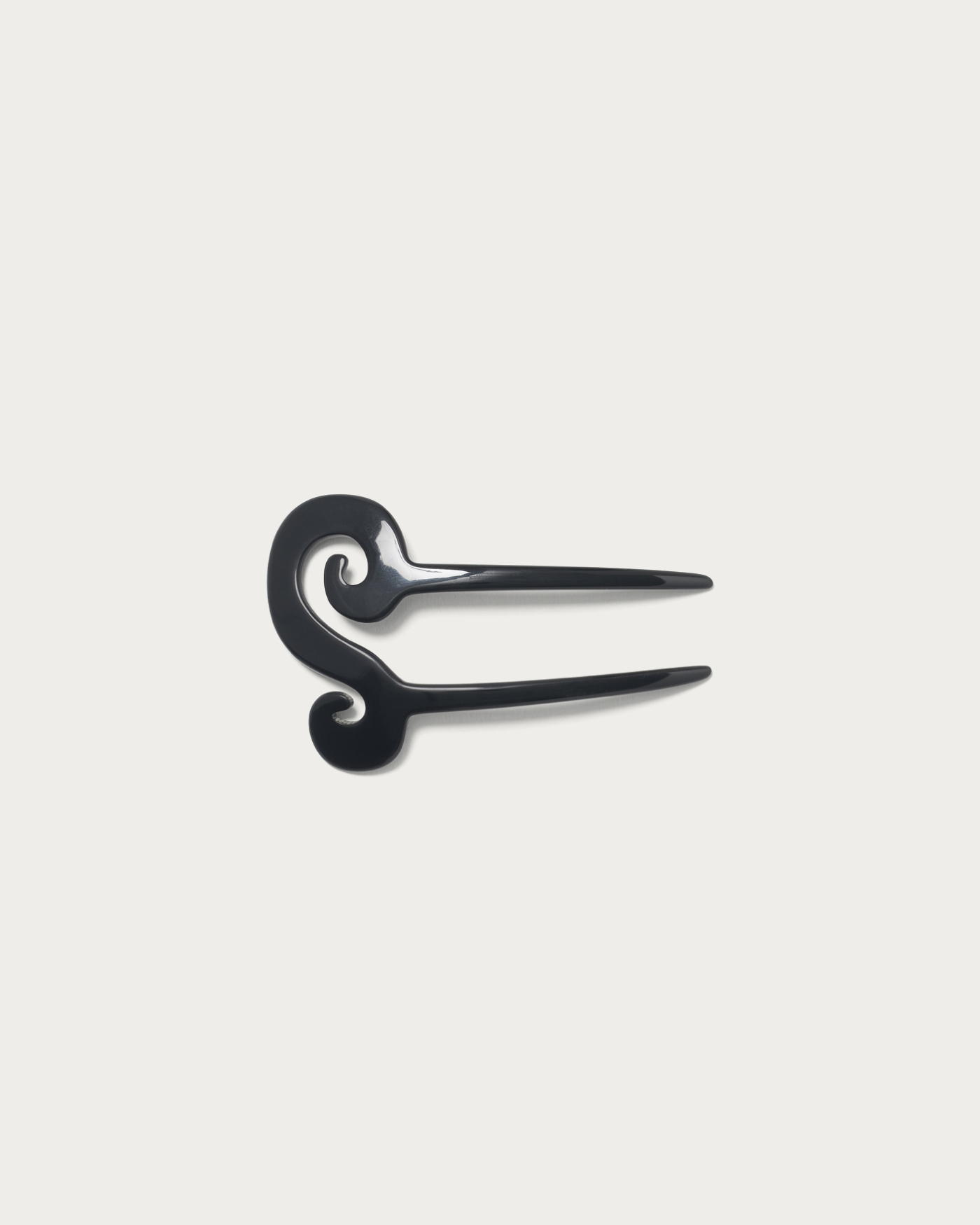 〈MERRMA〉のヘアピンは、美しい曲線が印象的なデザインでシンプルながら独自の存在感を放つアイテムです。光沢のある素材が上品さを引き立て、髪に軽く差し込むだけでスタイリングにアクセントを加えてくれます。2本足の形状がしっかり髪をホールドし、実用性とデザイン性を兼ね備えているため普段使いから特別なシーンまで幅広く活躍します。