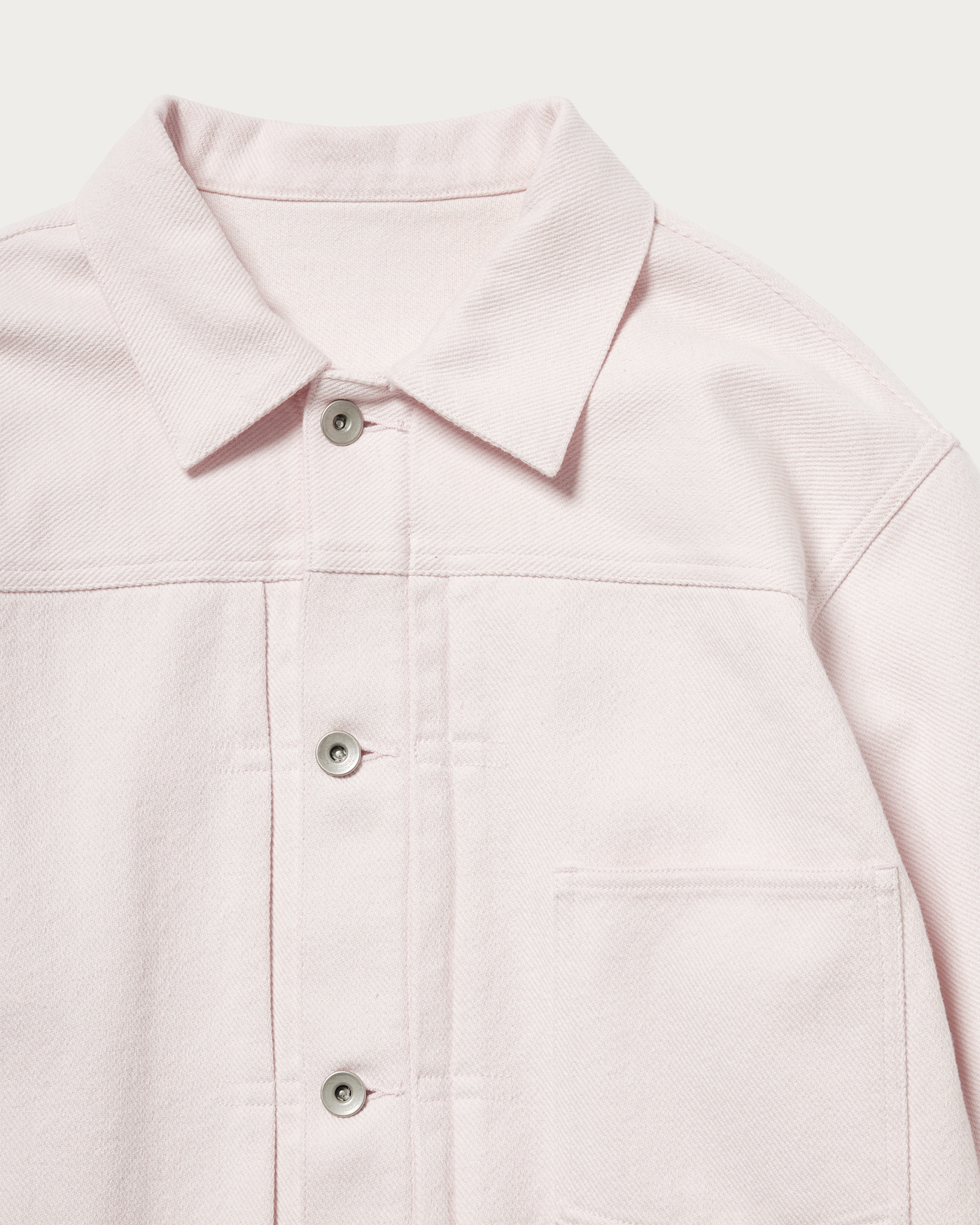 春に向けて気分を上げくれる、カジュアルなコットンジャケット。ボクシーなデニムジャケットのシルエットをベースに、フラップなしの片ポケットを採用し、シンプルなディテールで上品に仕上げました。奥行きのあるナチュラルと、ピンクカラーの2色展開でご用意しました。同素材のパンツ合わせたセットアップもおすすめです。