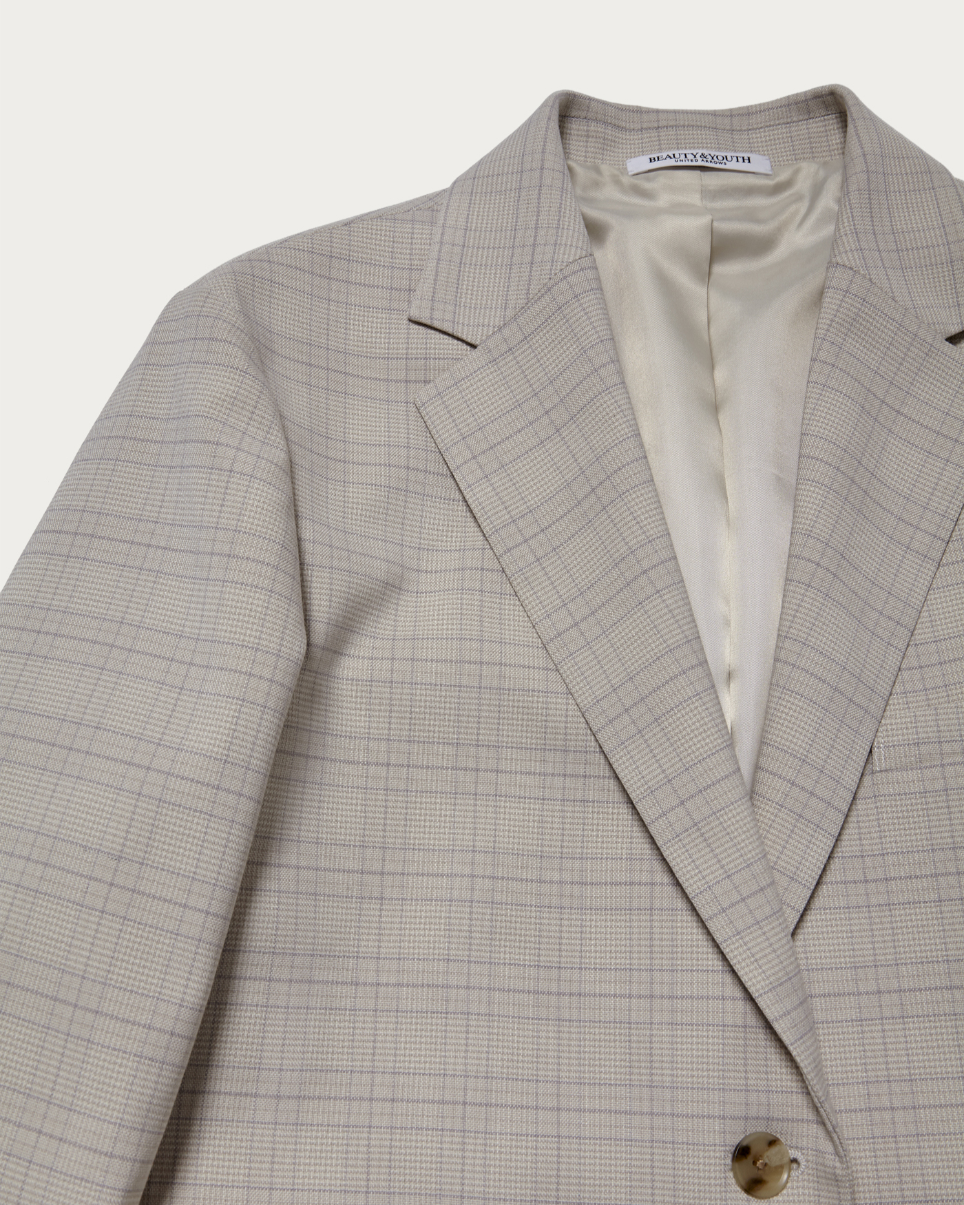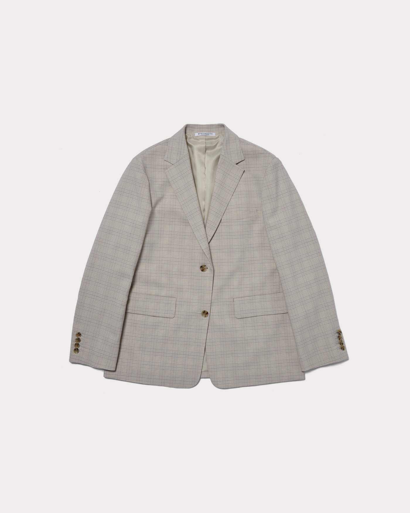 ゆったりとしたサイズ感ながらもオーセンティックな印象が漂うテーラードジャケット。柔らかなカラーをMIXしたチェック柄をオリジナルで作りました。程よく膨らみのある素材で、同素材のワイドヘムパンツにフリルブラウスを合わせた、春らしいセットアップのスタイリングがおすすめです。