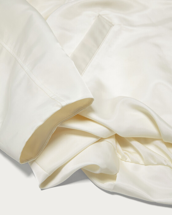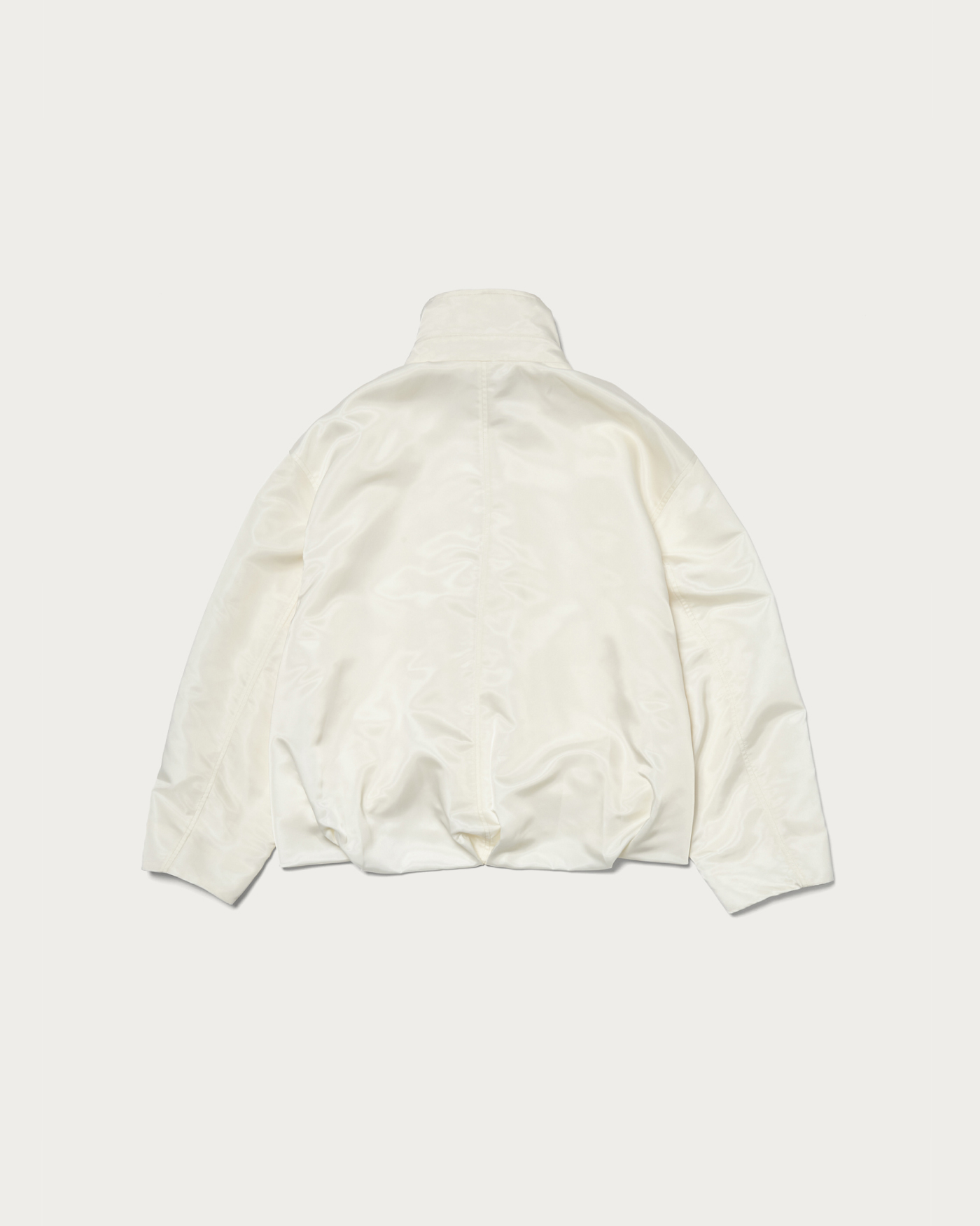 裾にタックが入ったボリュームあるシルエットを、スタイリングがしやすいショート丈ですっきりと仕上げました。ツヤのあるスポーティな素材は、程よい肉感としなやかな質感がポイントです。