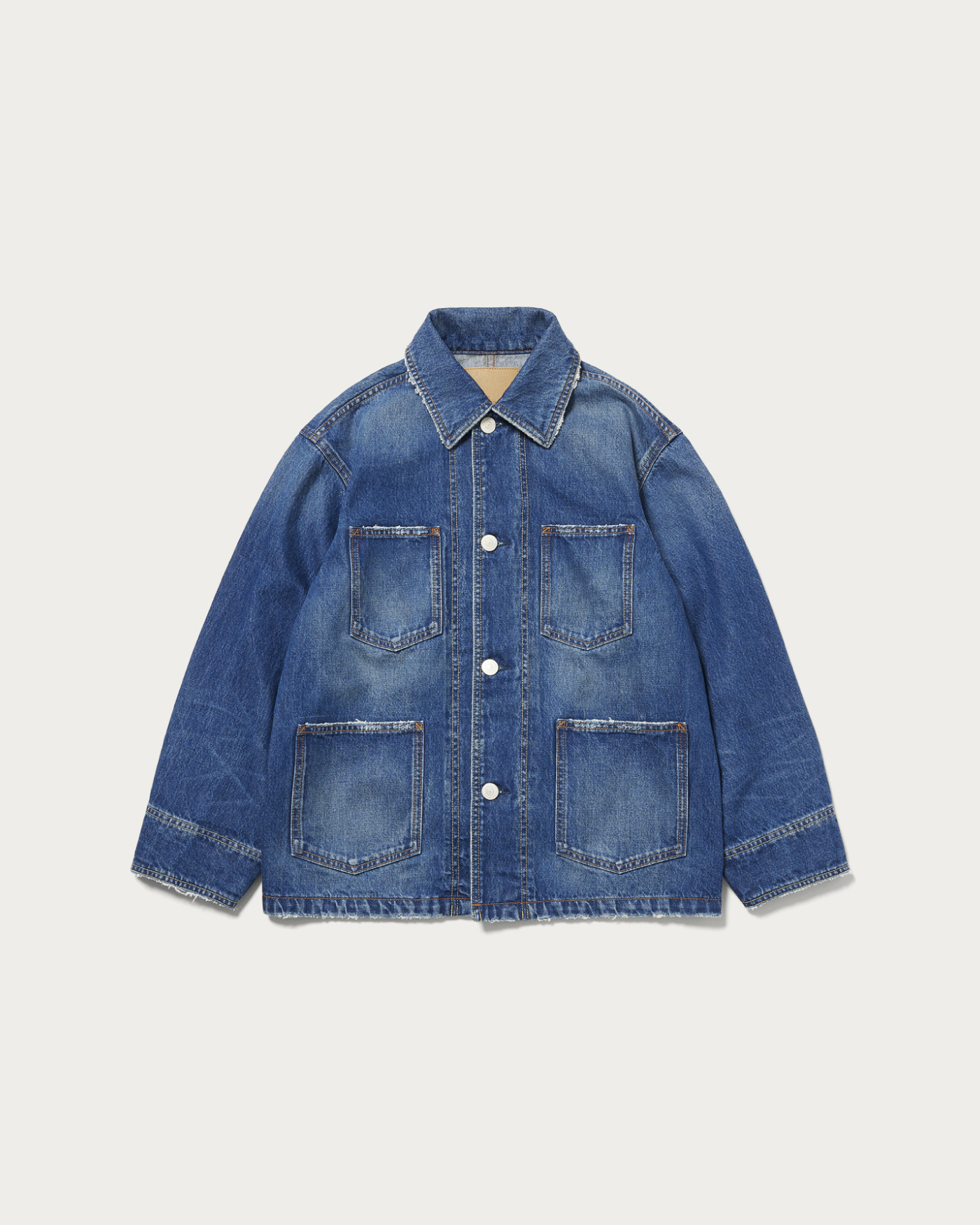〈NEEDBY heritage(ニードバイヘリテージ)〉のヴィンテージラインで展開をしている"NIKKO"をレギュラーラインに落とし込んだ別注アイテム。ヴィンテージのカバーオールを踏襲し、オーバーサイズにアレンジしたユニセックスフィットです。女性が程よく着用できるよう、サイズバランスを調整しました。前から後ろになだらかにカーブのかかったシルエットが特徴です。今回の別注はカラートッピングを採用し、ミッドブルーにベージュトッピング、ブラックにグリーントッピングの2色展開となります。